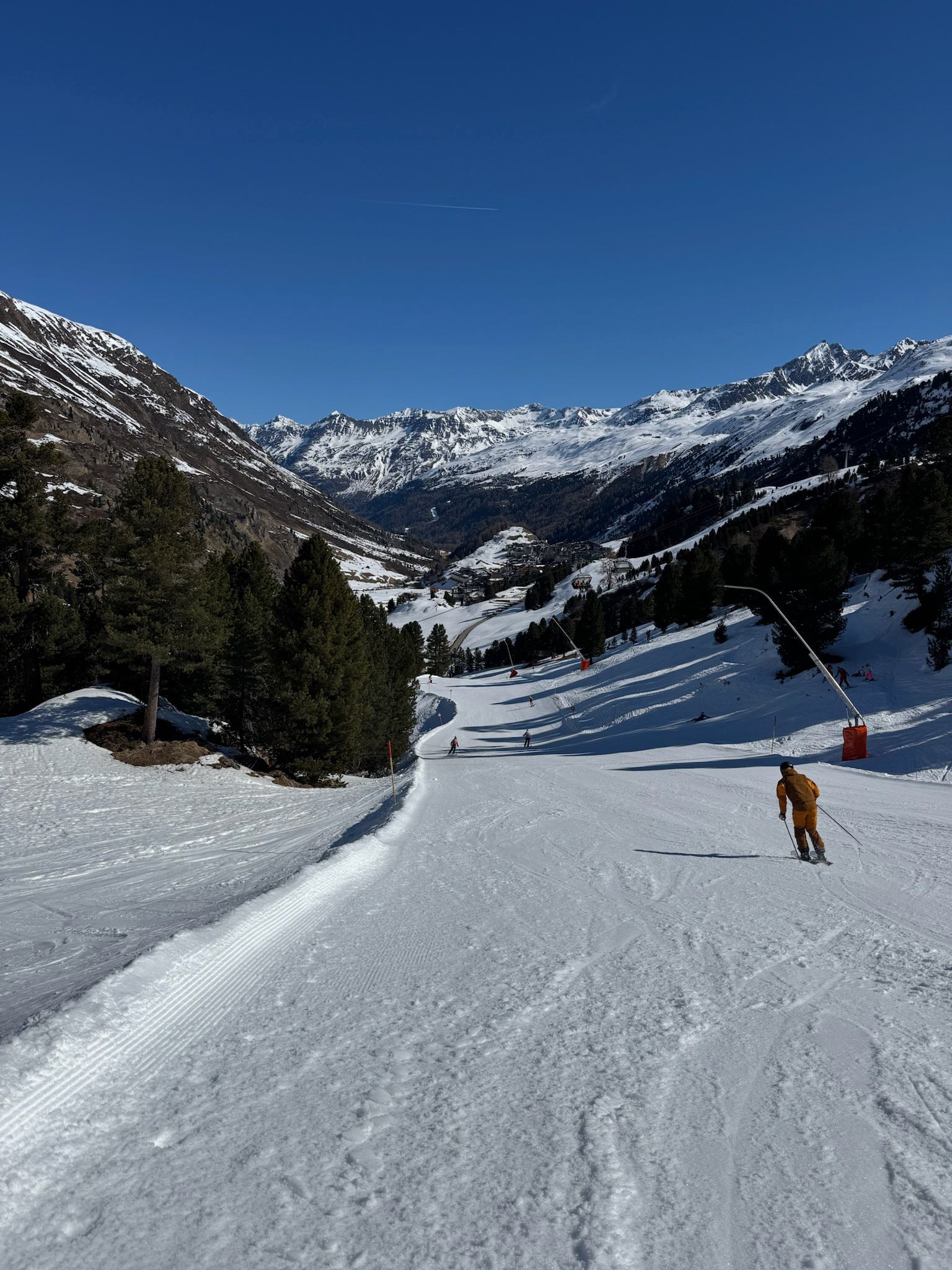 In Obergurgl ist es gefühlt viel leerer. Die blaue 6 ist gut zu fahren. Nur wenig eisige Stellen. Angebot aber doch überschaubar.