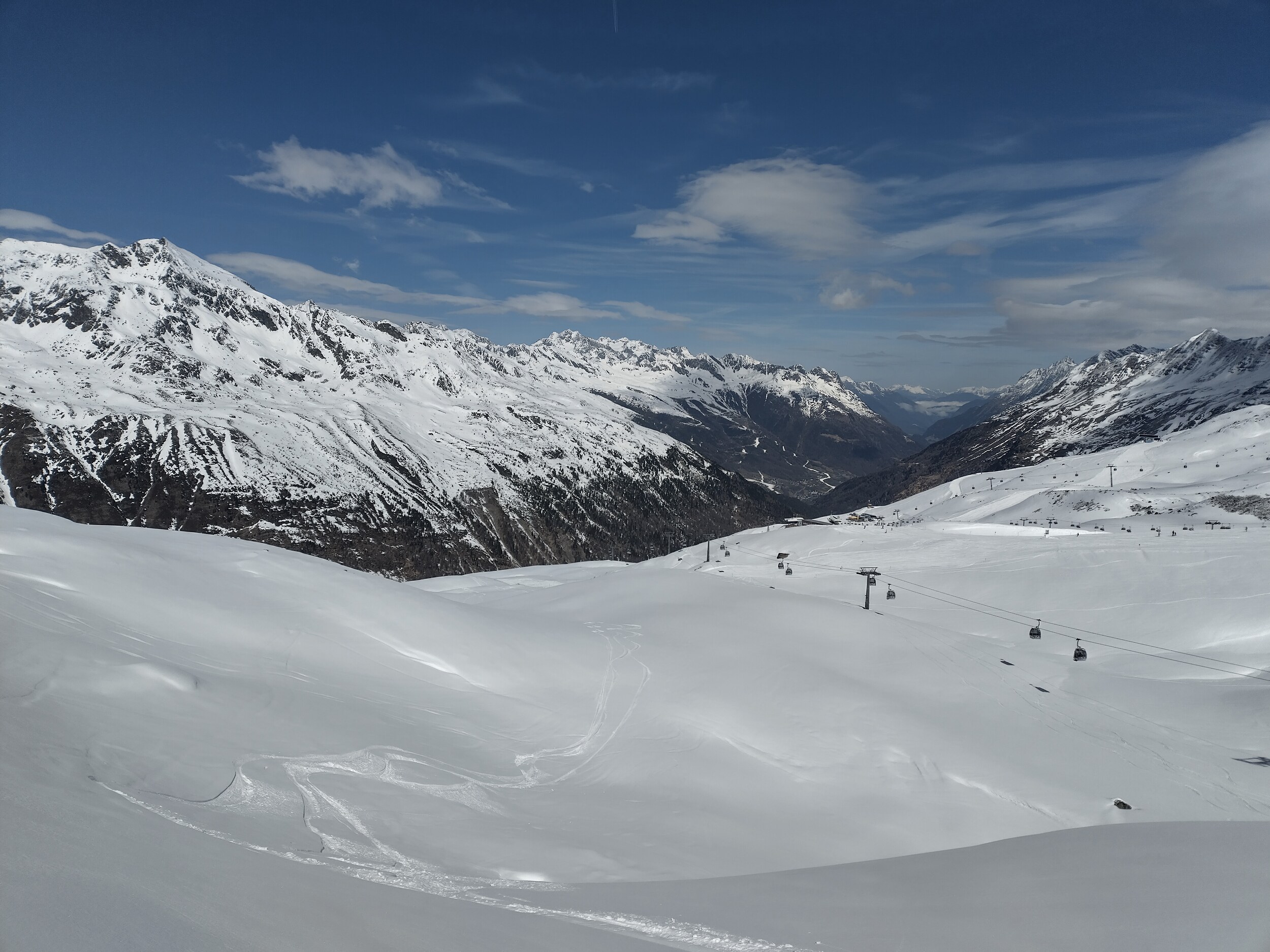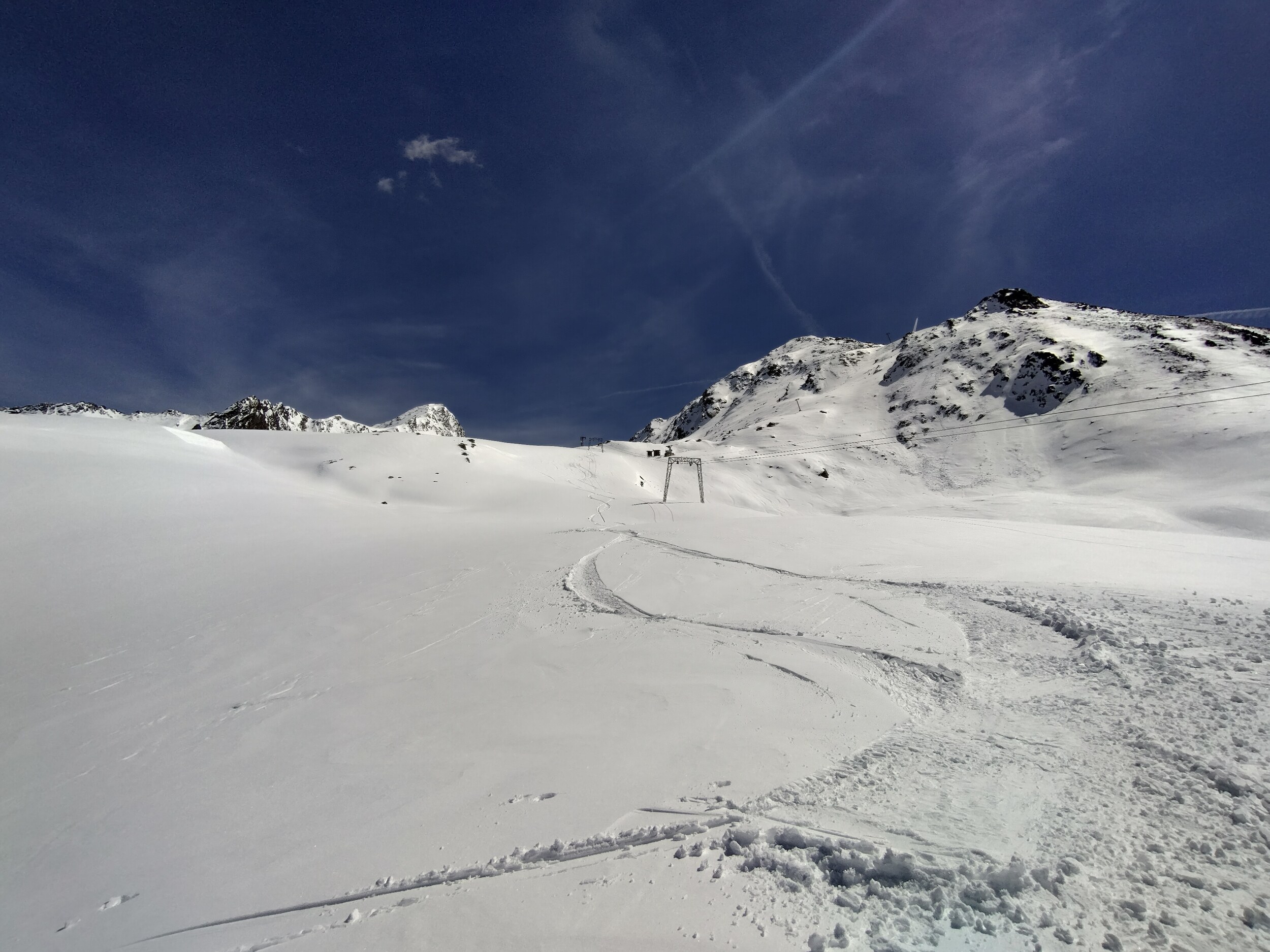 Danach ging es in den Sektor Hohe Mut, hier natürlich erstmal Fotos der schönen Bergwelt. Die Abfahrt war schön griffig aber ohne Haufen. Bereich Steinmann, hier etwas weicher aber dennoch spaßig: Den restlichen Nachmittag beschäftige ich mich mit den schwarzen Pisten an Plattach und Rosskarbahn, die wurden einfach nicht schlechter: Zurück in Hochgurgl: Fazit: Von den Bedingungen her ziemlich anders als gestern, morgens deutlich härter, dafür hielten die Pisten Nachmittags länger stand, gerade die schwarzen Pisten blieben perfekt. Wenn man etwas meckern will dann eventuell etwas voll am Morgen und teils die Präparierung in Hochgurgl, dennoch ein Skitag nahe am Optimum mit 9,5 Punkten.