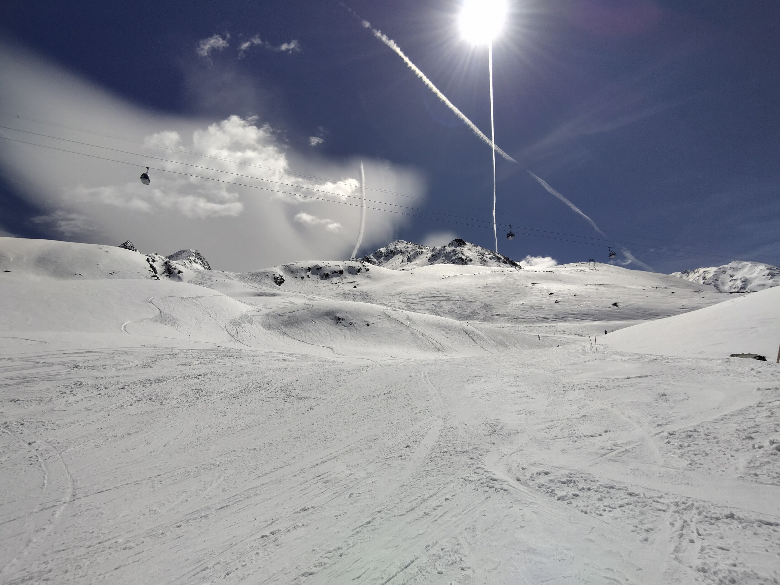 Am letzten Ötztal Tag heute Obergurgl-Hochgurgl. Echt lästig mit dem Betriebsbeginn um Punkt 9 Uhr, die Leute standen über die gesamte Treppe an der Hochgurglbahn und chaotisch um die Kasse. Dann wurden noch etliche Gondeln leer gelassen wegen der Mittelstation. Nervig. Es wurde halb 10 bis das Snowboarden startet. Etwas unruhig präpariert, kenne ich hier besser.