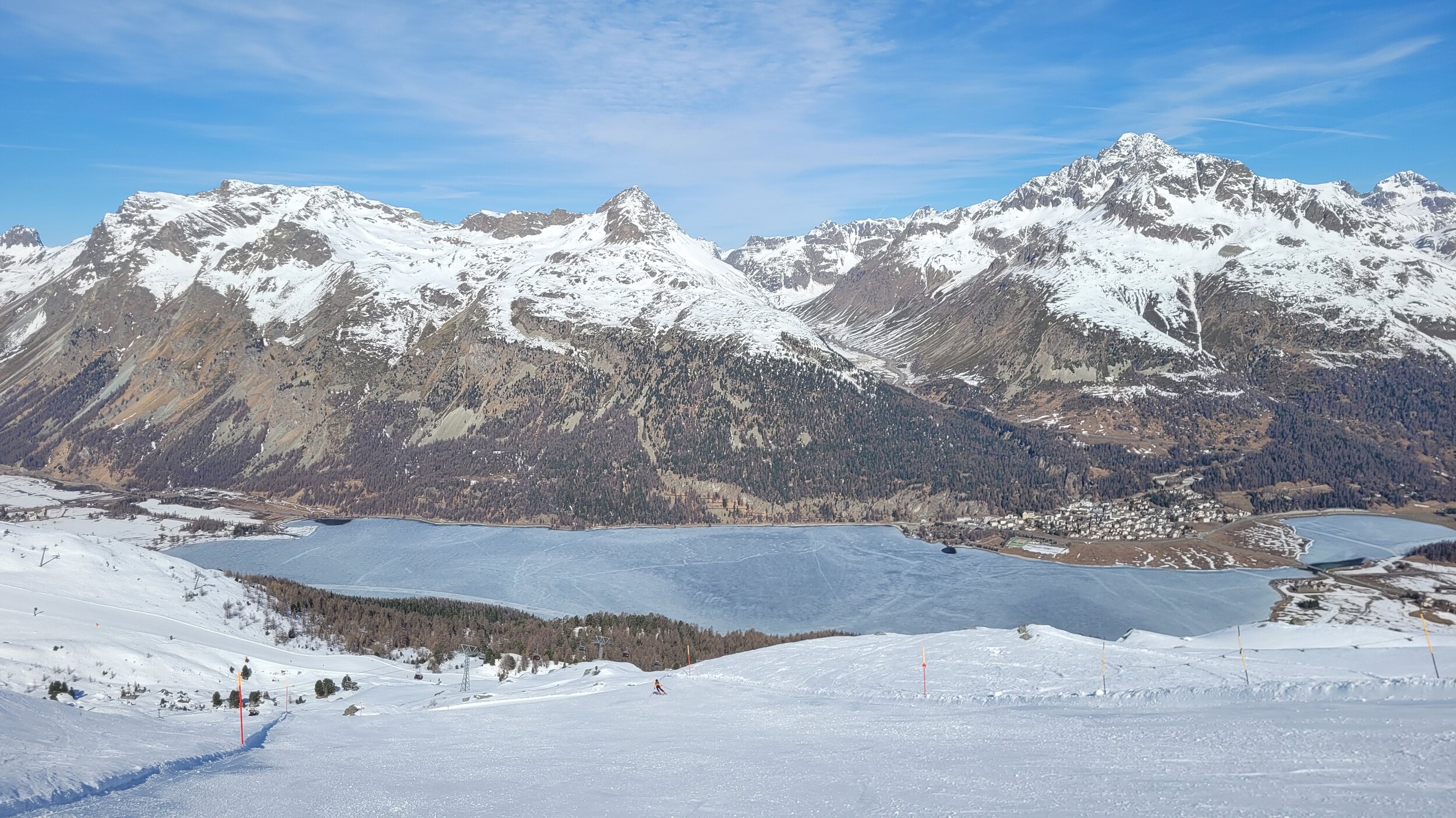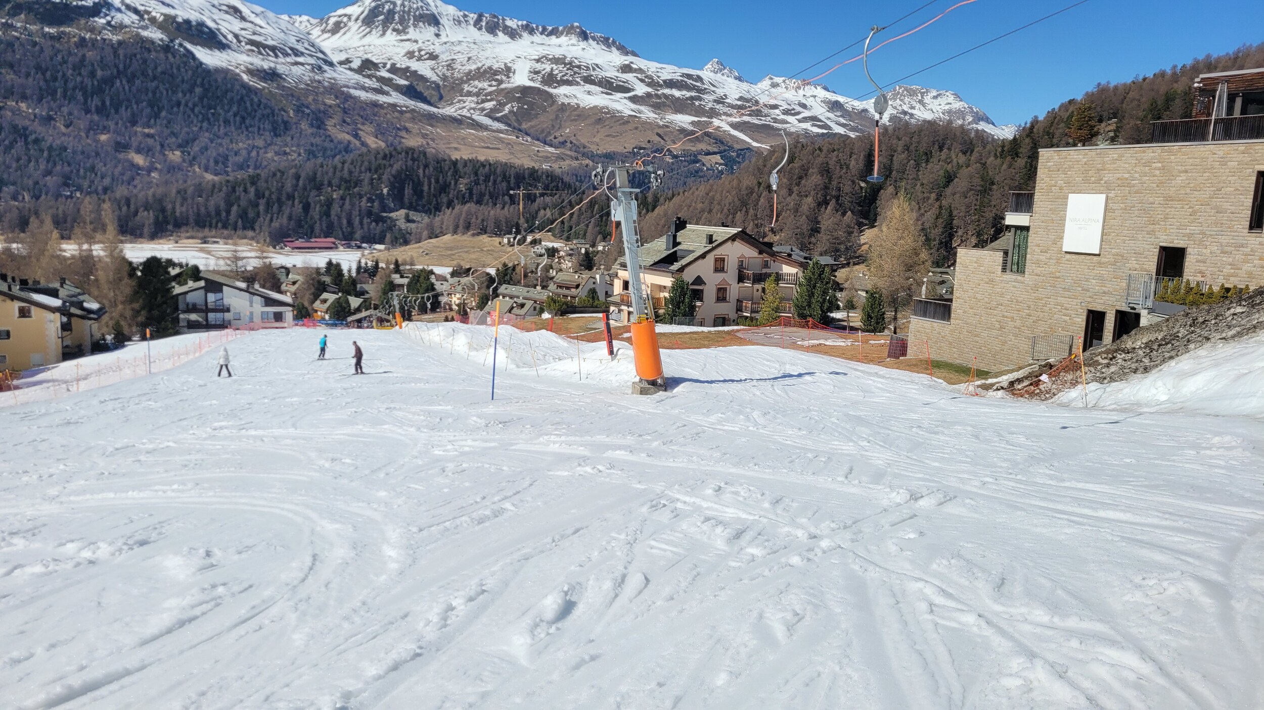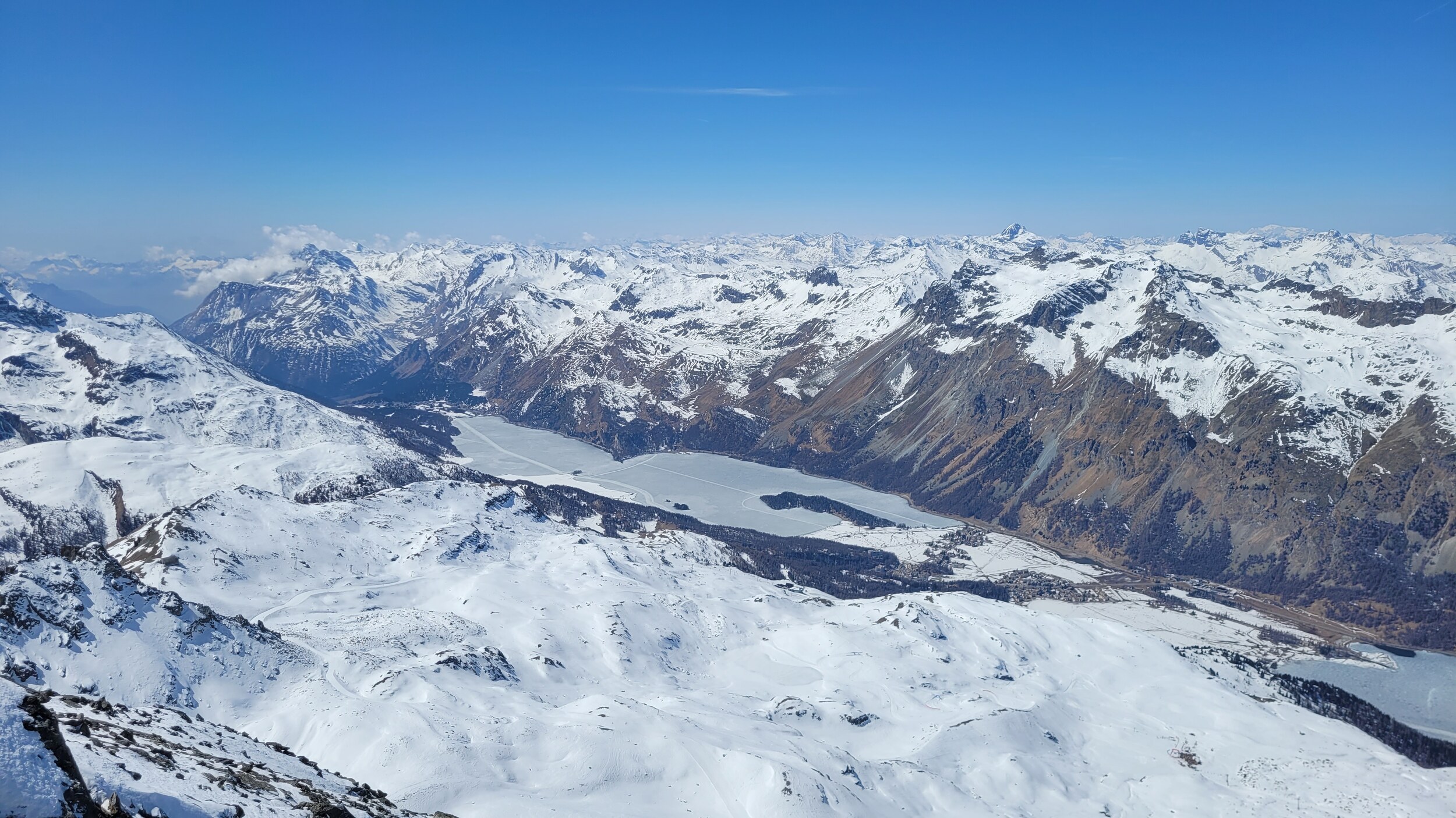 Heute verwerte ich meinen letzten Ikon-Tag am Corvatsch. Das Parkhaus war nach 9h schon voll, ich parke aber auch lieber unten, solange der SL Cristins läuft. An der PB hab es etwas Rückstau, musste aber nur 10min warten. Die Piste 9/11 war teilweise etwas bröckelig. Die Seen tauen langsam auf.
