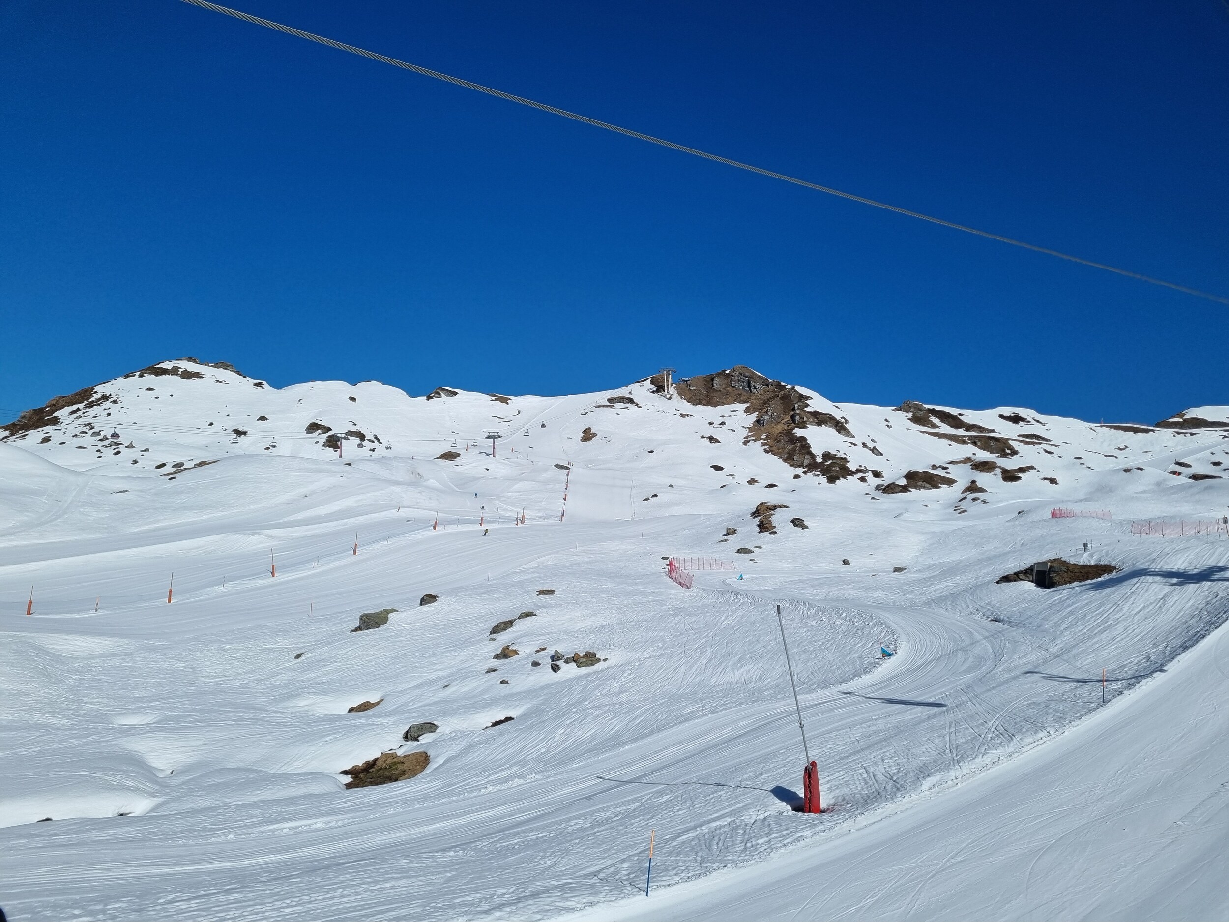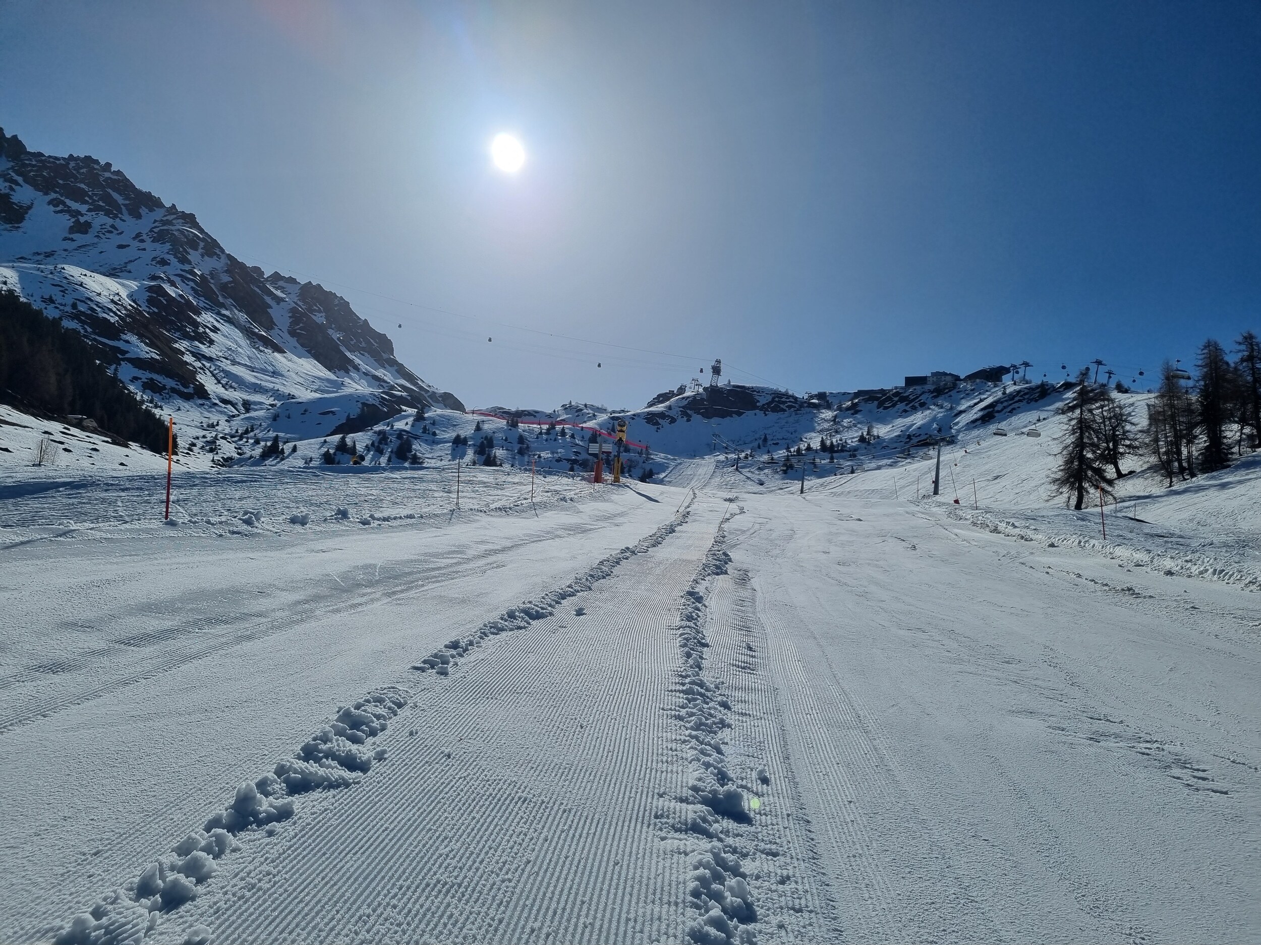 Heute herrliche Bedingungen in den 4 Vallées. Morgens überall winterlicher Schnee, nicht allzu viele Leute (sogar in Veysonnaz und Thyon war es ruhig), perfekte Pisten. Auch die gelben Routen waren gut.