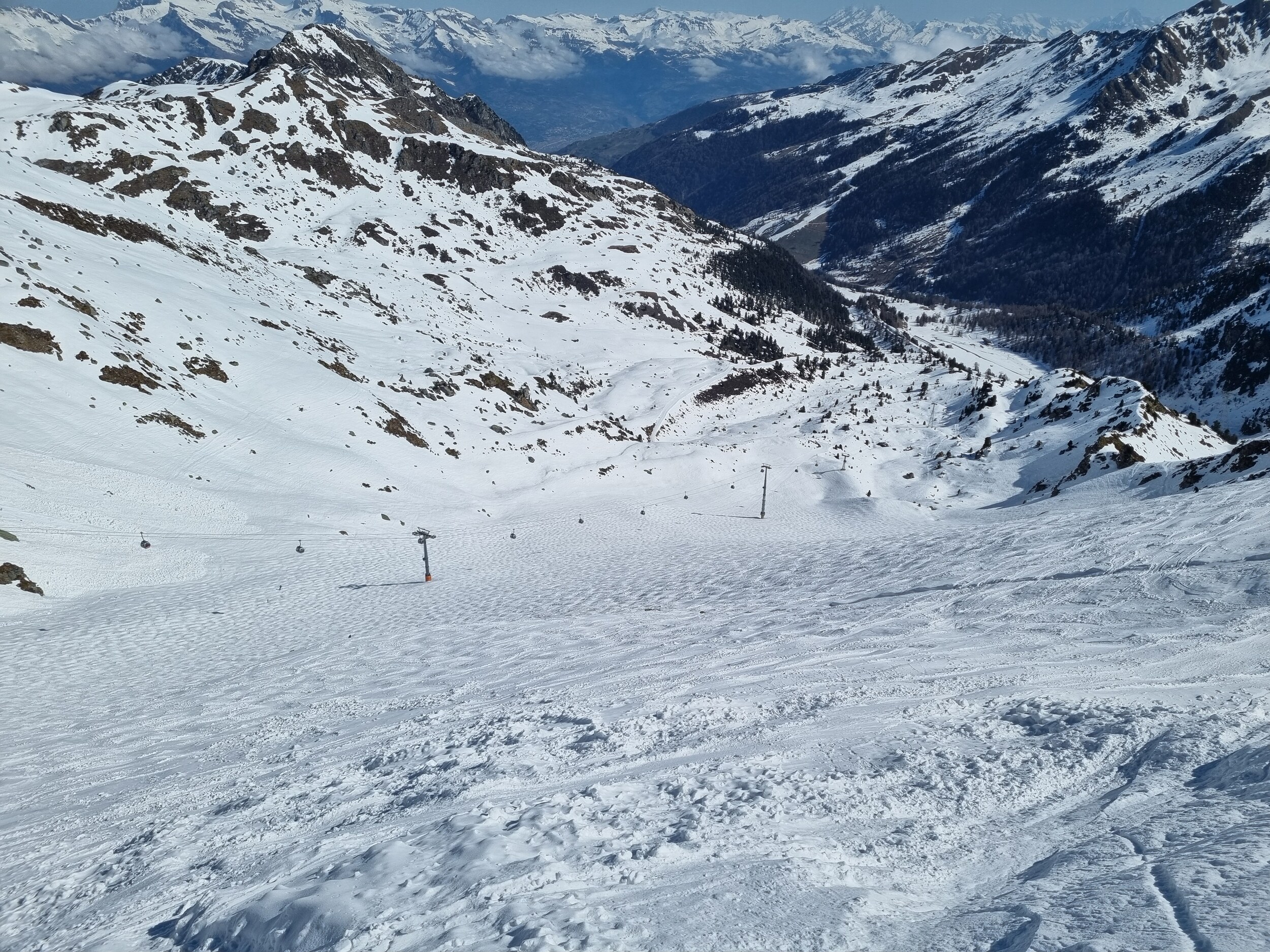 Jetzt kommt m.E. Eine der schönsten und besten Pisten in 4V (neben Bruson), trotz Sulz, runter nach Veysonnaz.