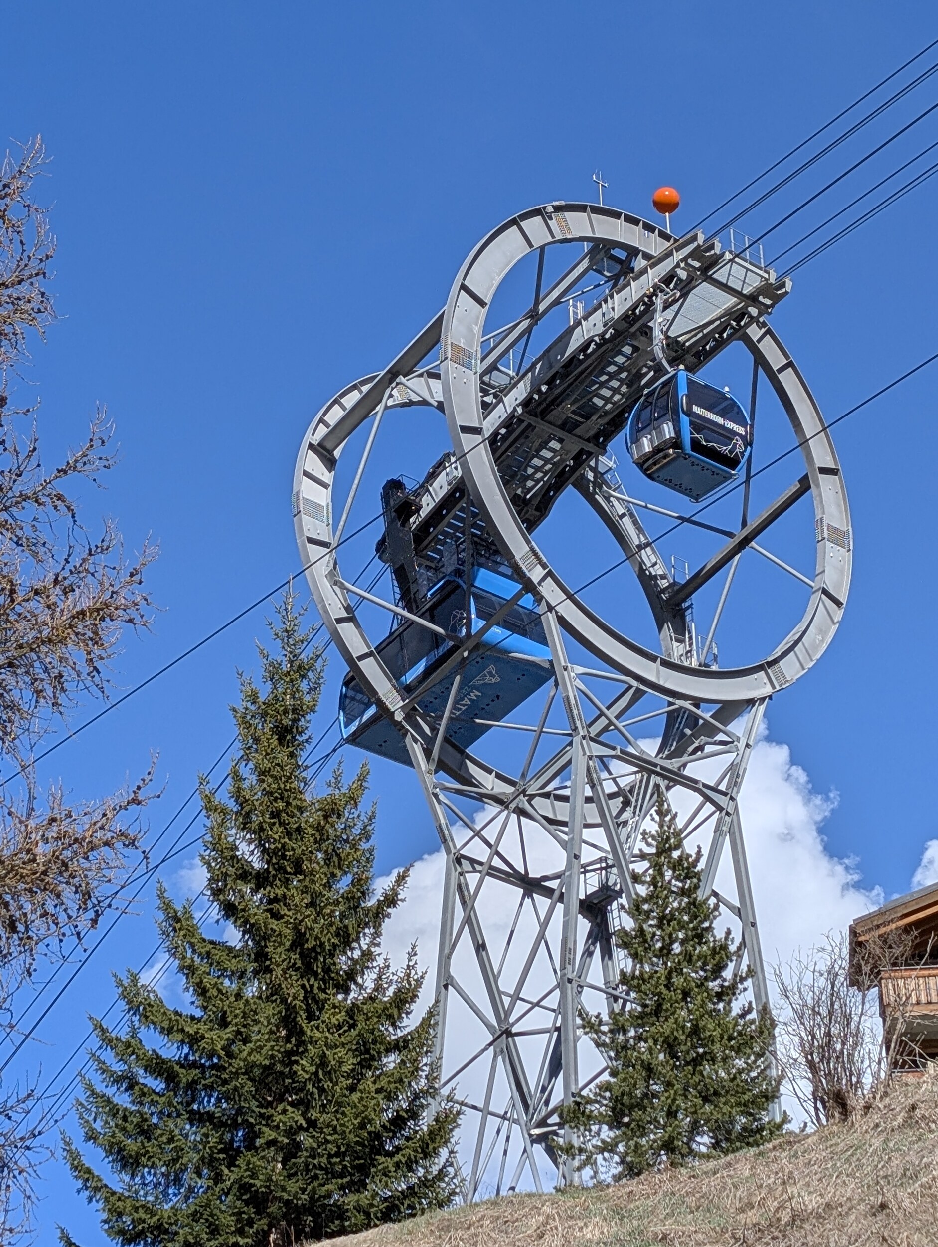Wenn man nur kurz hinschaut könnte man meinen, dass die grosse und die kleine Gondel am selben Seil hängen:
