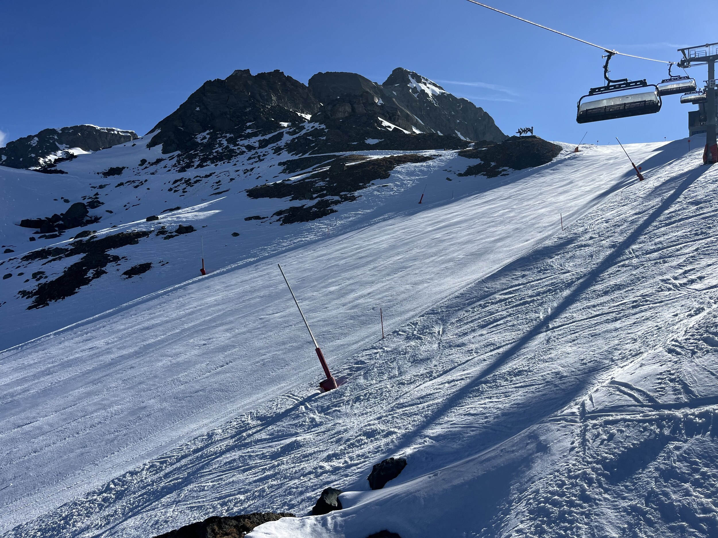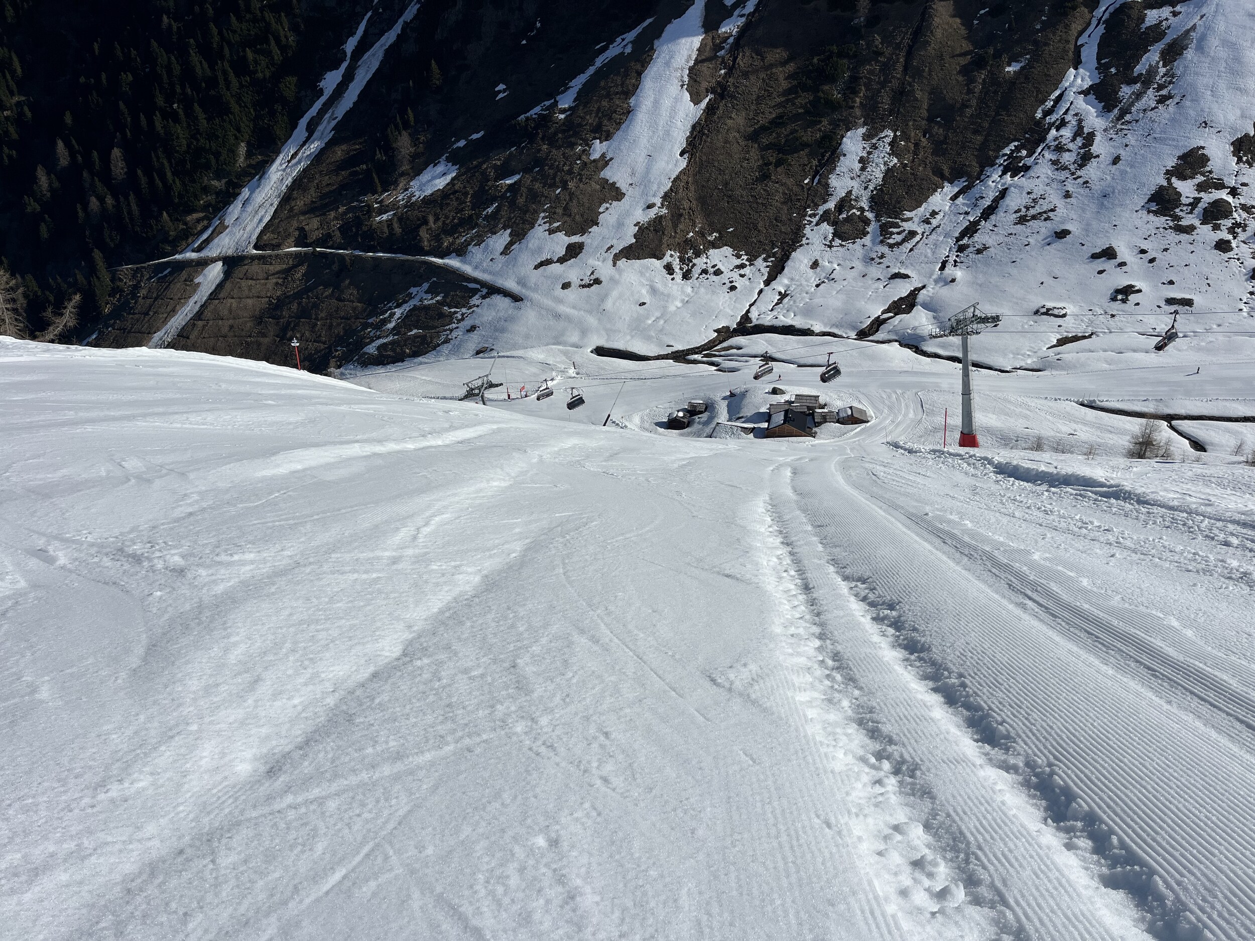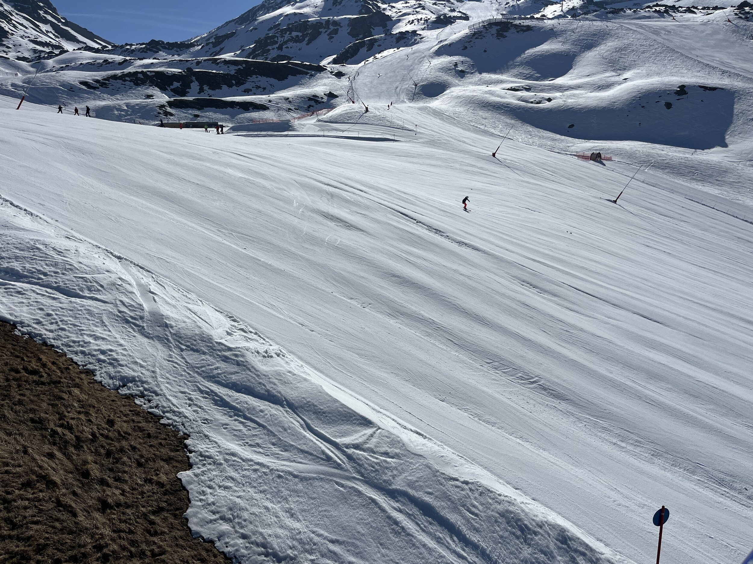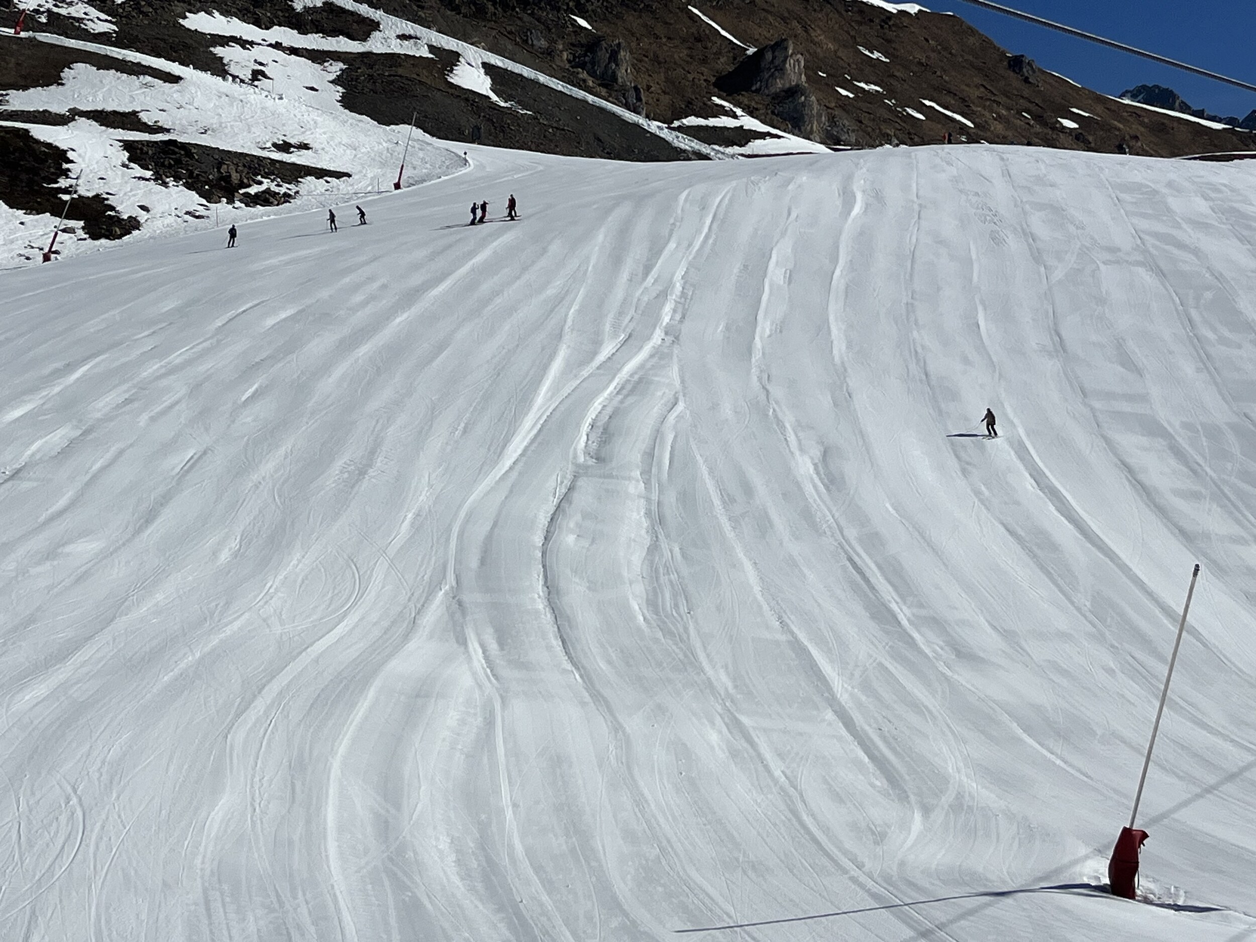 Ich würde mich schämen, sowas abzuliefern. Mir ist klar, dass es schwierige Verhältnisse sind. Aber andere können es trotzdem besser. Toll ist aber, dass der Hang bereits um diese Zeit aufgefirnt ist: