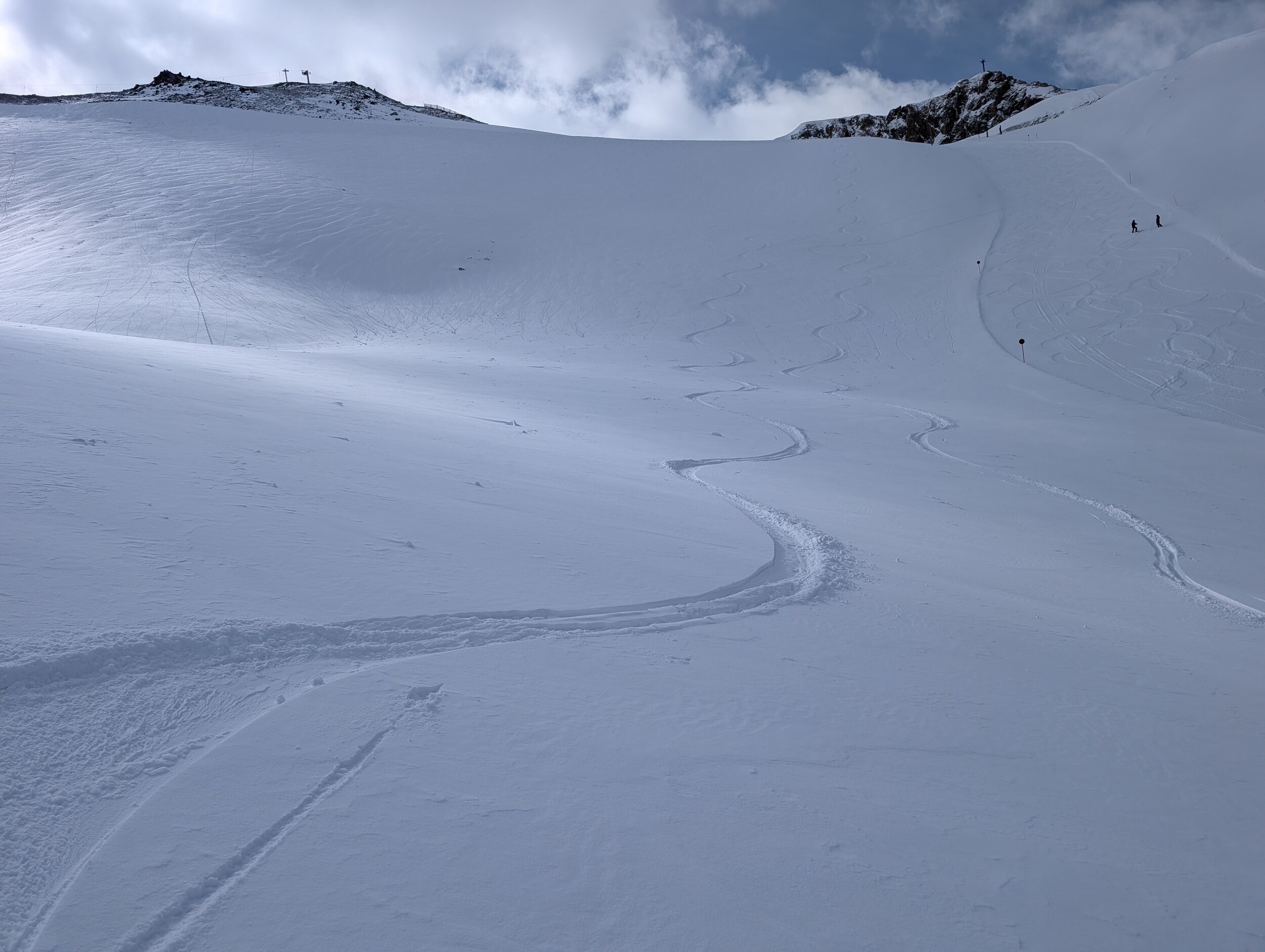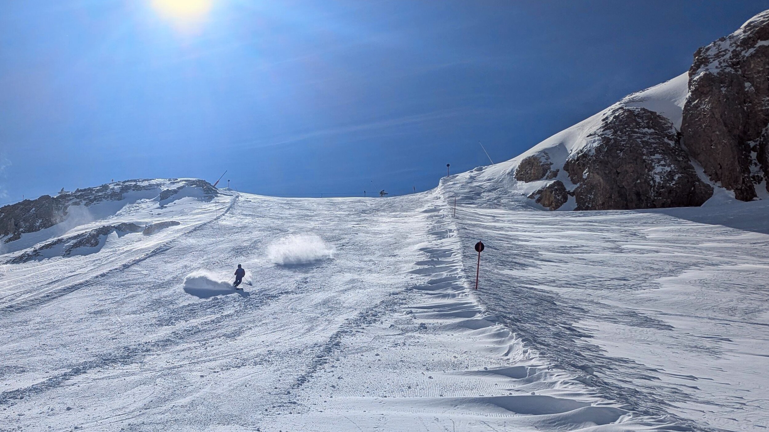 Schnee überall genug vorhanden. Manchmal aber doch ein paar Steine auf den Pisten.