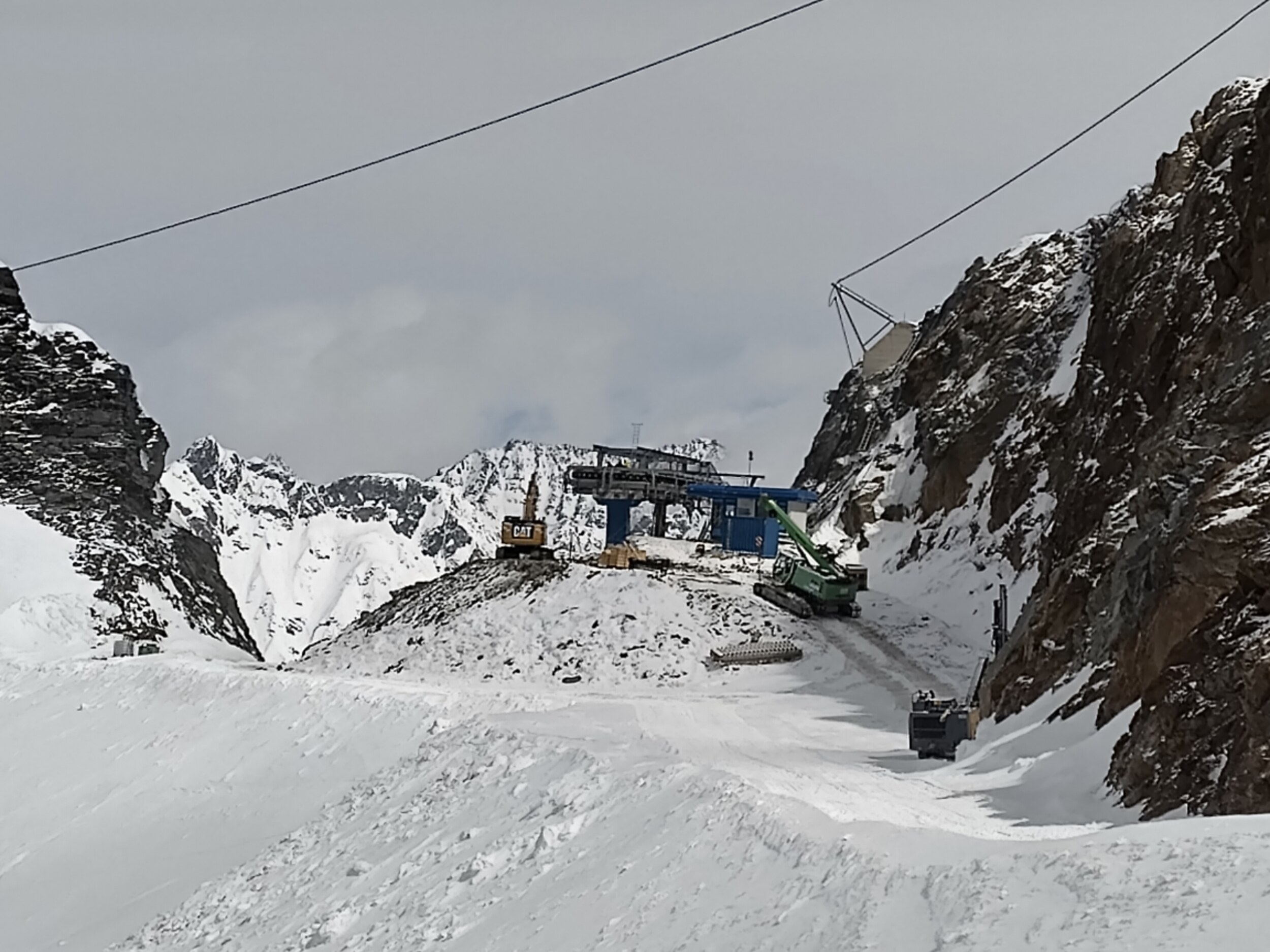 Mit welcher? Es wird ja am Stubaier mehr gebaut als wie die Tieferlegung der Bergstation Eisgrat. Bei der 6er KSB/B ist aber nun das Förderseil abgelegt. Im Grunde sind wir hier also bei den vorbereitenden Maßnahmen.