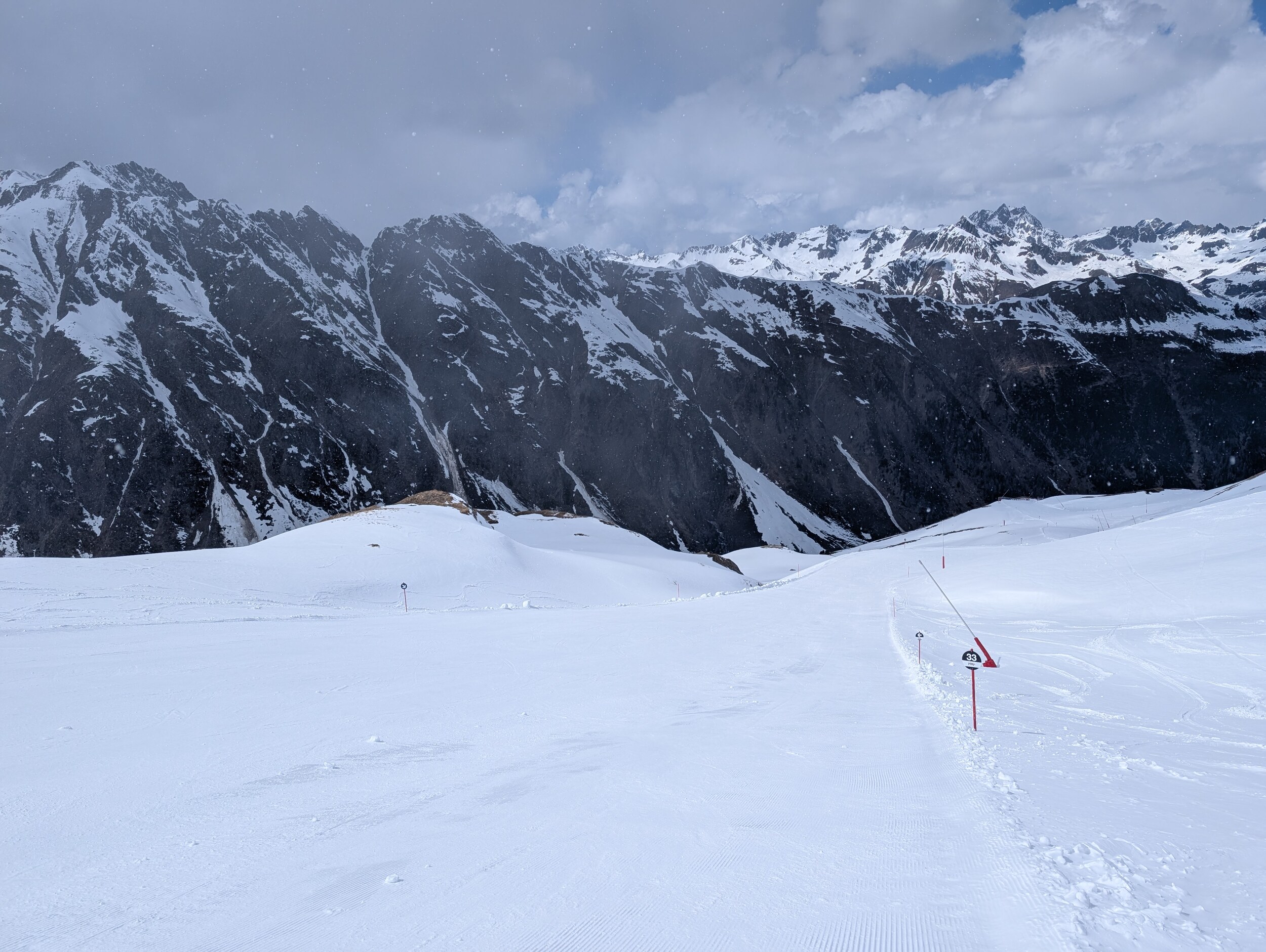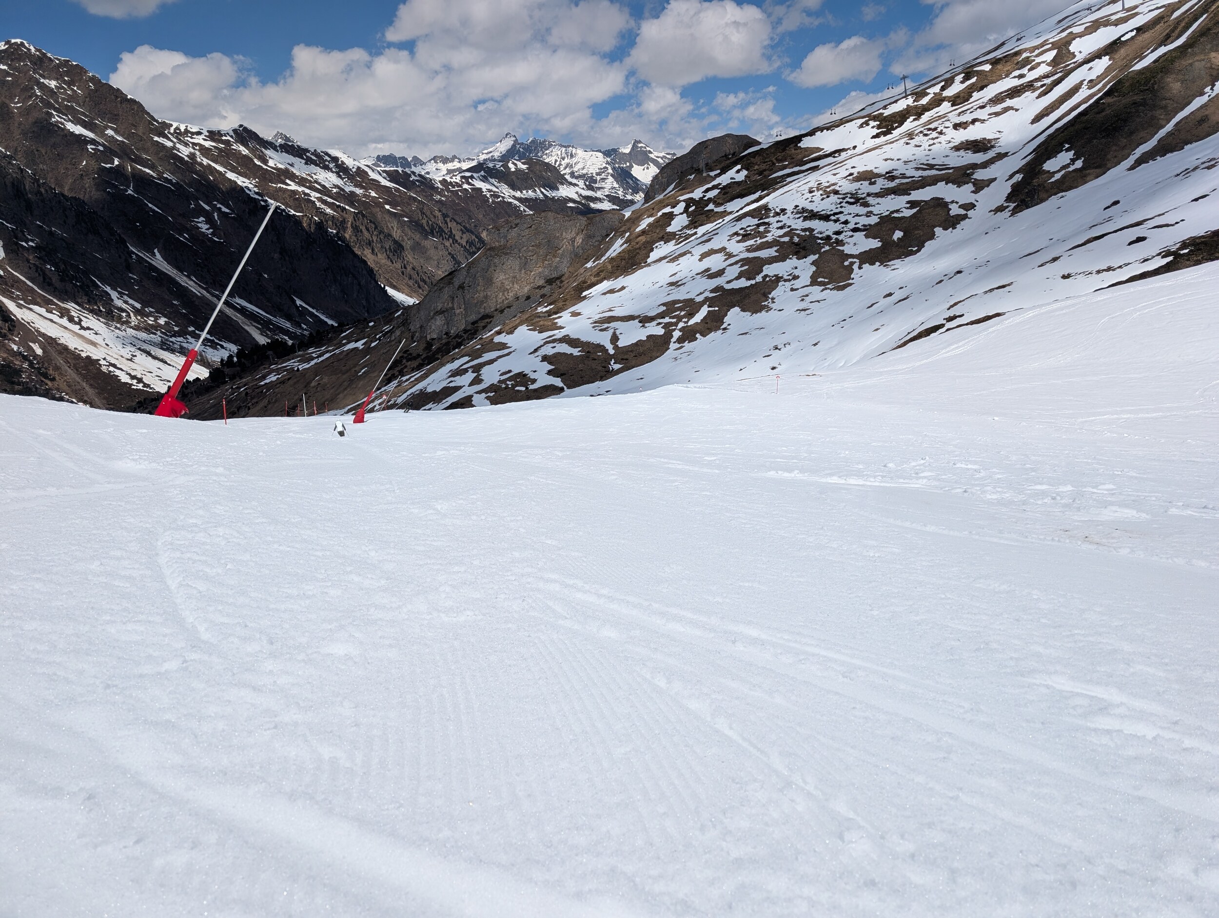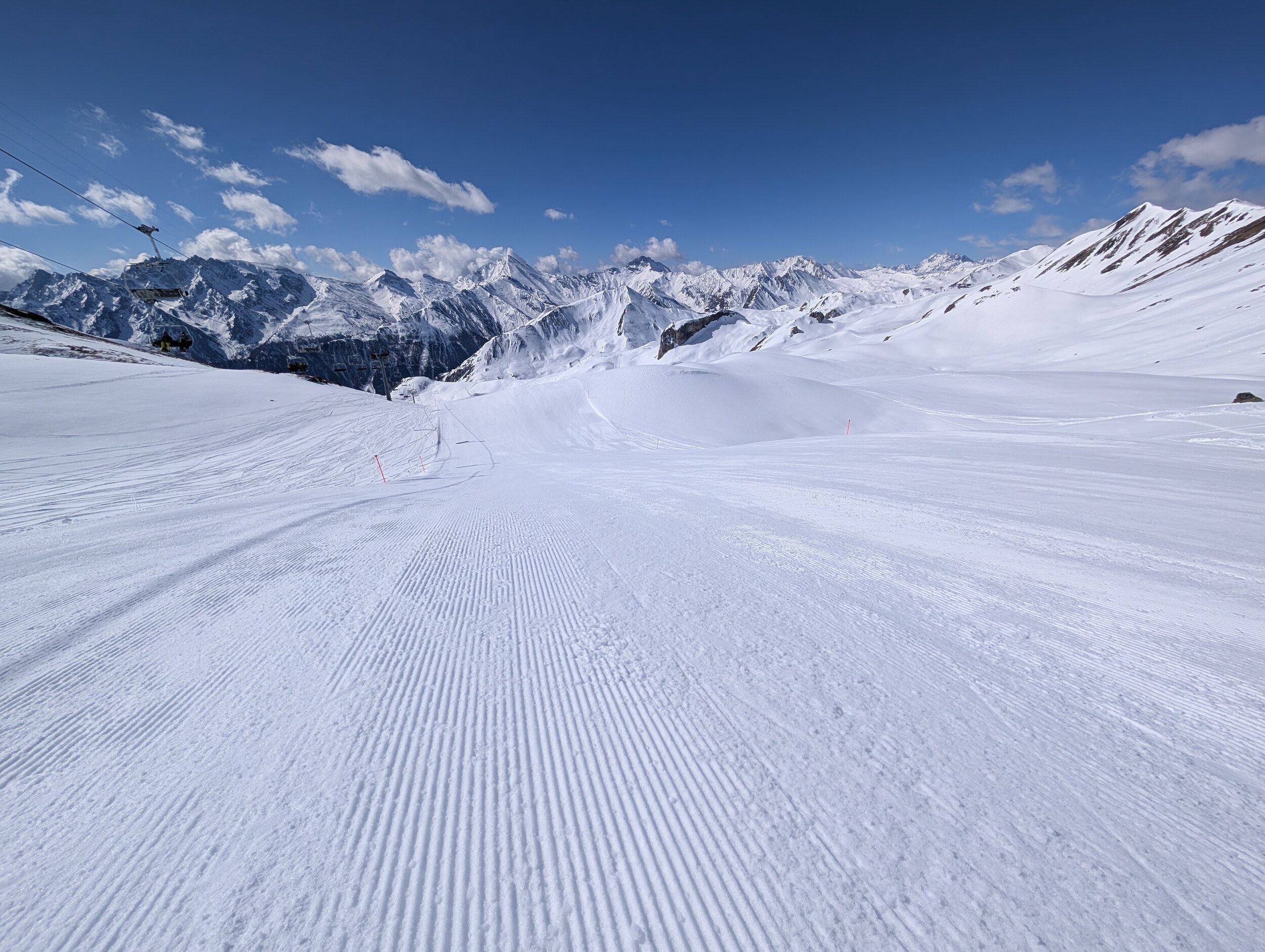 Die Pisten auf der Seite Ischgl (wo heute Morgen auch nochmals gewalzt wurde) weiterhin sehr schön zu fahren. Es hat halt kaum Leute
