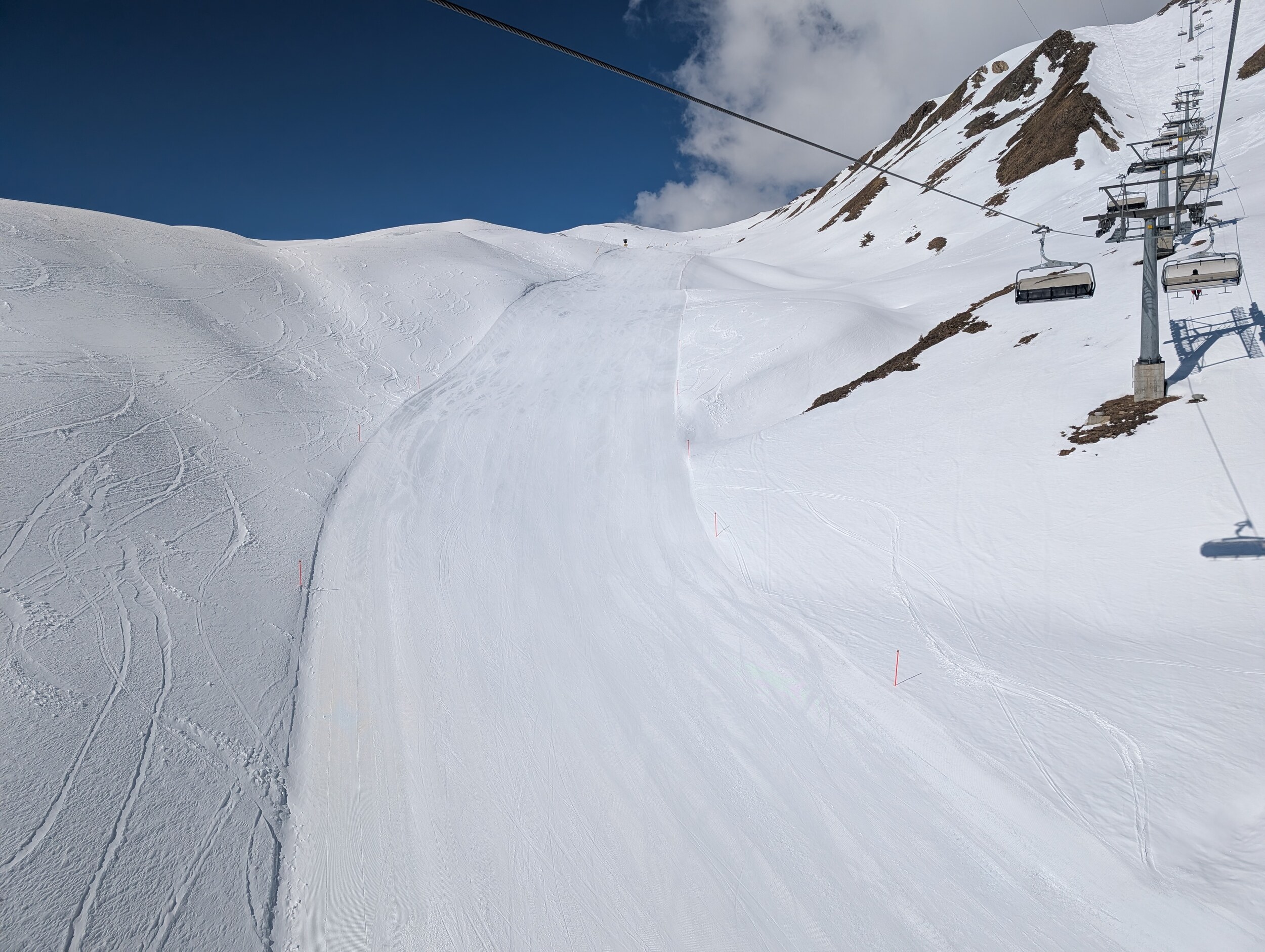 Gampen die 40 ist bis auf ein zwischenstück noch ganz gut und erstaunlicherweise die 11 Idjoch. Da gibt es überhaupt keine Haufenbildung. Es hat halt einfach keine Leute. Auslastung heute wohl 14%.