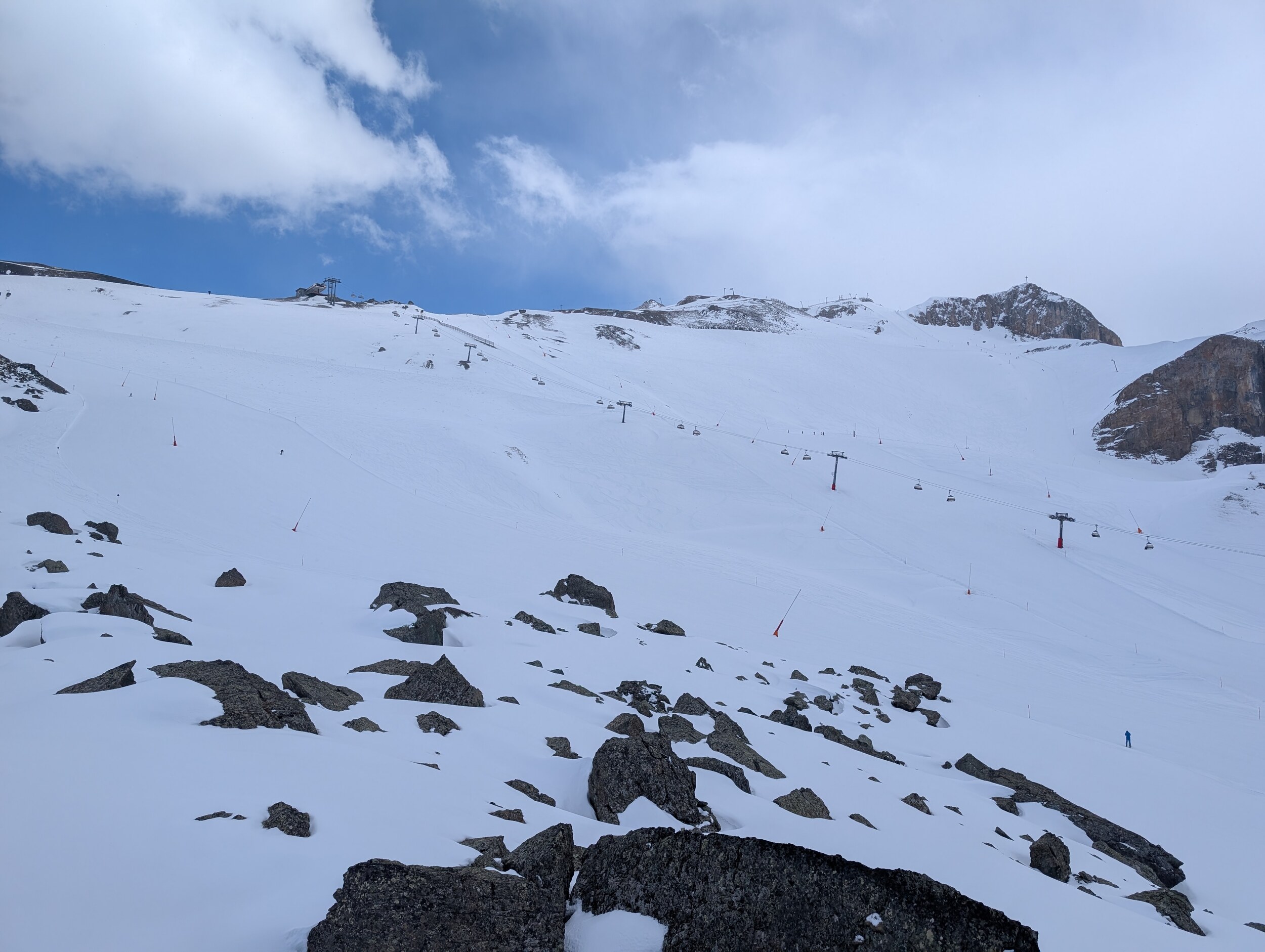 Schnee überall genug vorhanden. Manchmal aber doch ein paar Steine auf den Pisten.