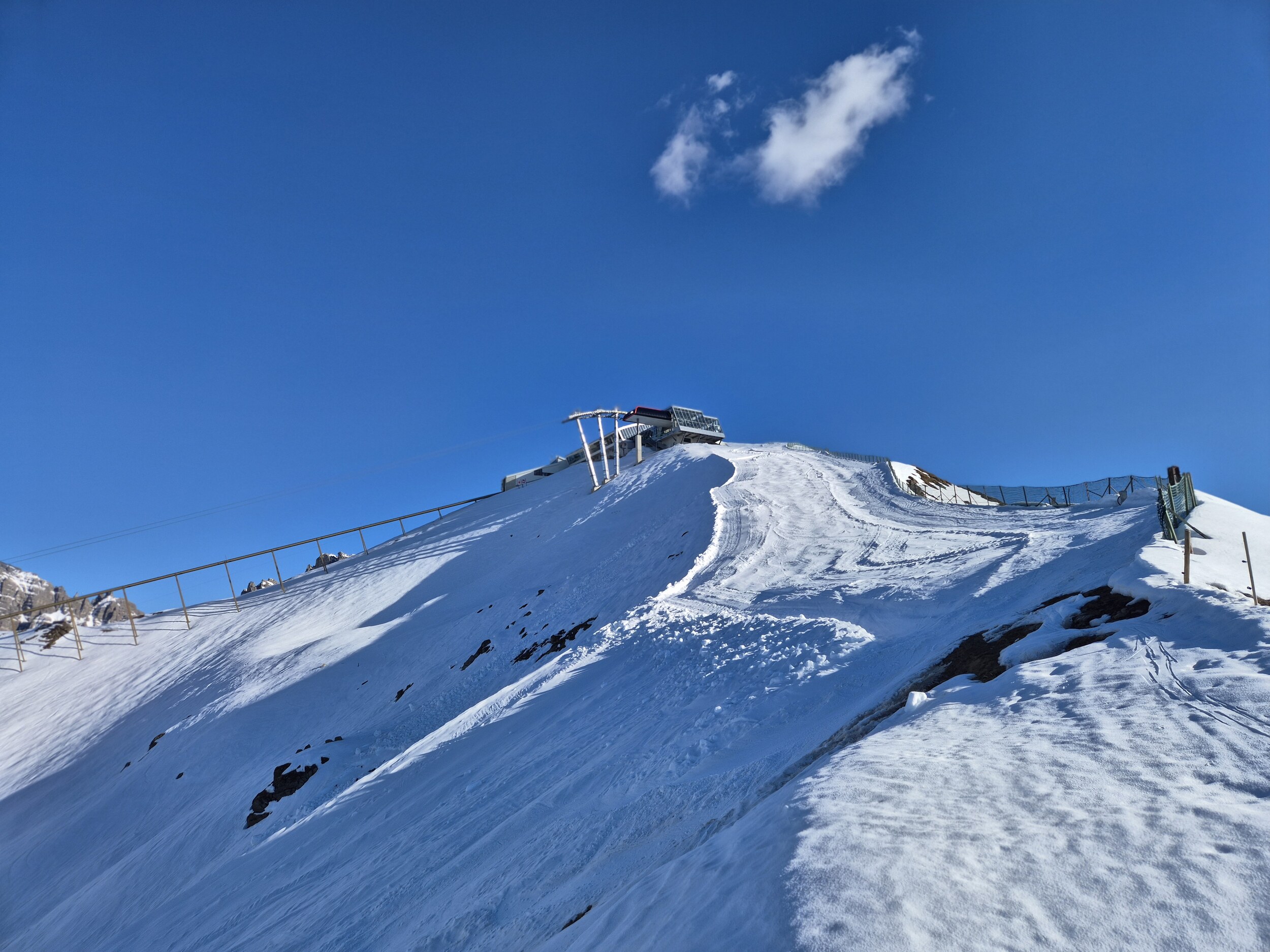 Oben immer noch herrlicher Firn. Aber ganz ohne Grasski gehts nur einen Tag später nicht mehr...
