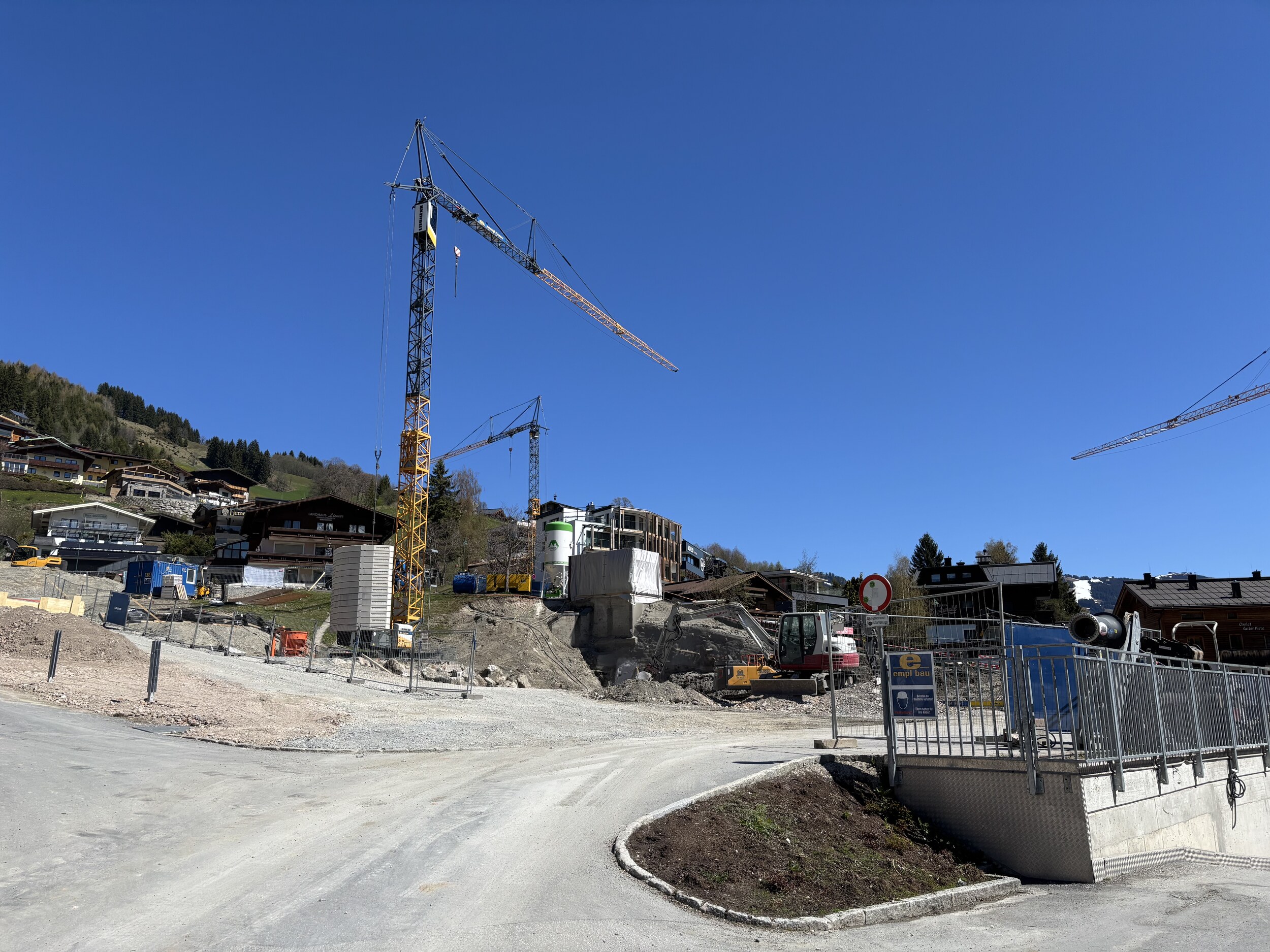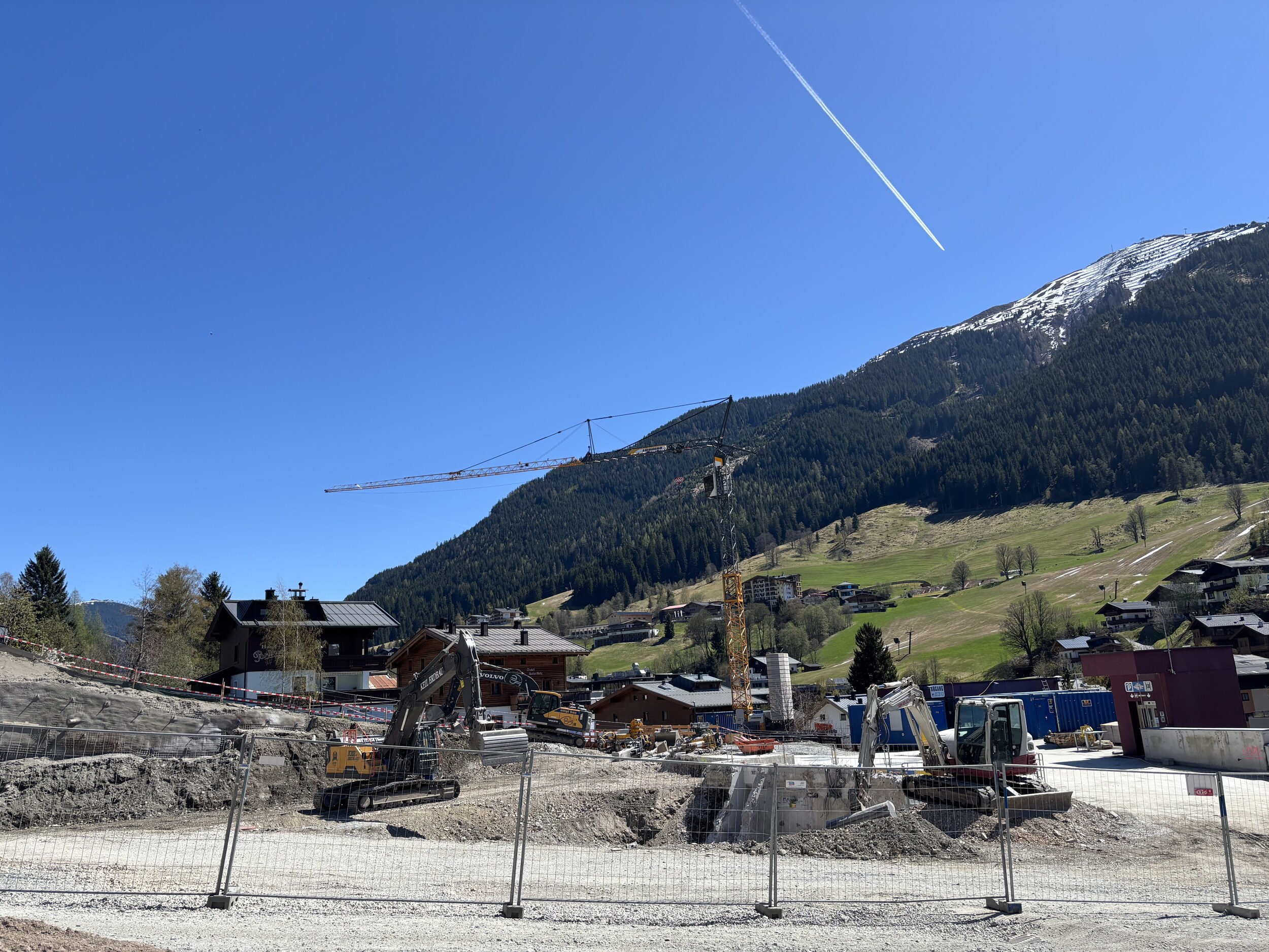 Der Neubau der Reiterkogelbahn wird schon vorbereitet: Der Baukran wird schon aufgestellt und die Treppe vom Ausgang aus der Station wurde schon mit dem Meissel weggestemmt.