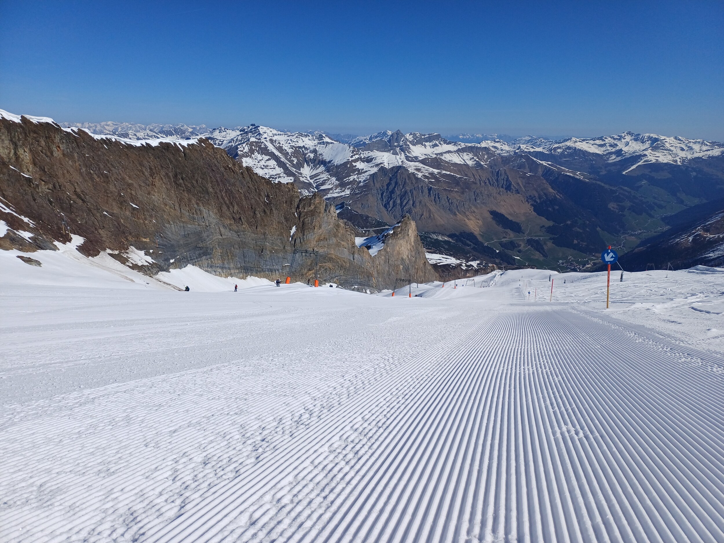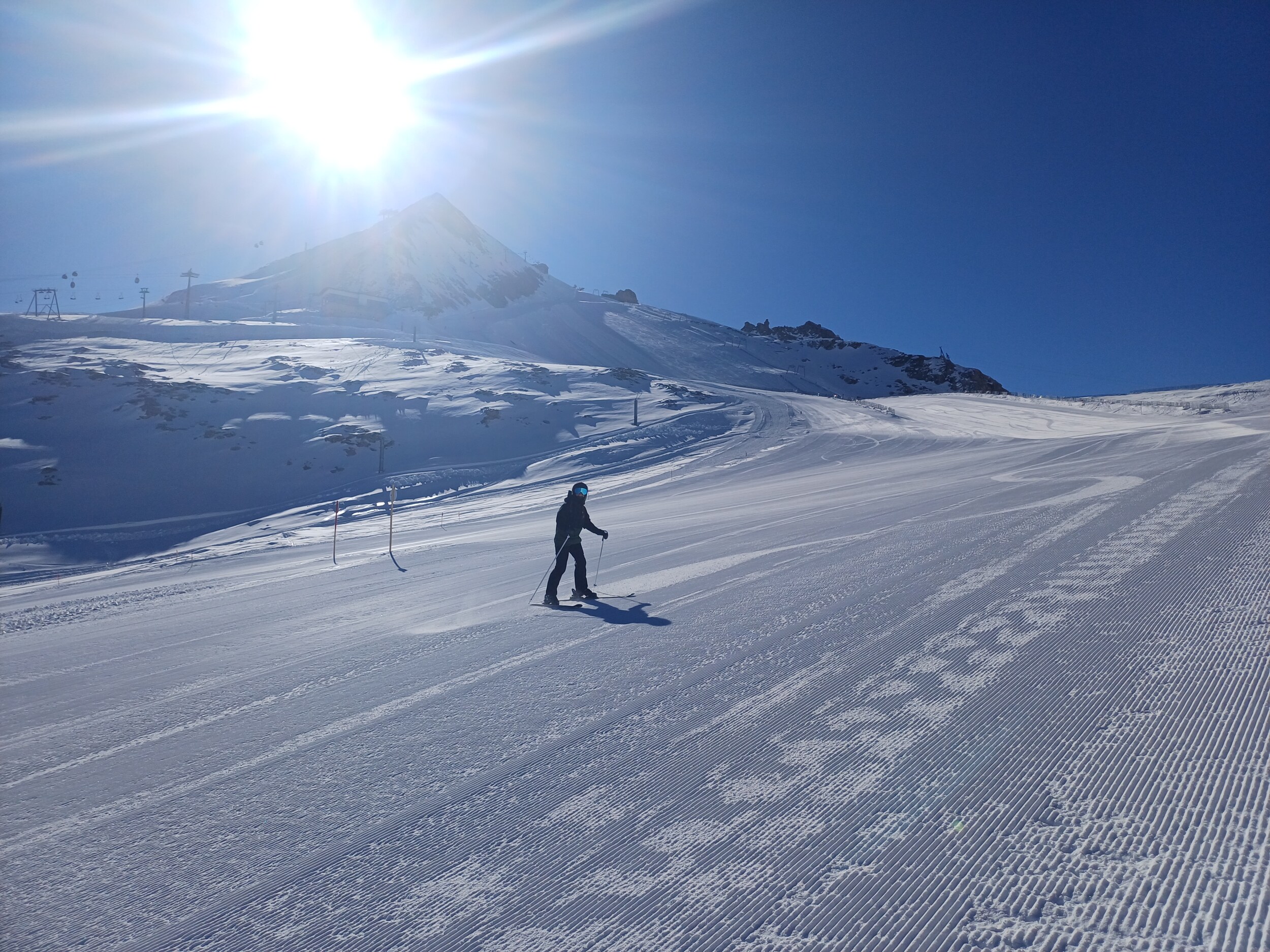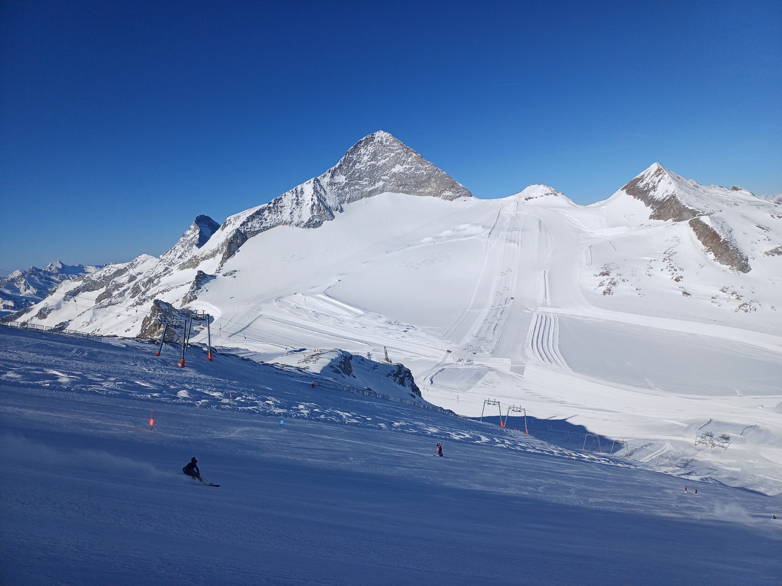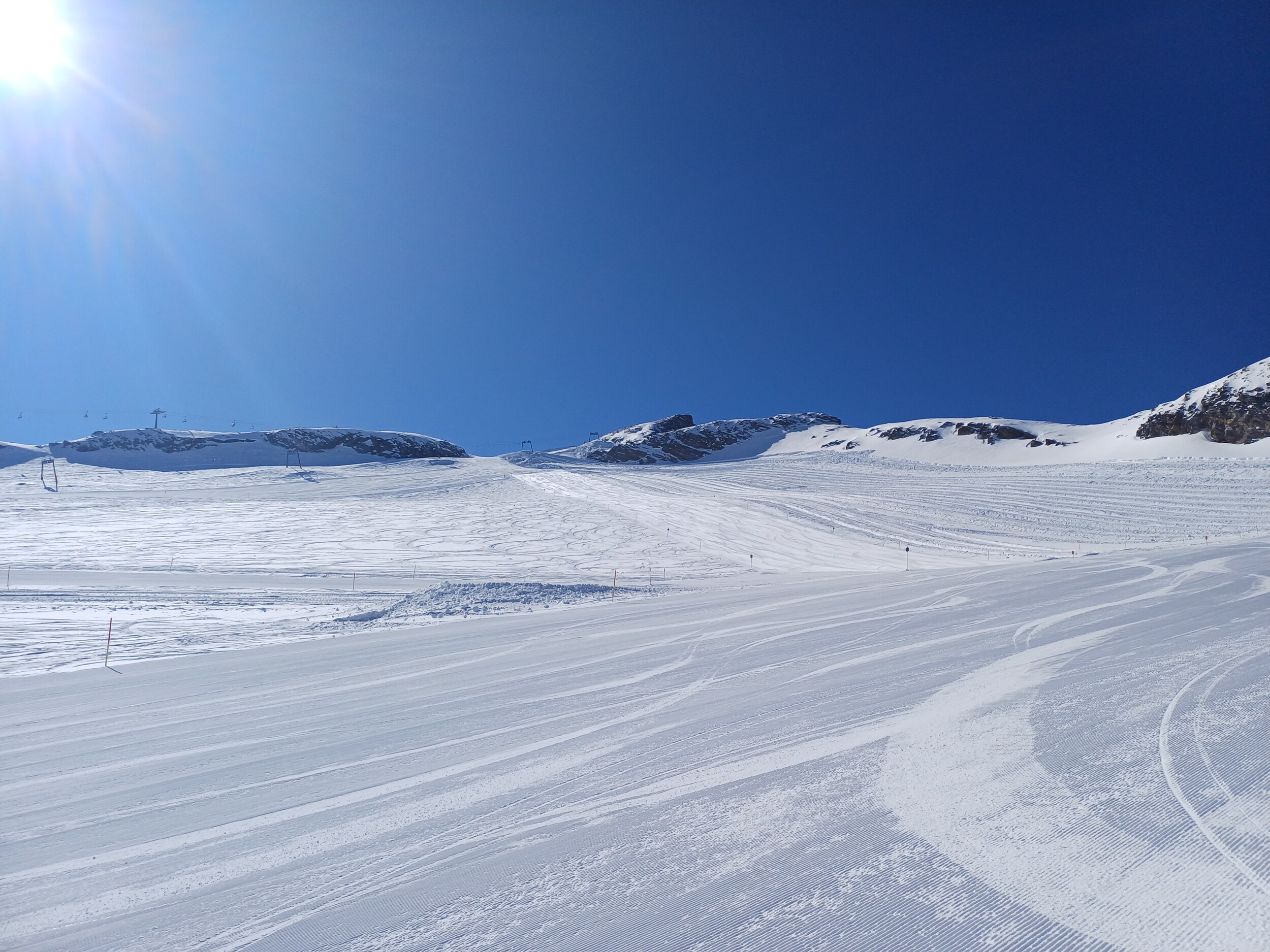 Vorteil zu Pitztaler, es gibt nicht nur sehr steil oder sehr flach sondern viele Mittel steile Hänge hier. Nachteil einfach etwas mehr los. Ich denke Sonntag ist eher leerer weil die Touris am ersten Skitag eher selten zum Gletscher fahren. Samstag ist eh perfekt - wenn denn gut gewalzt ist.