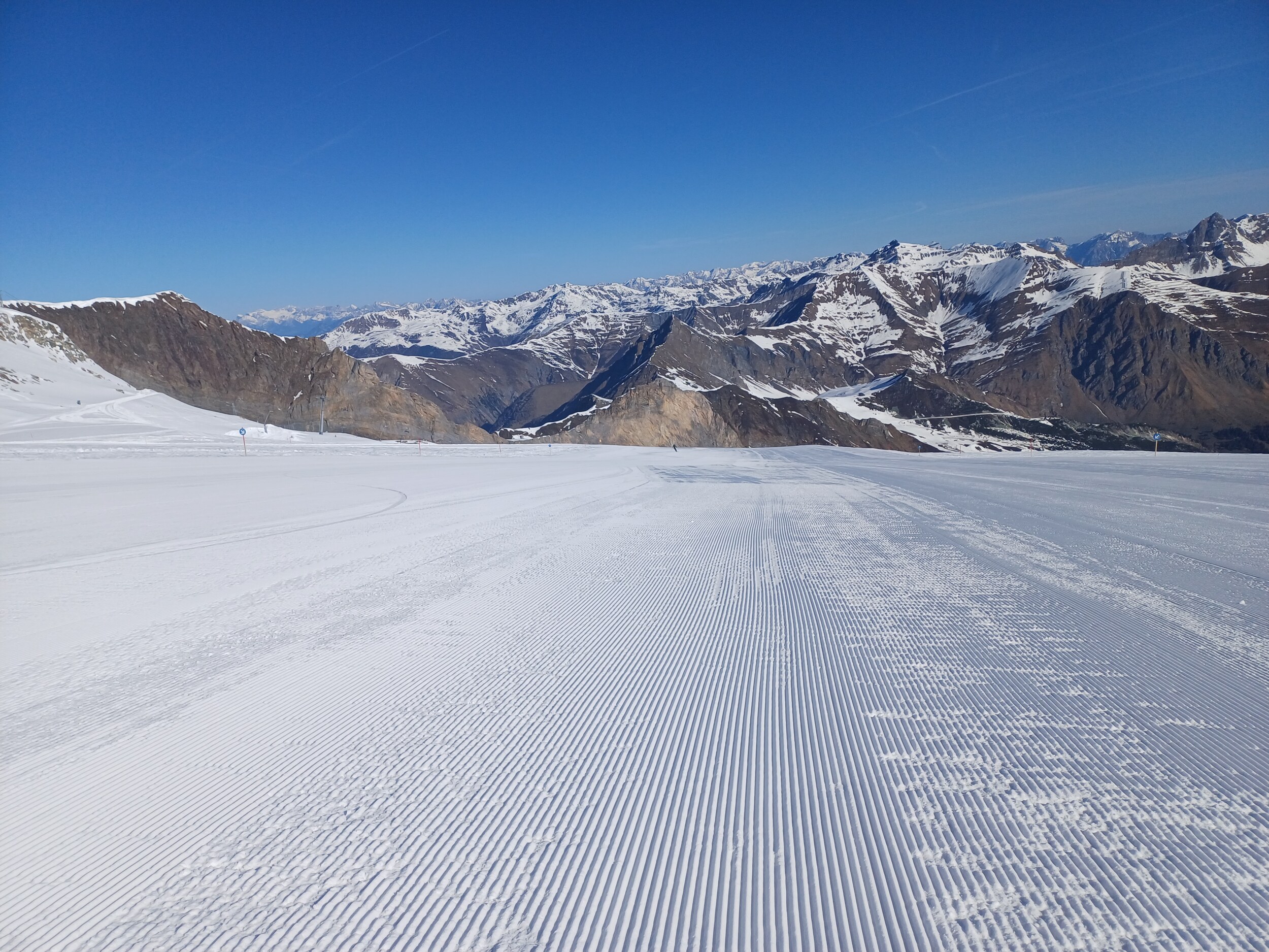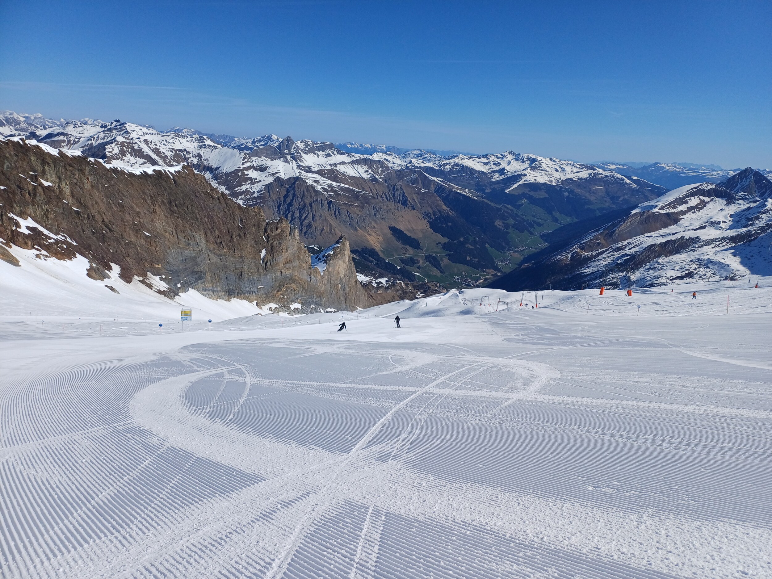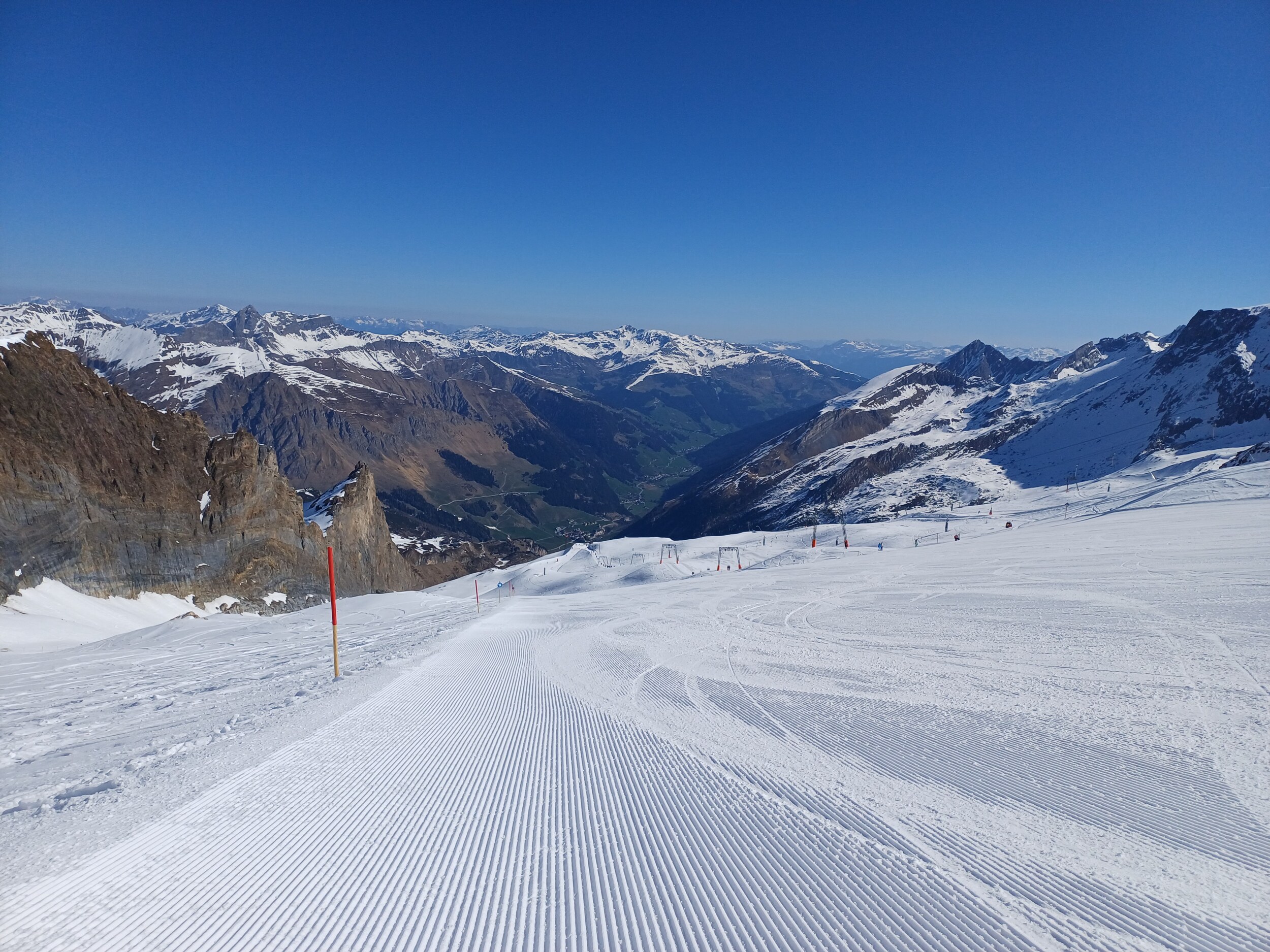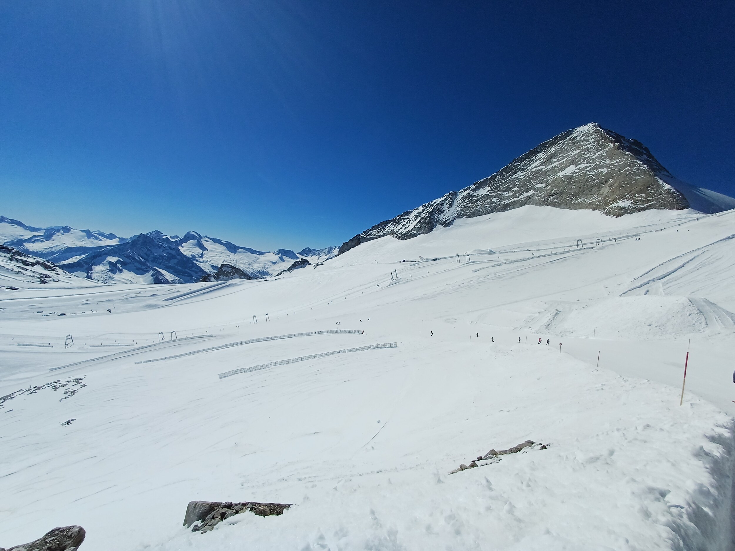 Vorteil zu Pitztaler, es gibt nicht nur sehr steil oder sehr flach sondern viele Mittel steile Hänge hier. Nachteil einfach etwas mehr los. Ich denke Sonntag ist eher leerer weil die Touris am ersten Skitag eher selten zum Gletscher fahren. Samstag ist eh perfekt - wenn denn gut gewalzt ist.