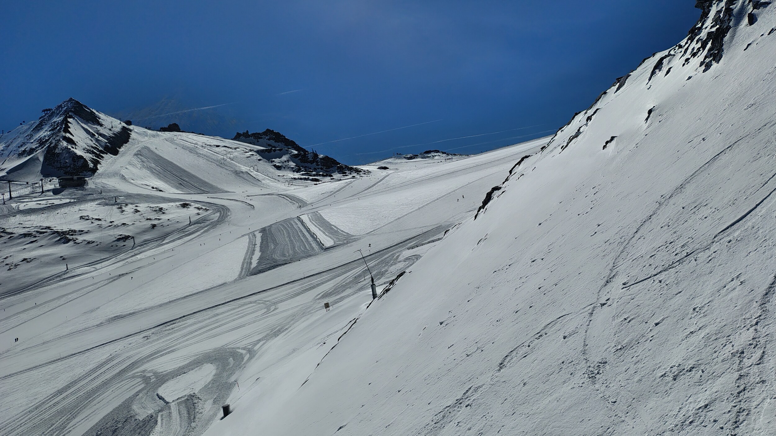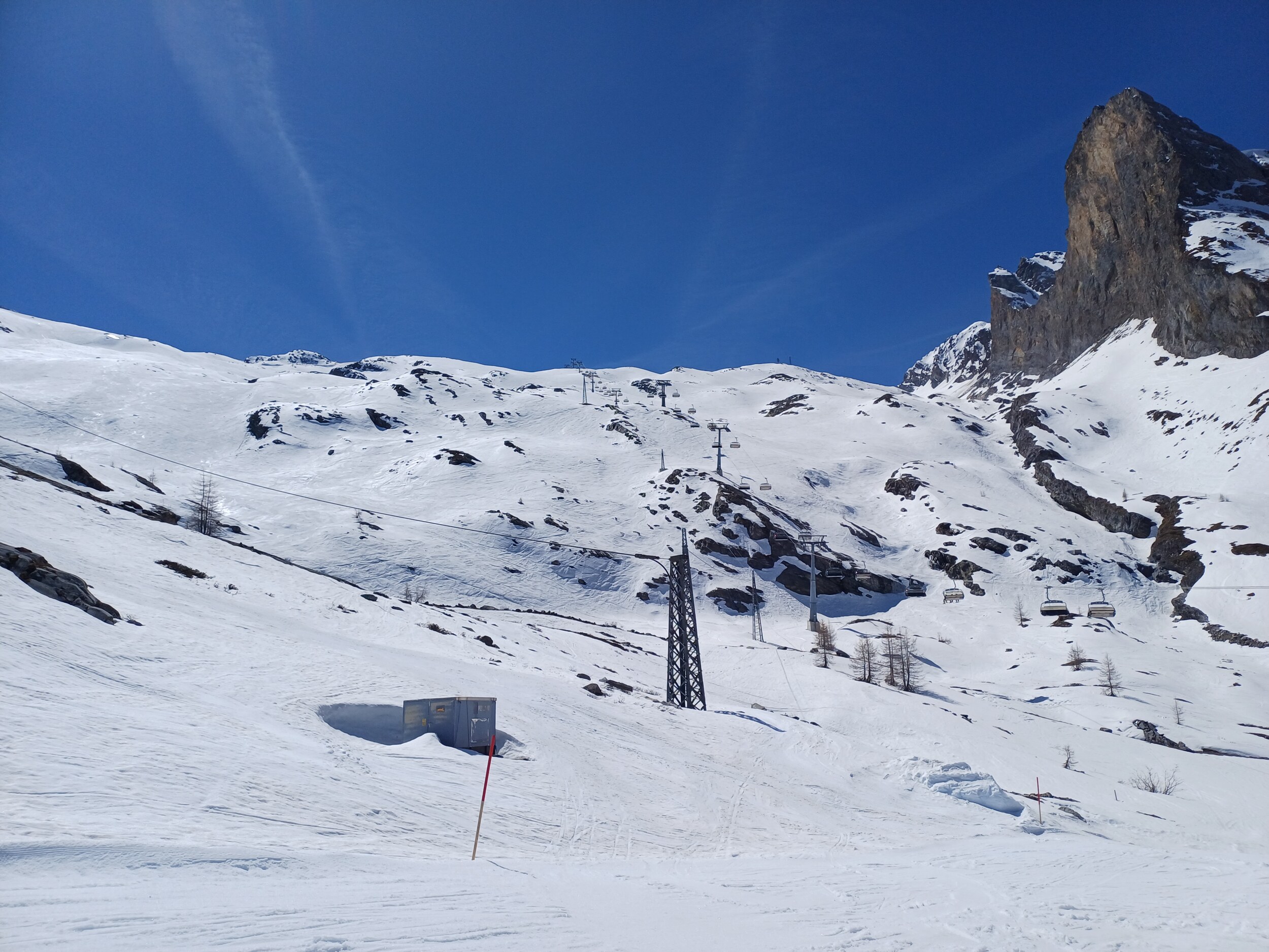 Lärmstange I .... leider entfaltet die Bahn ihr mögliches Potential so gar nicht. Kaum ein Mehrwert in dieser Form. Es fehlt einfach eine richtige eigene Piste entlang der Route mit Beschneiungsanlage und allem drum und dran. Meißel und Dynamit halten sich eigentlich bis auf ganz unten in Grenzen.