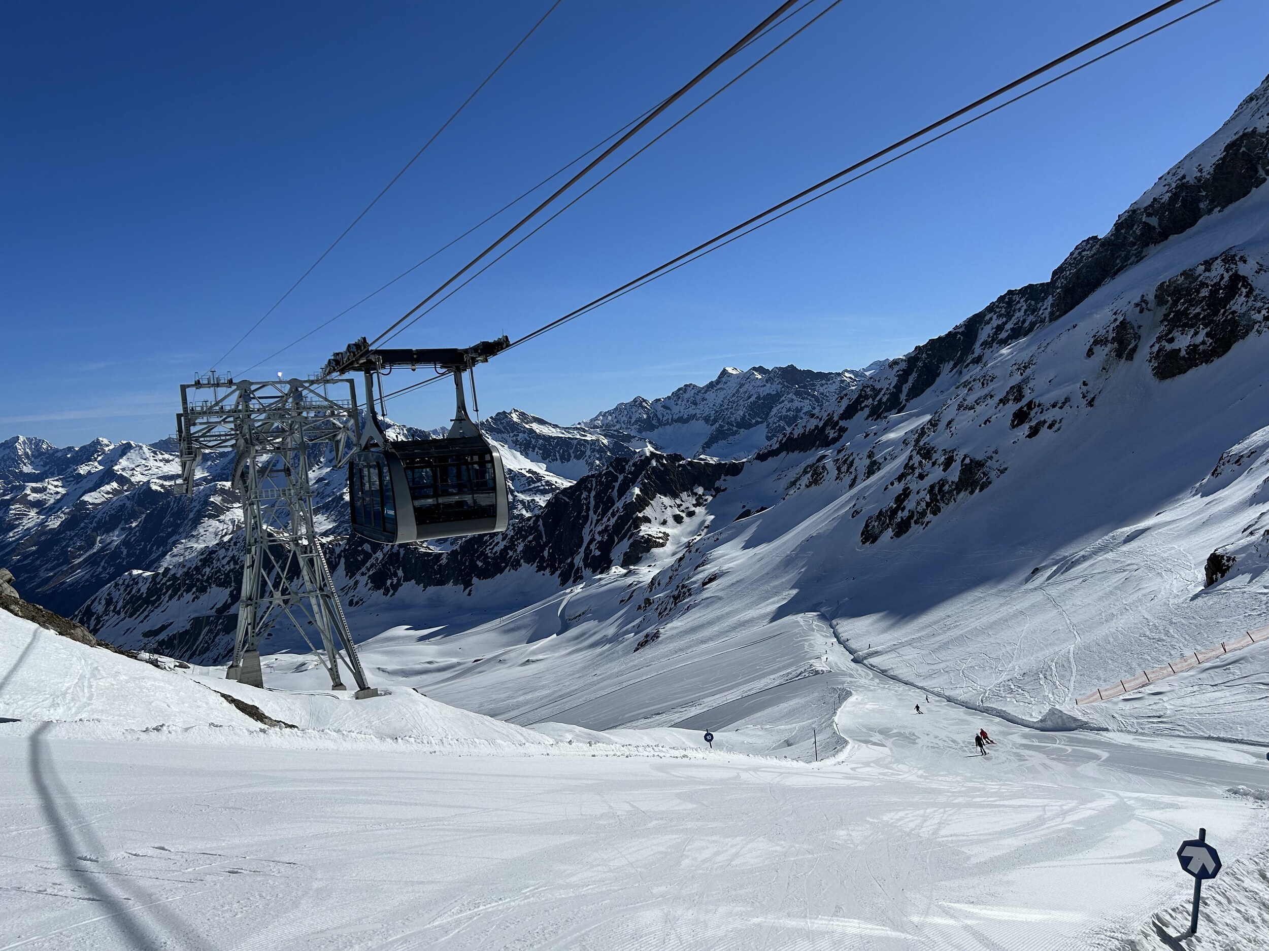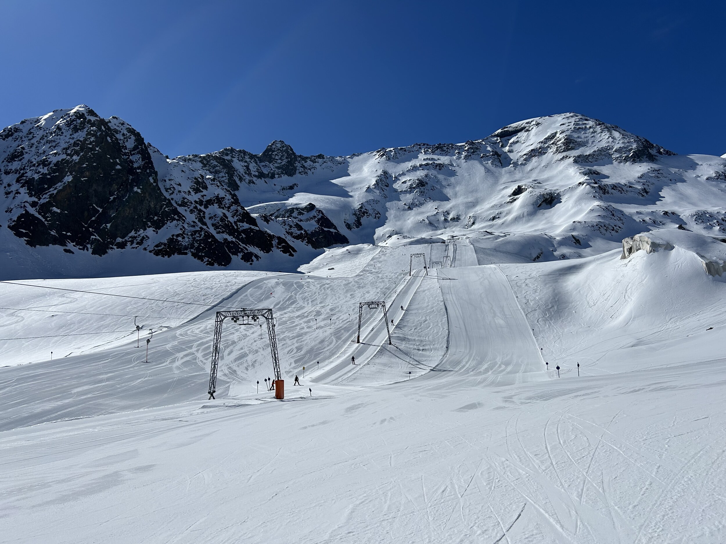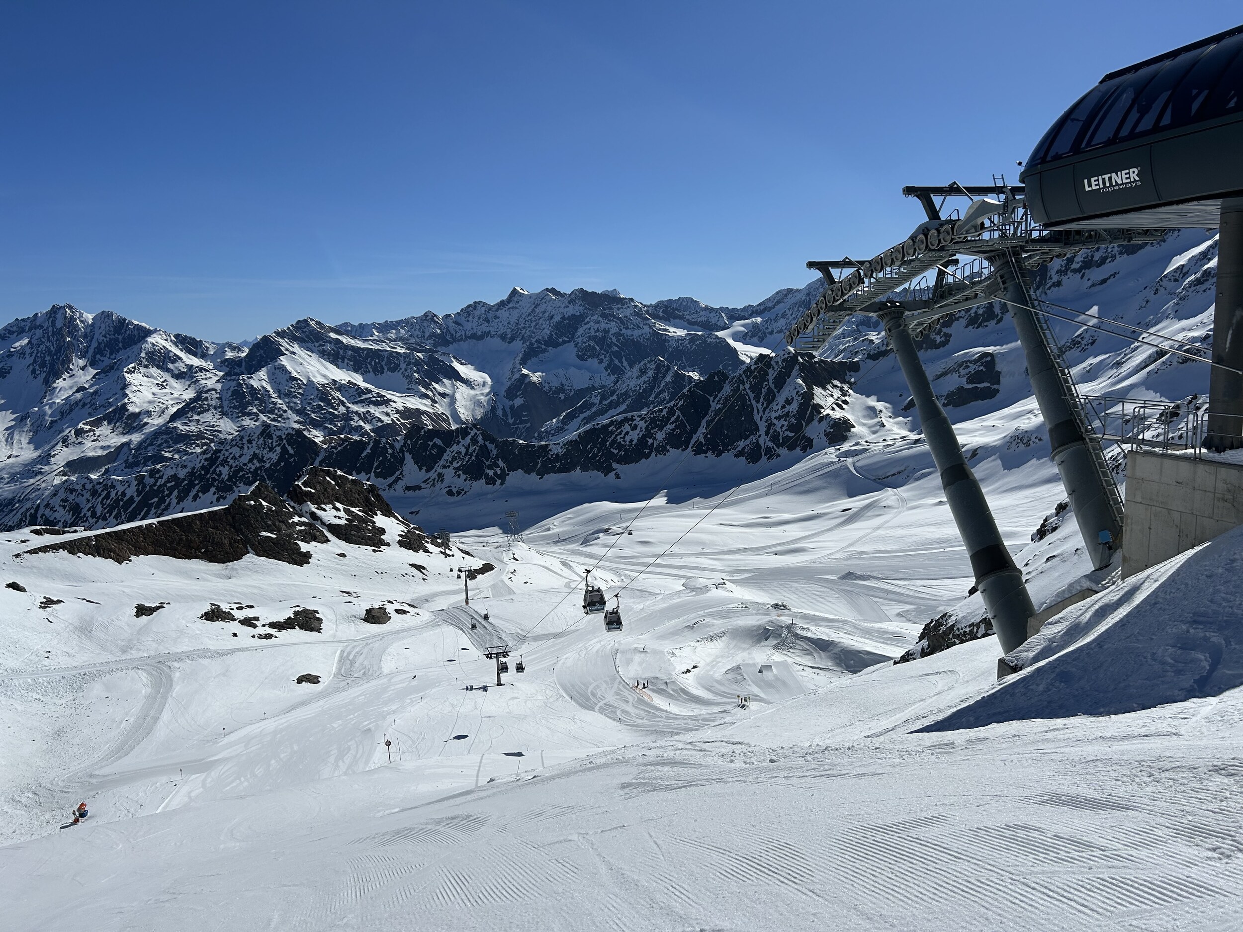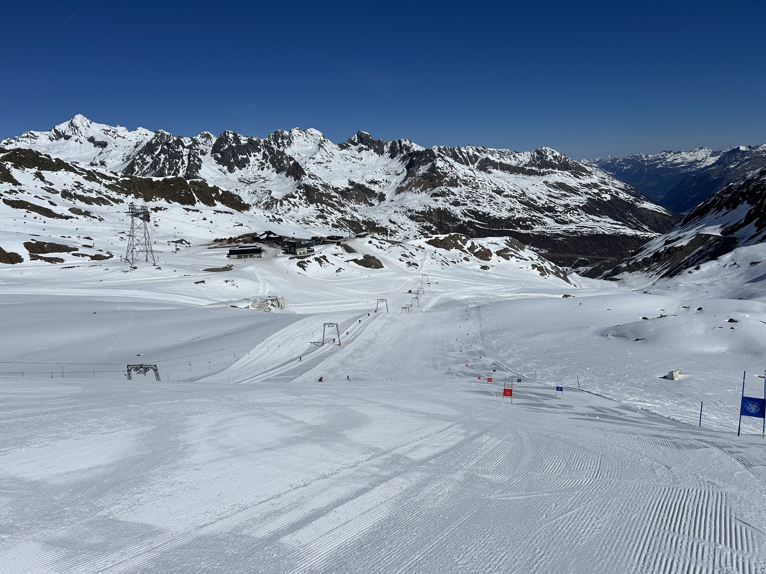 Nach den warmen Temperaturen der letzten Tage, hatte ich Bedenken, dass auch oben am Gletscher der Schnee nicht mehr lange durchhält. Aber die kalten Nächte lassen es ordentlich durchfrieren und nur die Südhänge werden weich. Am Morgen waren alle Pisten perfekt zum fahren und die Präparation ist gewaltig gut. Vor allem am Flaginjoch war es ein Traum den ganzen Tag und auch noch um Mittag gab es dort die Präparierrillen. So gute langanhaltende Pisten hatte ich die ganze Saison nicht. Auch die Vronitunnelpiste war der Hammer.