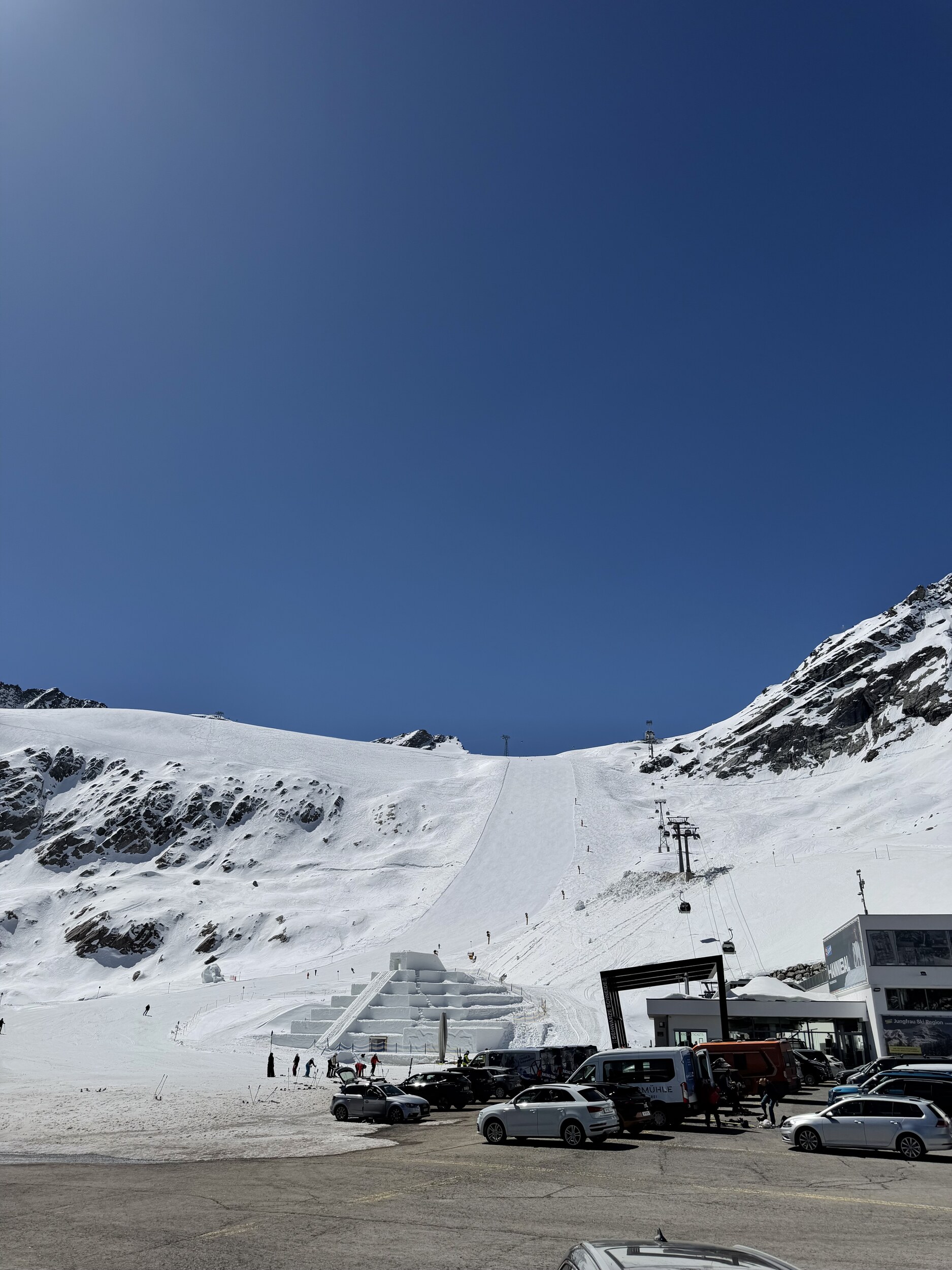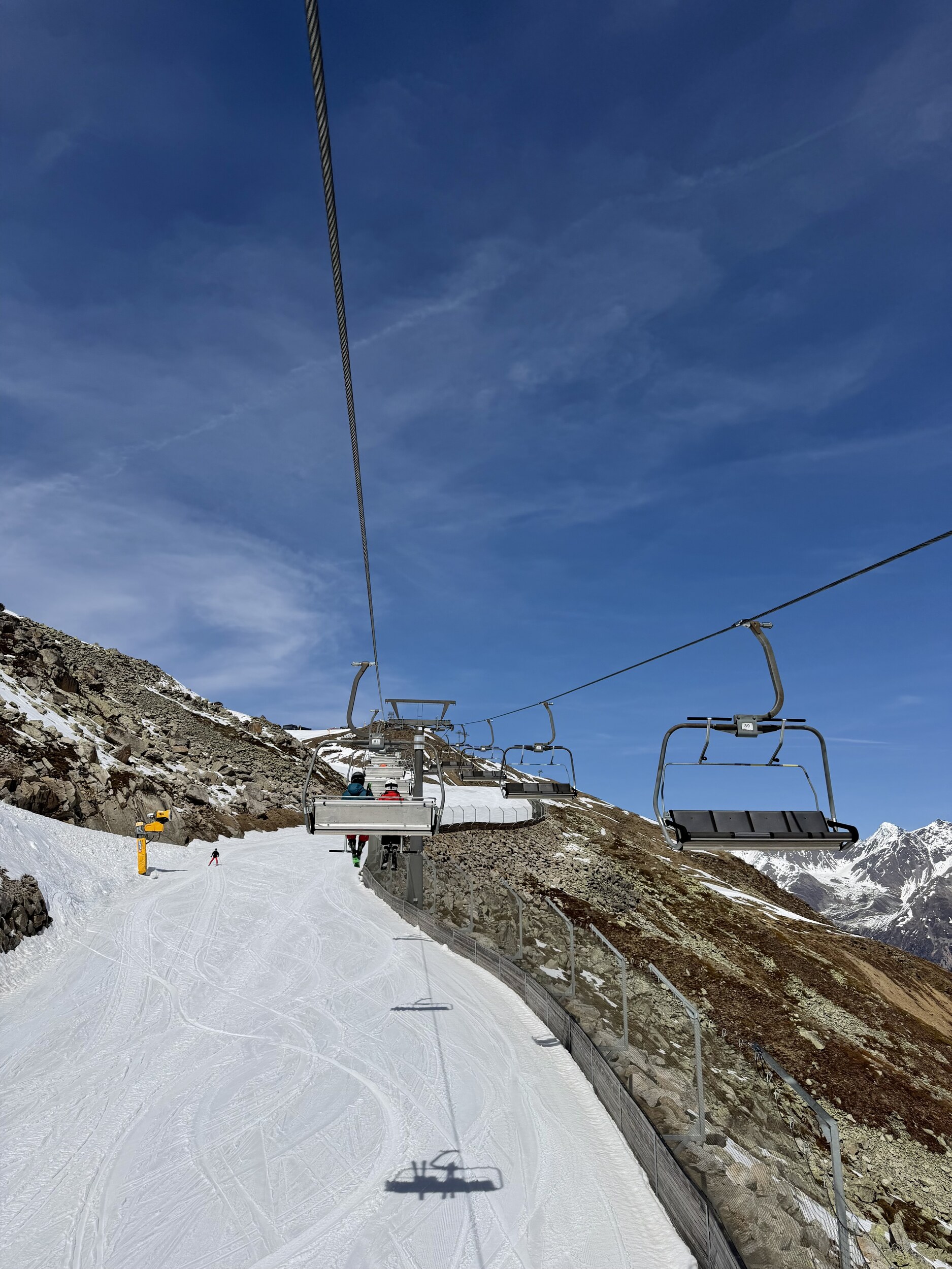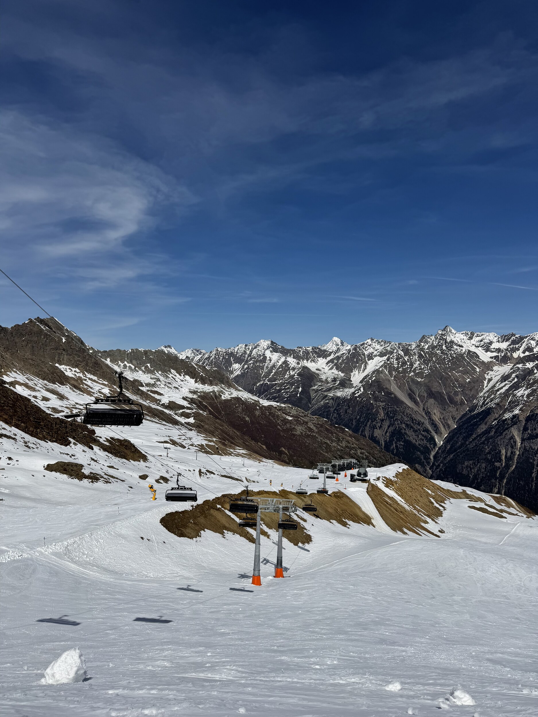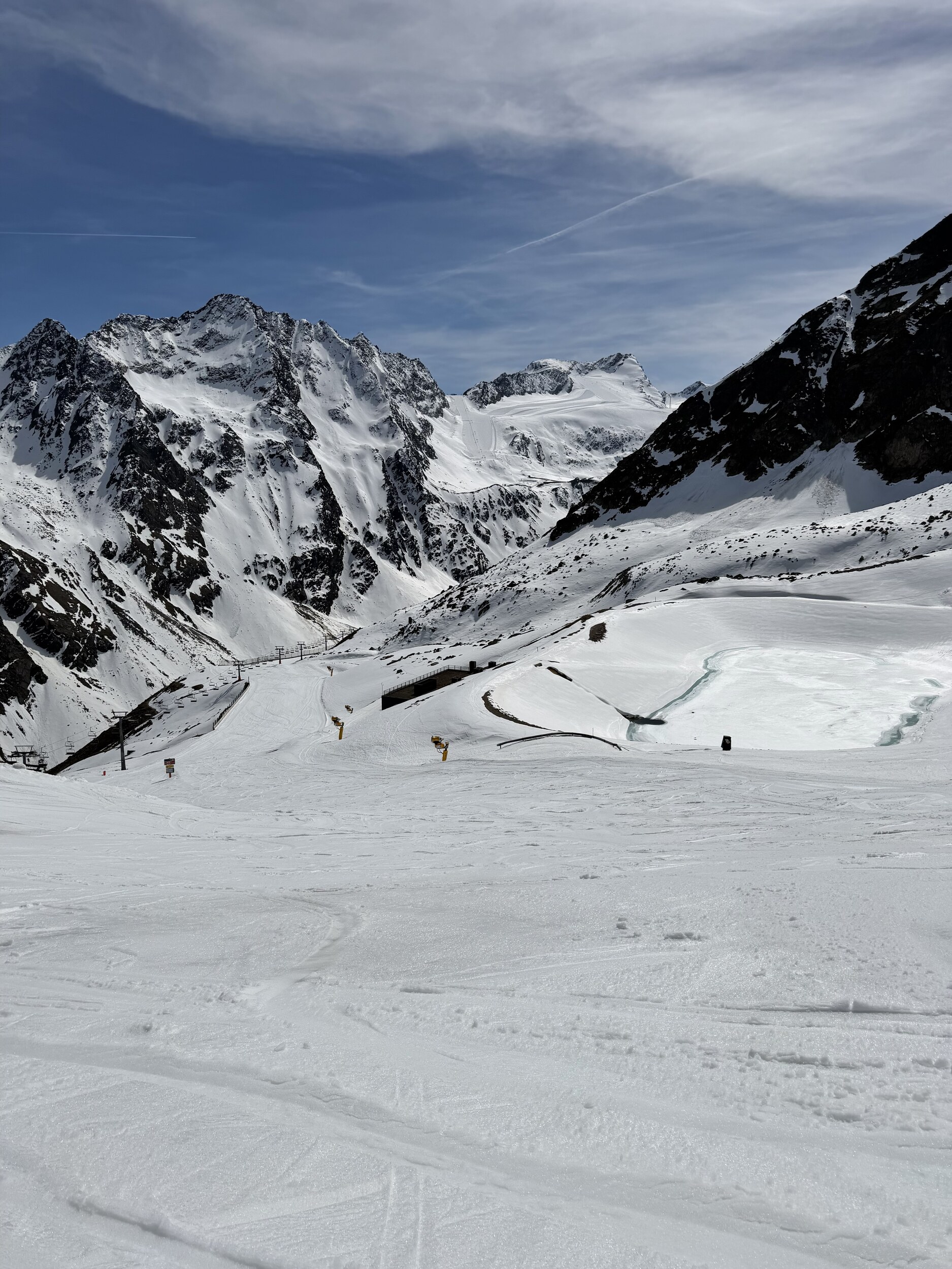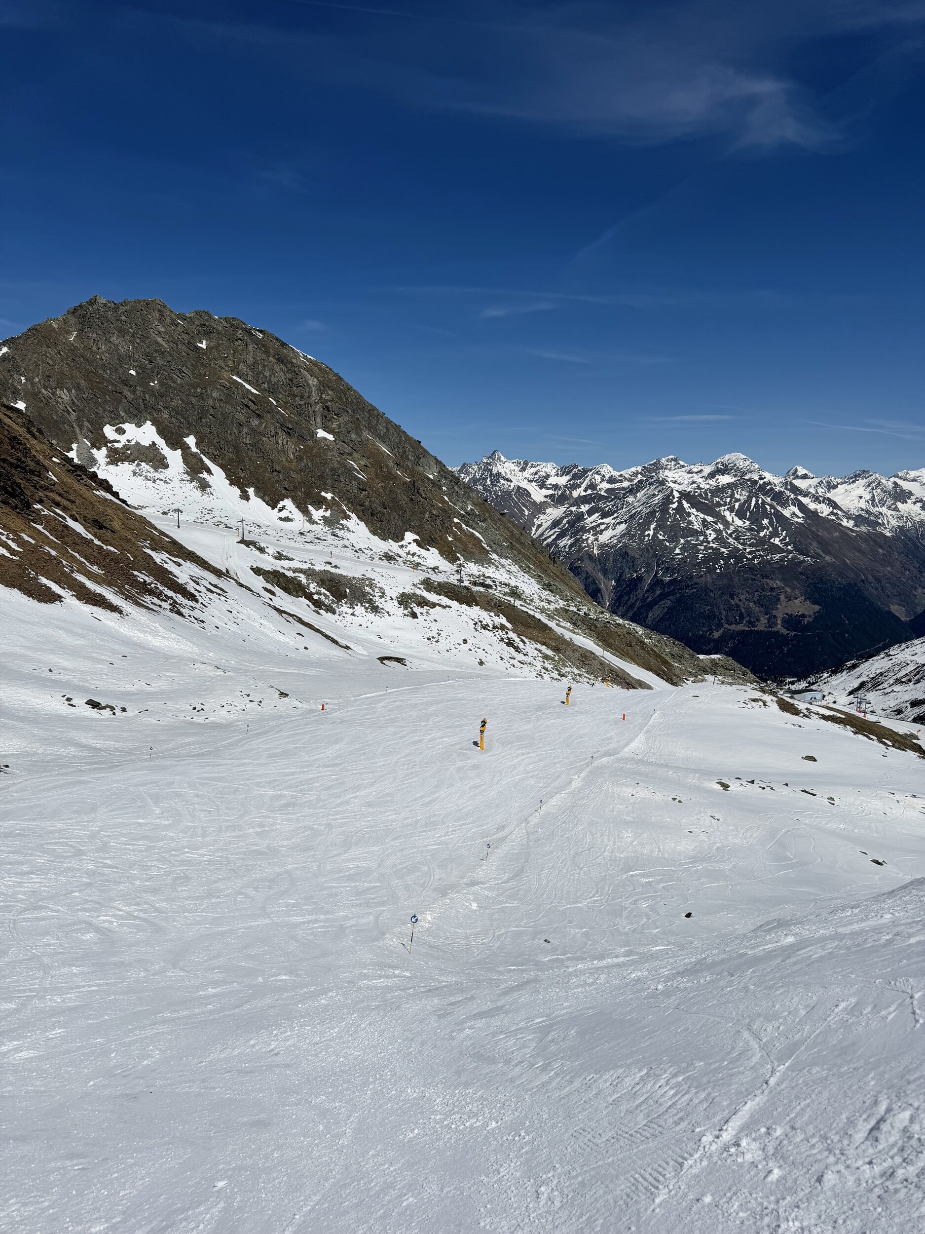 Insgesamt ein beeindruckendes Gebiet, mit top Infrastruktur. Für meinen Geschmack allerdings zu sehr auf Massen-ski-Tourismus ausgerichtet. Ich will mir nicht vorstellen wie es dort während der Hochsaison zu- und her geht, z.B. in den z.T. riesigen Restaurants und auf den Hauptpisten, die von den vielen Sesselliften bedient werden. Für die Osterzeit aber sicher ein top Ort, mit wohl besseren Konditionen als andernorts, da man ja mehrere 3000er "erklimmen" und befahren kann!
