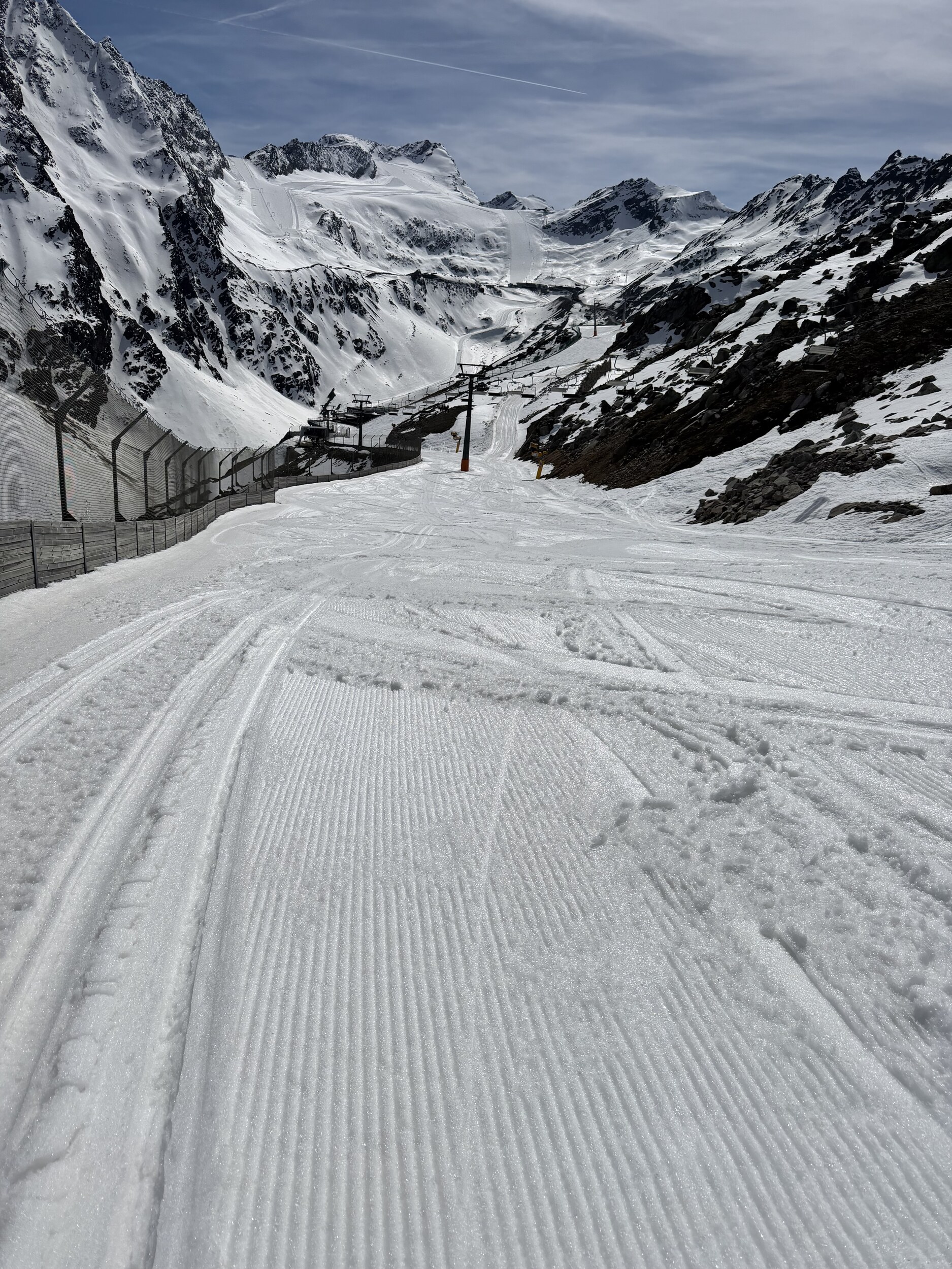 Auch scheinen sie schon Pistenbullyfahrer in den Sommer geschickt zu haben oder Diesel sparen zu wollen, viele Pisten sind am Rand nicht präpariert: Zudem einige Varianten ja eh dicht schon wie Steilhang Wasserkar was ich aber noch verstehe. Bei den offenen Pisten birgt es aber das Risiko auf einmal im unpraparierten zu landen.