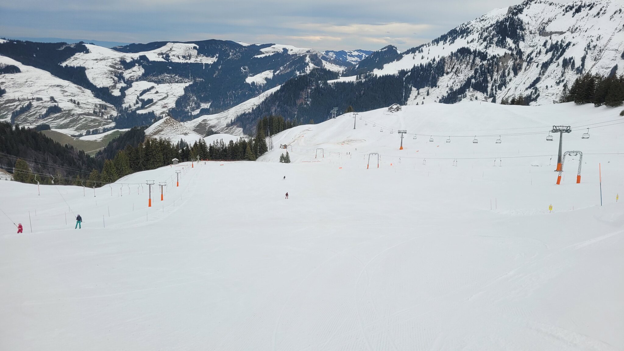 Seit einigen Tagen ist der neue Moléson-Sessellift (endlich) für Skifahrer geöffnet (vorher wegen Schneemangels nur für Fußgänger). Auf dem Moléson sind also alle Pisten außer der schwarzen des Funiculars geöffnet.