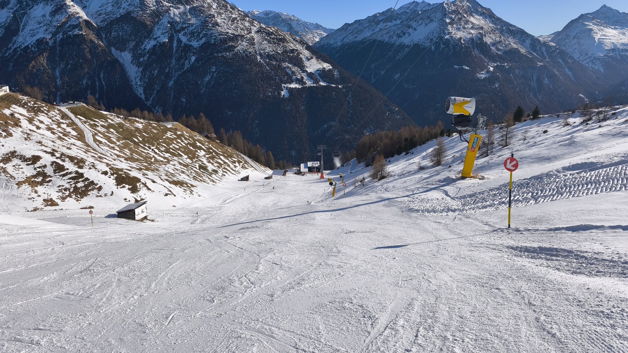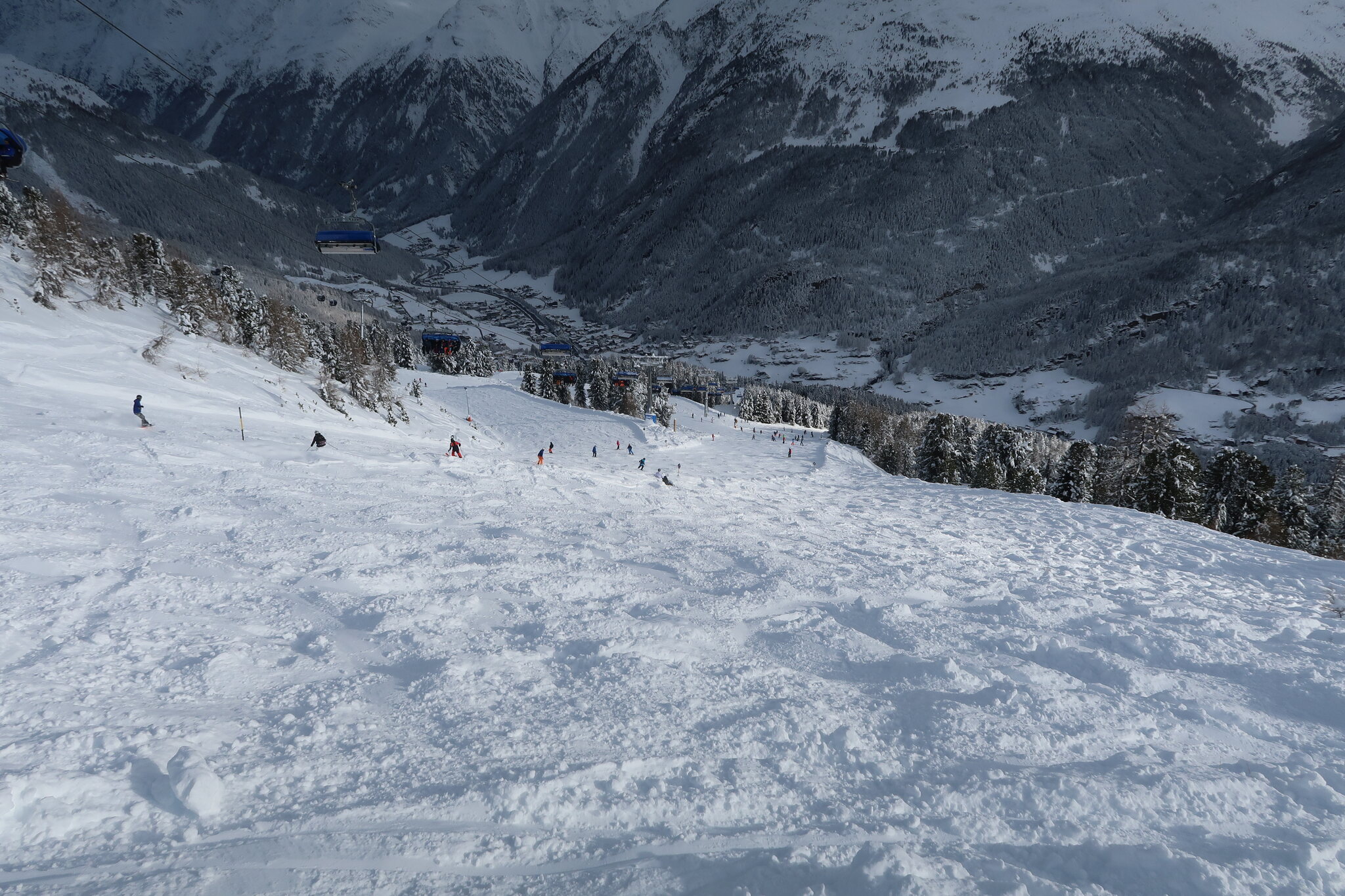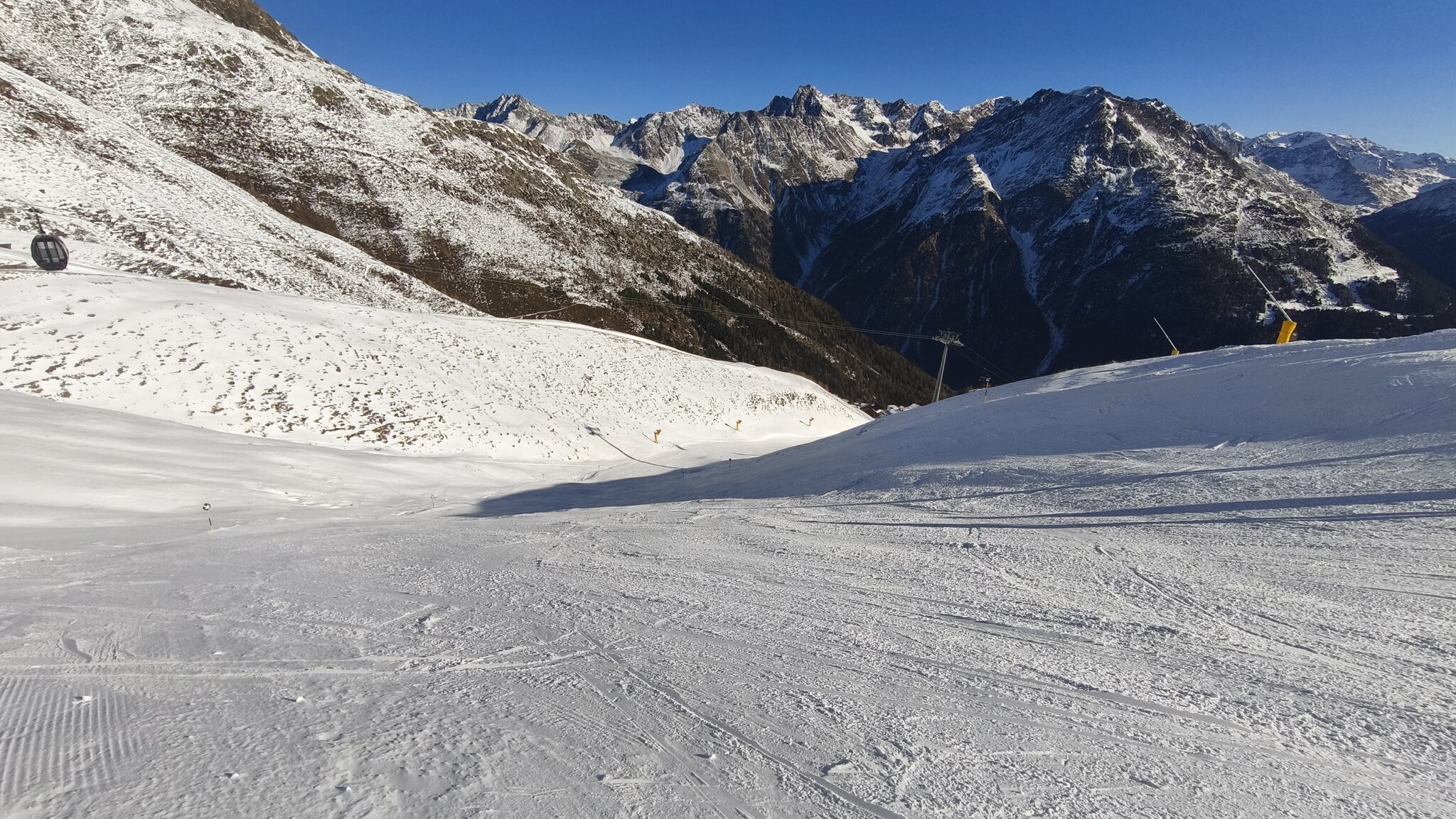 Leider sind schon noch nicht allzu viele Pisten offen. Aber die, die offen sind, sind sehr gut. Namentlich auch die einzige offene Talabfahrt, die schwarze 7.