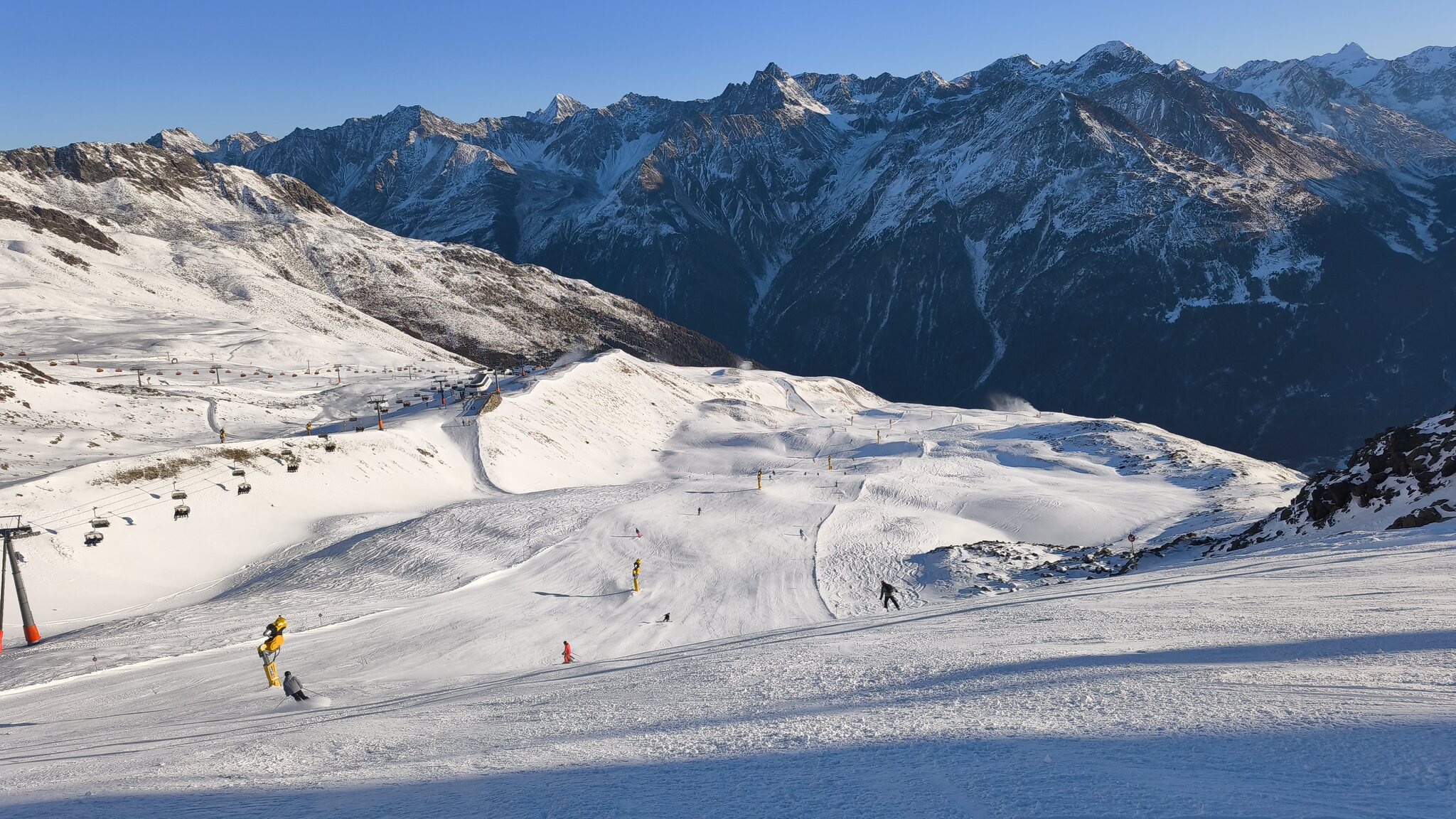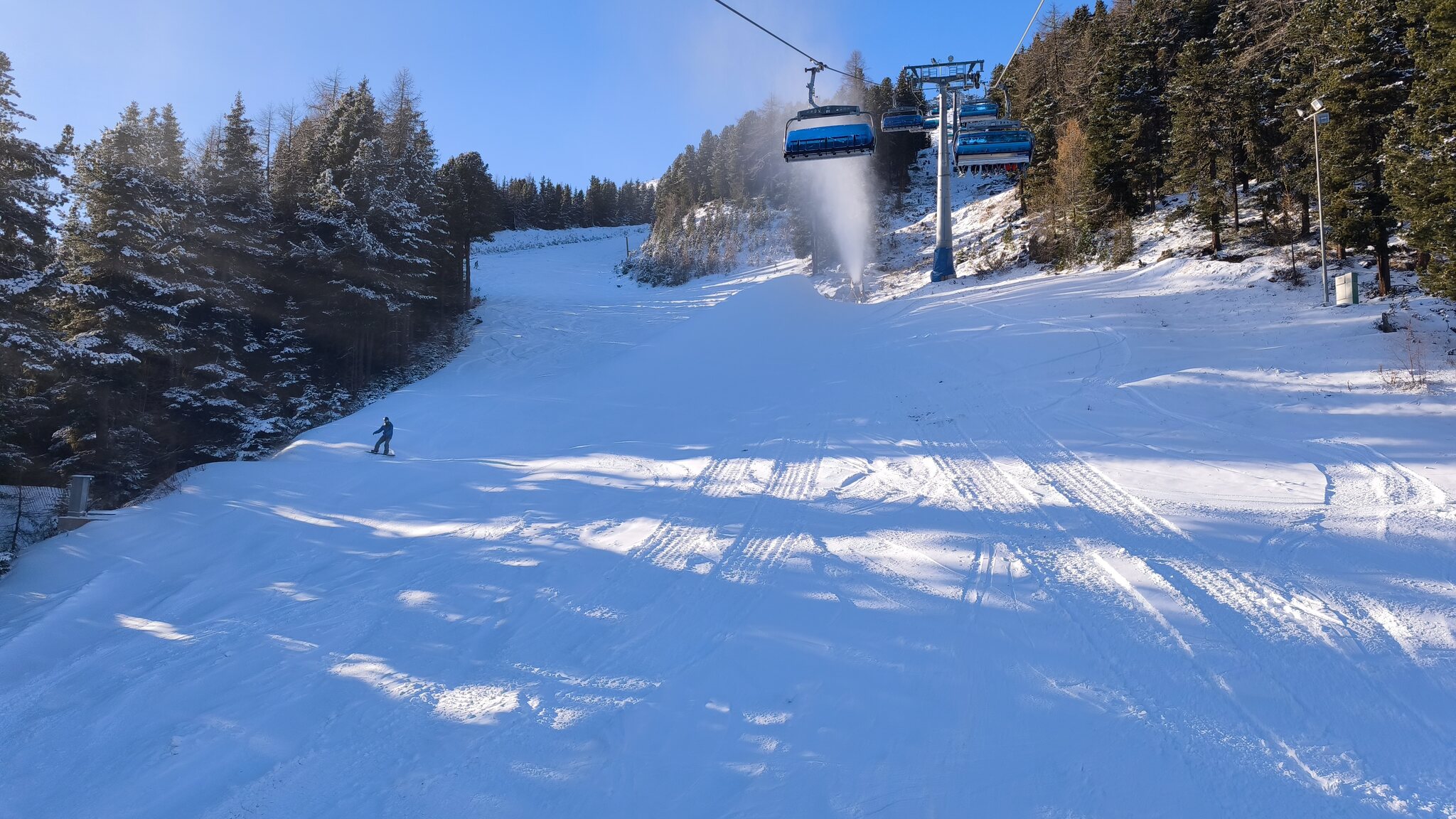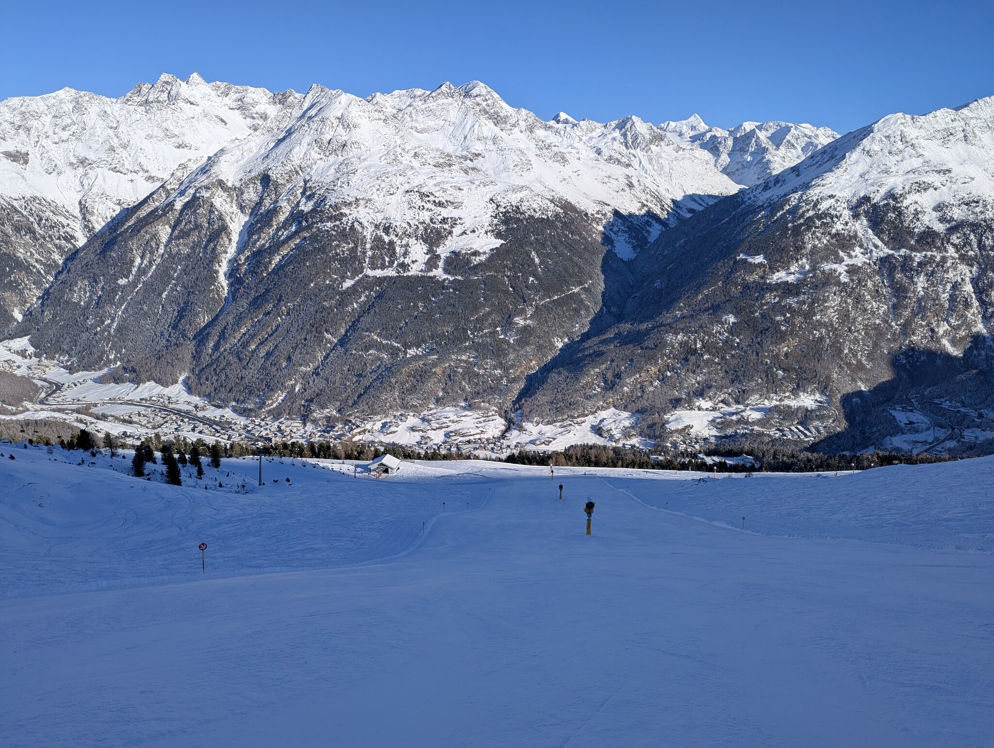 Leider sind schon noch nicht allzu viele Pisten offen. Aber die, die offen sind, sind sehr gut. Namentlich auch die einzige offene Talabfahrt, die schwarze 7.