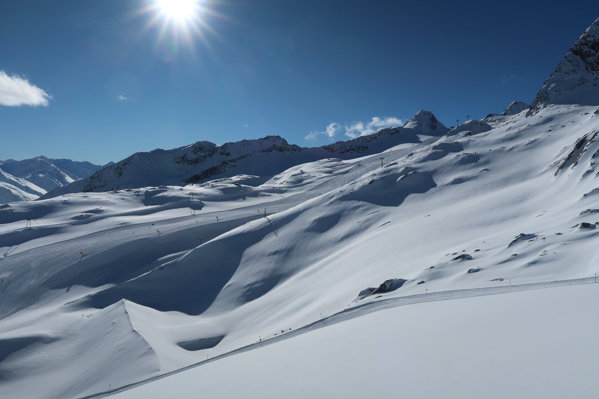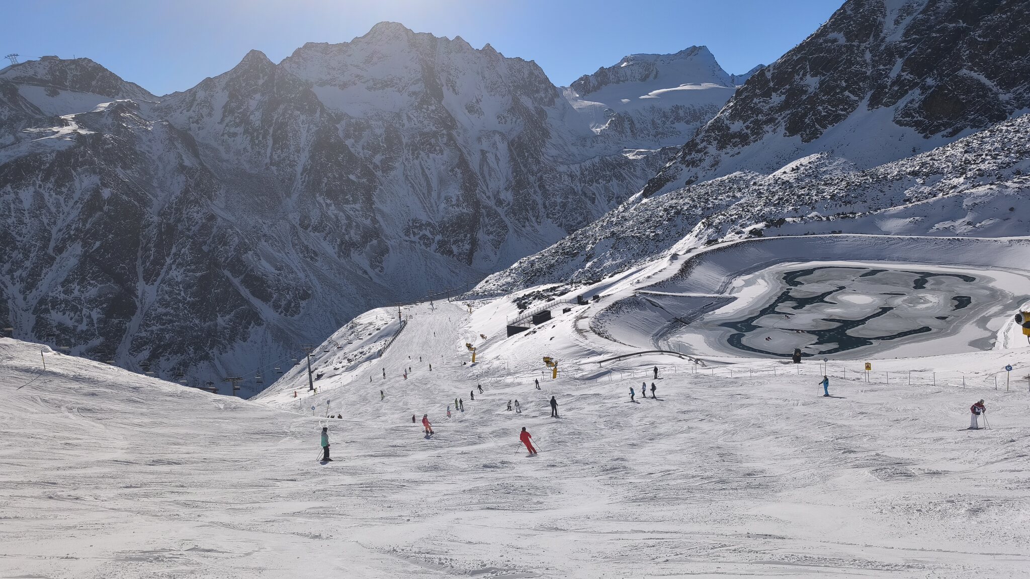 Traumwetter, keine Wolke, Minusgrade, guter griffiger Schnee. Am Giggijoch Pisten noch etwas unruhig, am Gletscher besonders die Weltcuppiste, Seiterjöchl und die Schwarze vom Rettenbach zum Tiefenbach genial.