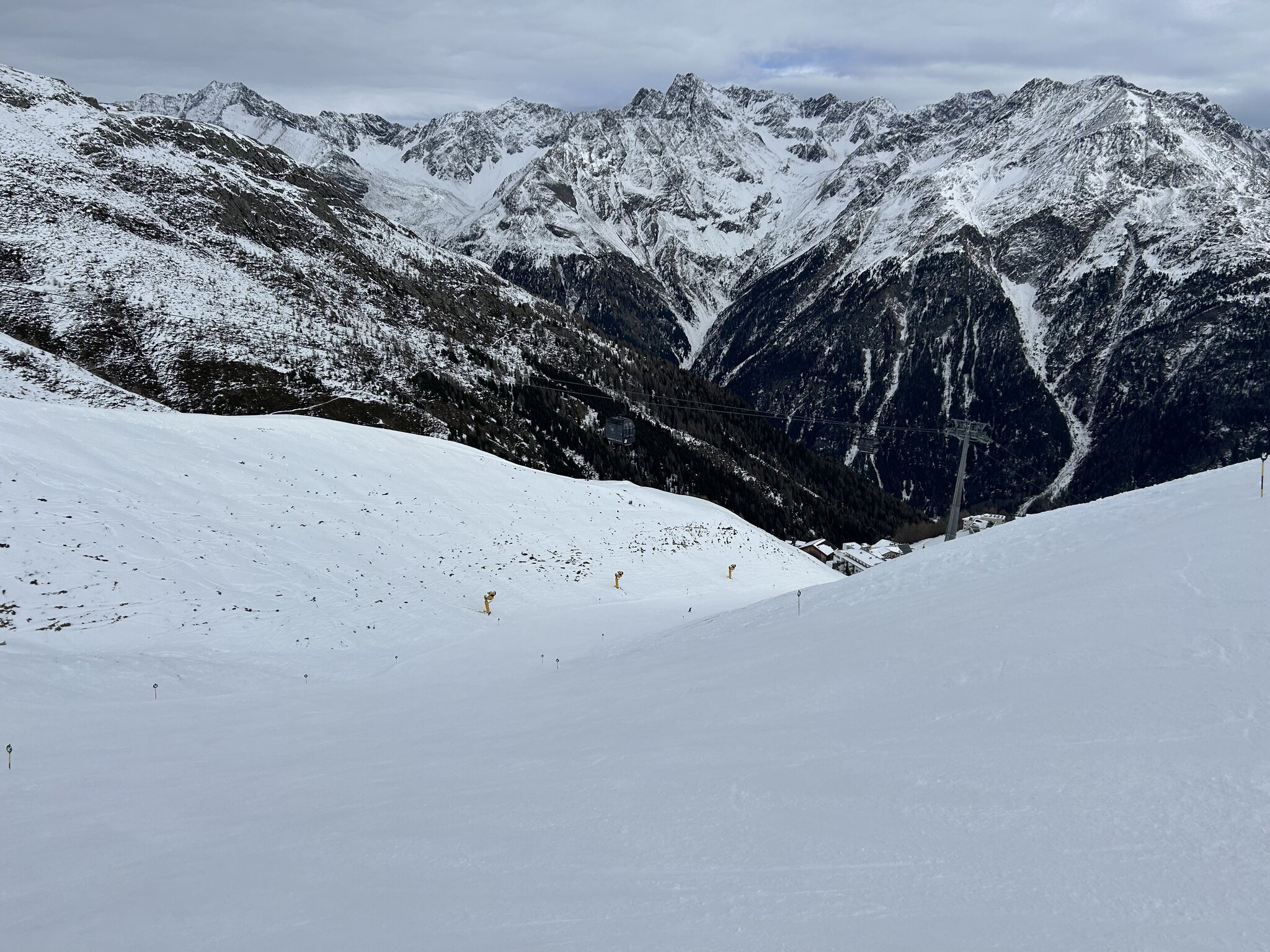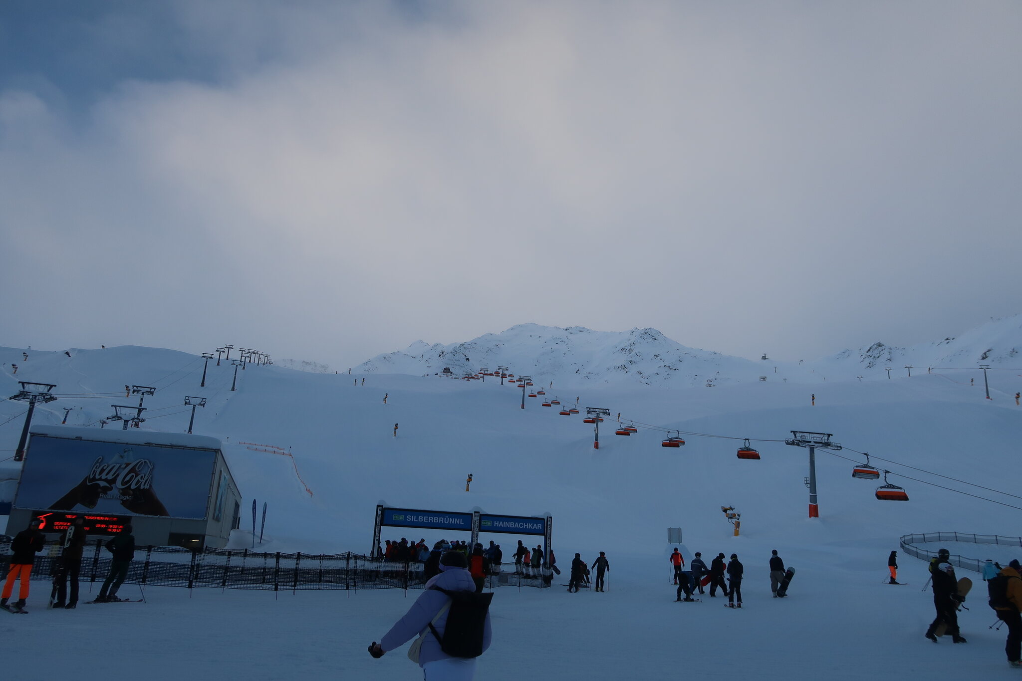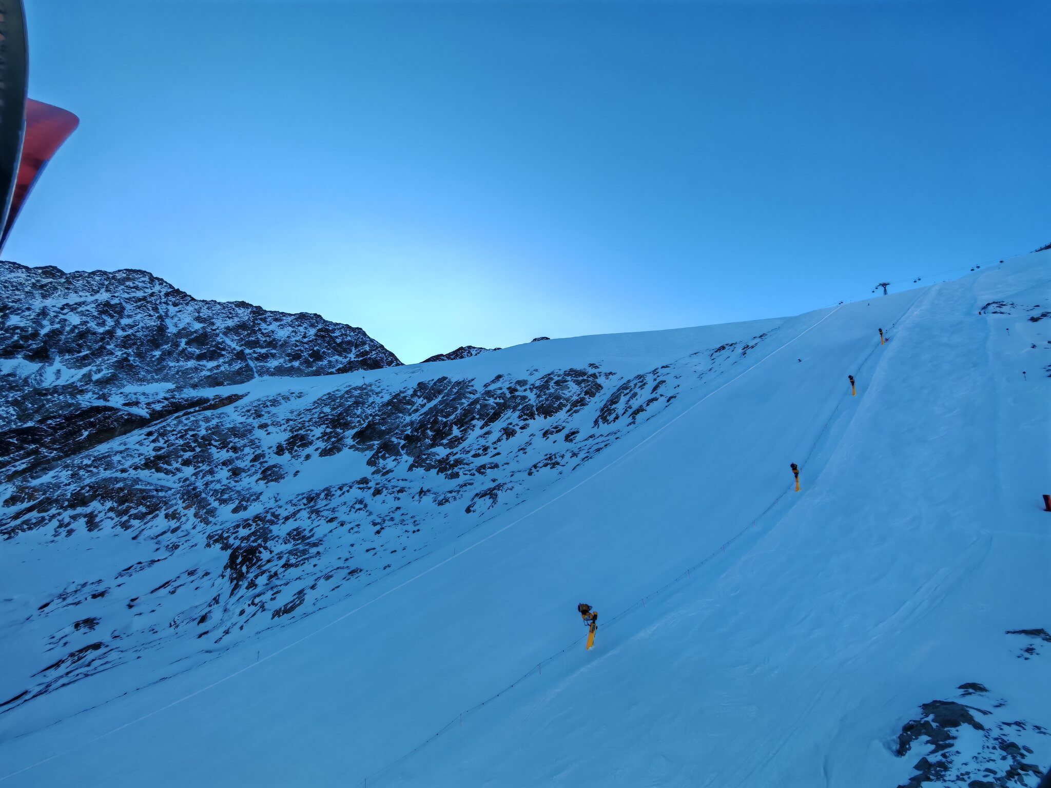 Leute akzeptabel bis wenig, meist direkt durchgehen, nun mal ein paar Gondeln warten am Gletscher weil alle nun dahin pilgern. Drum fahr ich nun gleich nach einem letzten mal Weltcuphang in Richtung Talabfahrt und Gaislach.