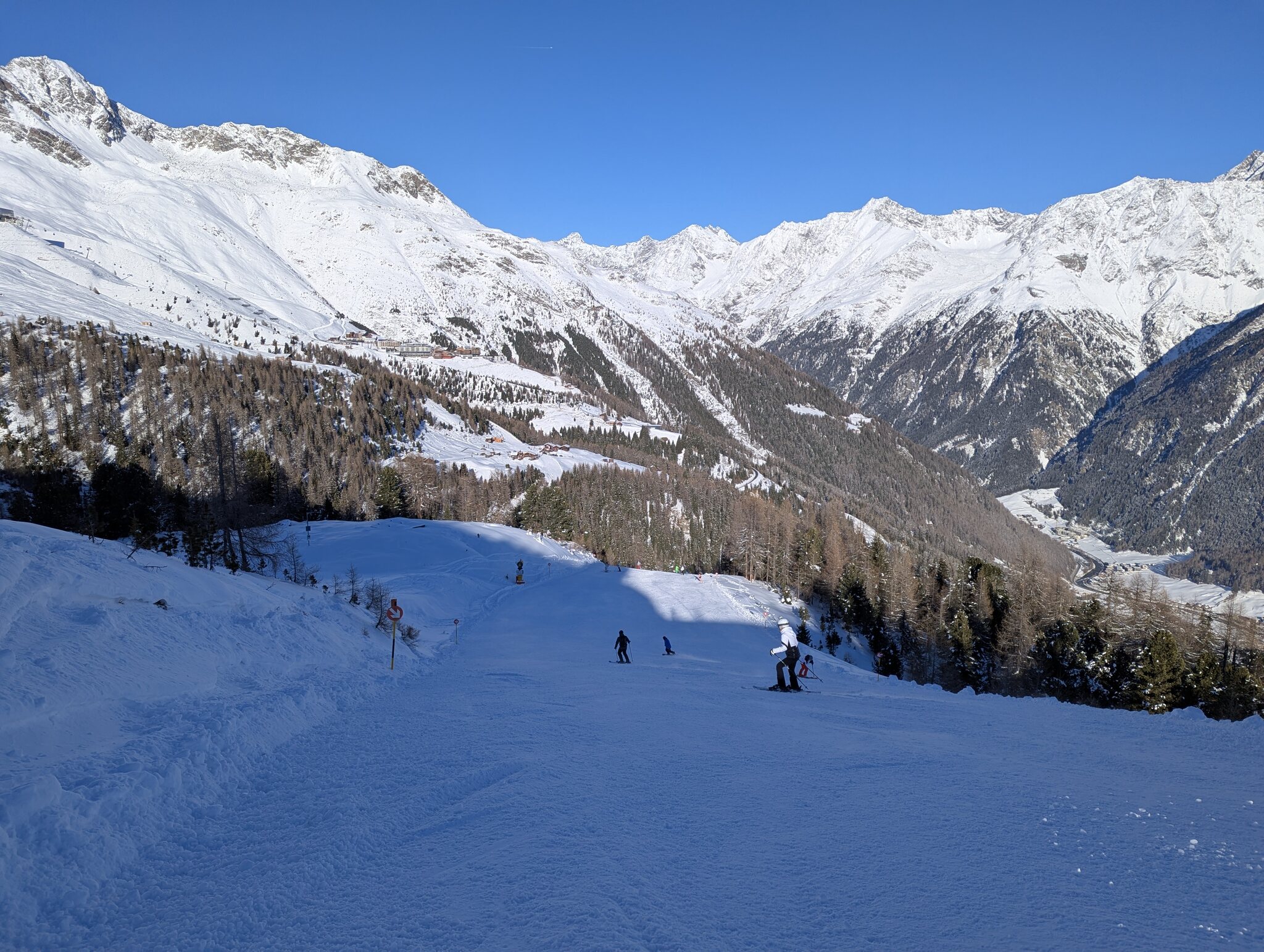 Die Pisten waren morgens alle im Top-Zustand schön griffig hart und kaum eisig. Nur die schwarze Talabfahrt am Gaislachkogel war oben knollig.