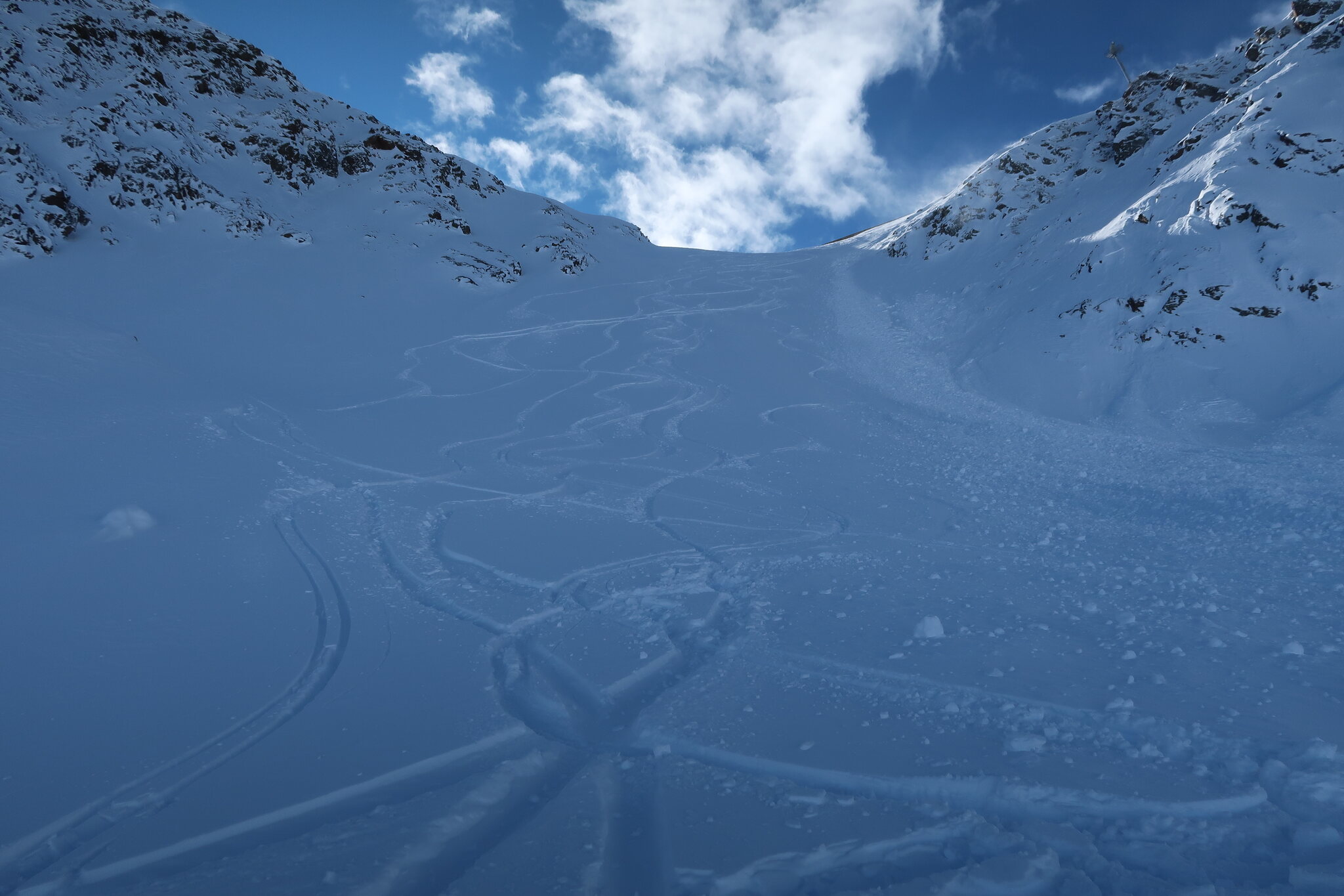 Am Giggijoch die schwarze Talabfahrt sehr gut, die rote hat teils Steine drin! Roßkripl steilster Abschnitt sehr eisig, darunter gut.