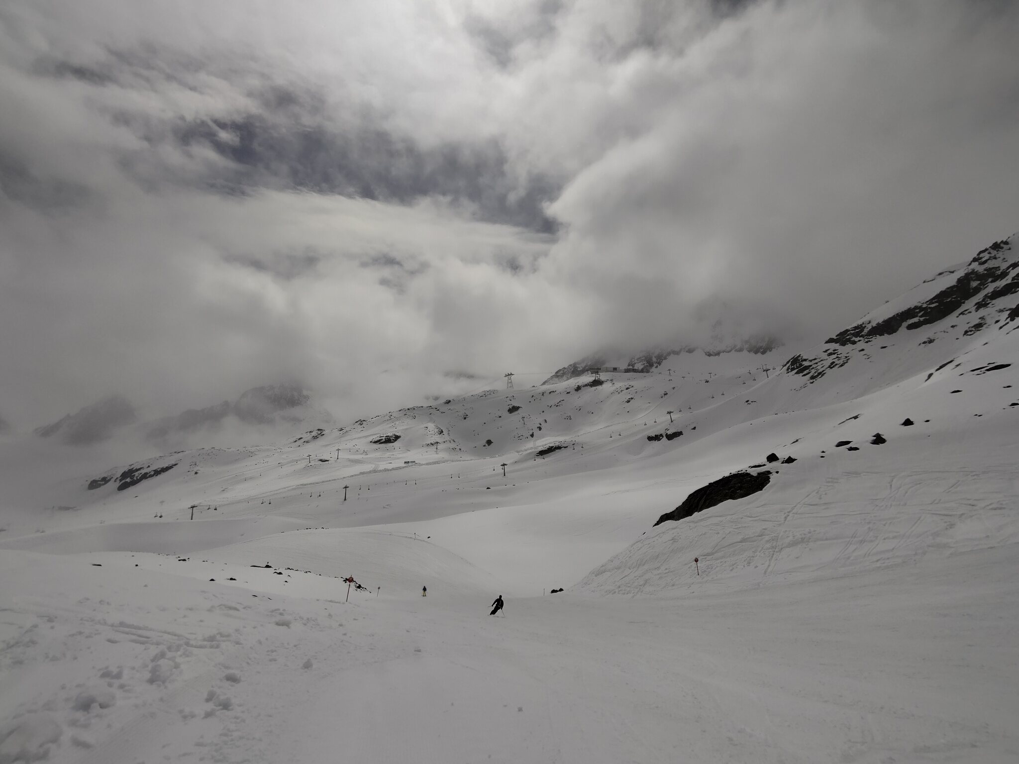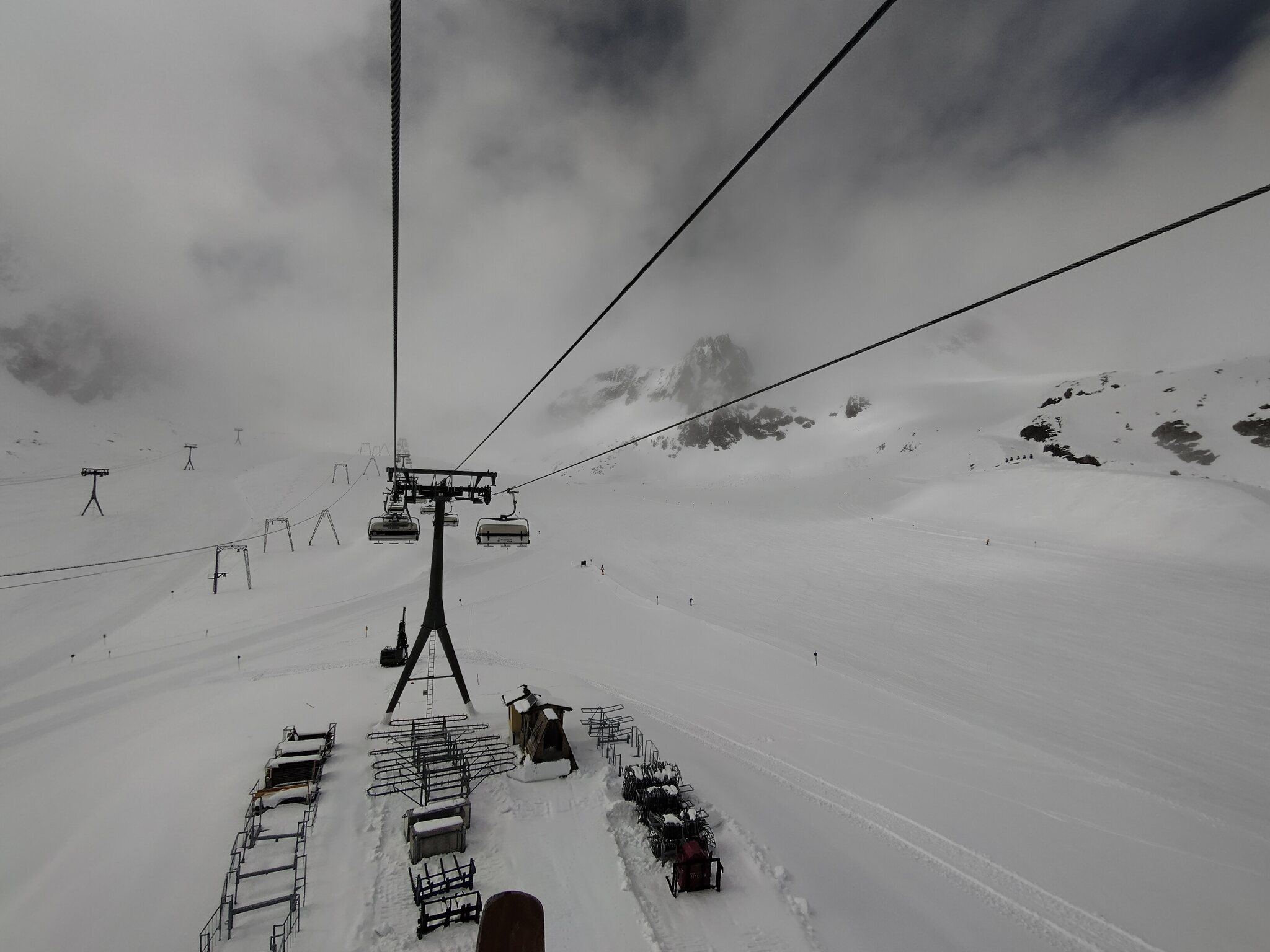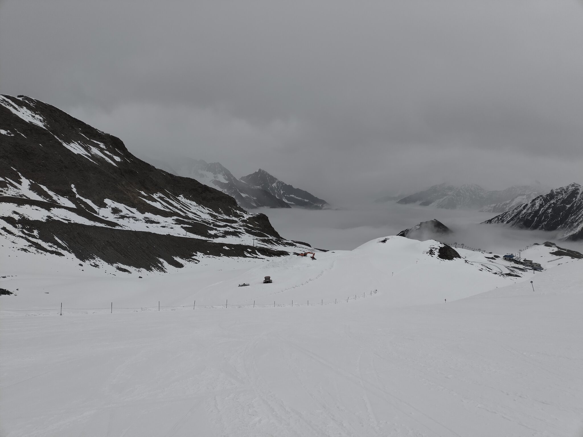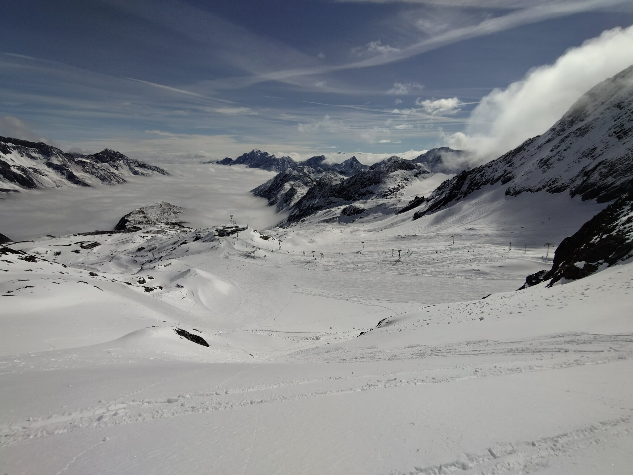 Zum Abschluss gaben die Wolken auch noch den Blick auf die Wildspitz-Talstation samt Schneedepot frei.