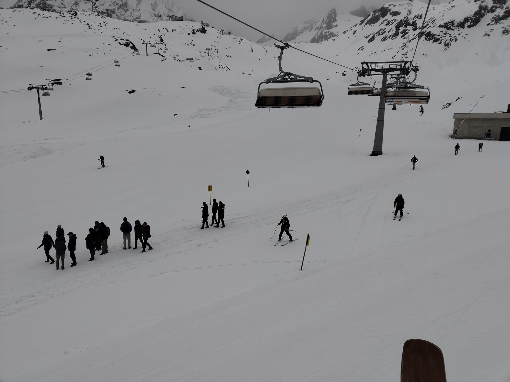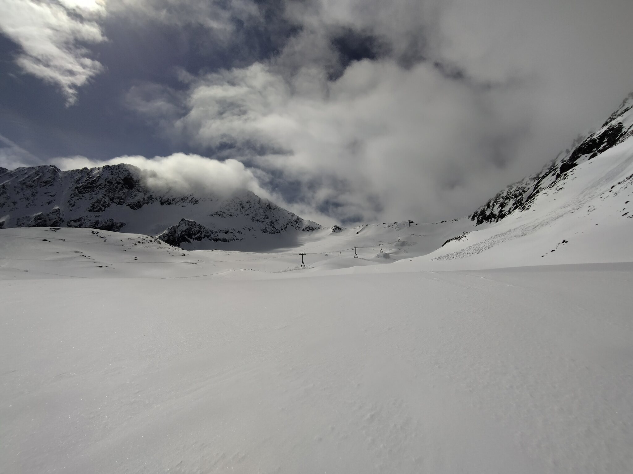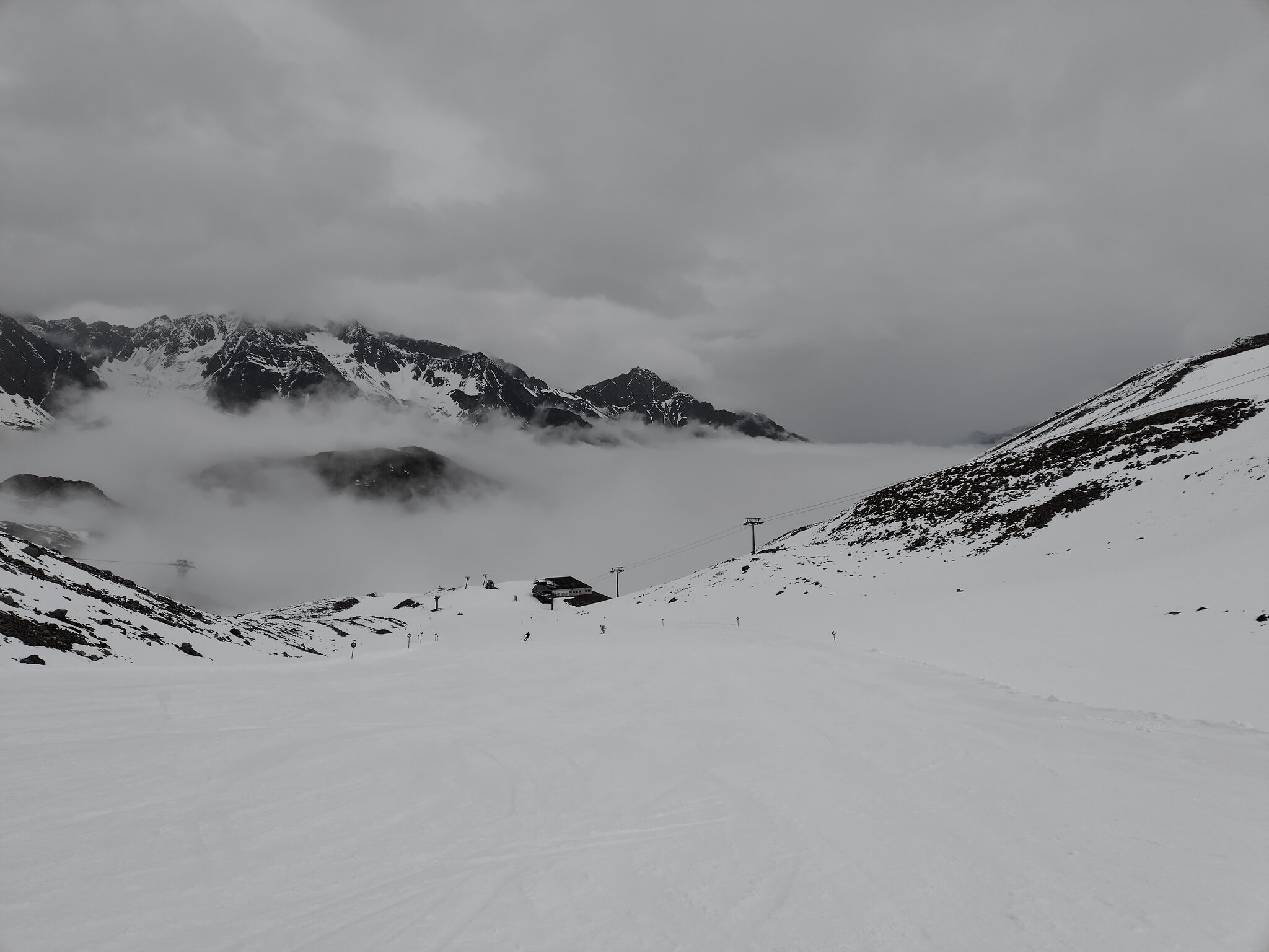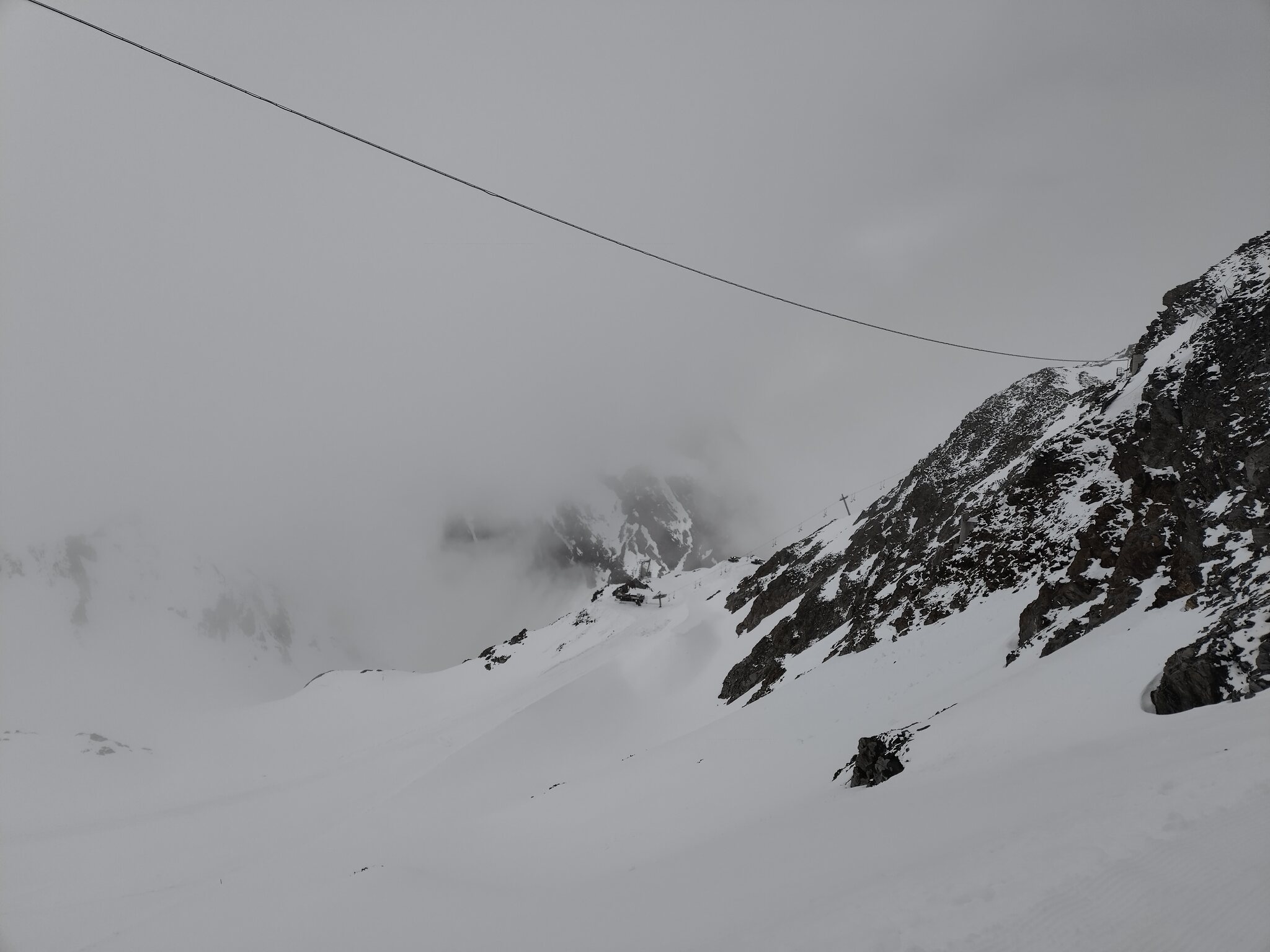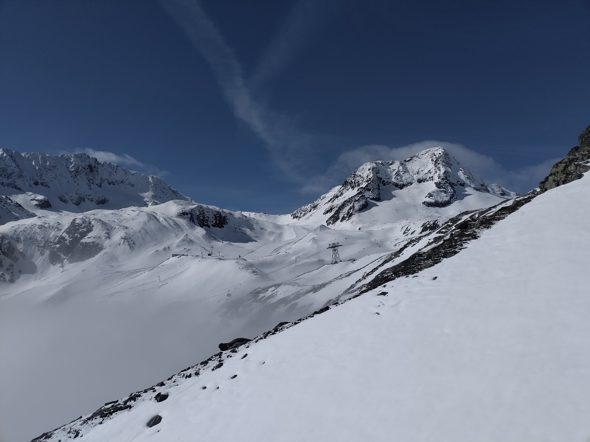 Zum Abschluss gaben die Wolken auch noch den Blick auf die Wildspitz-Talstation samt Schneedepot frei.