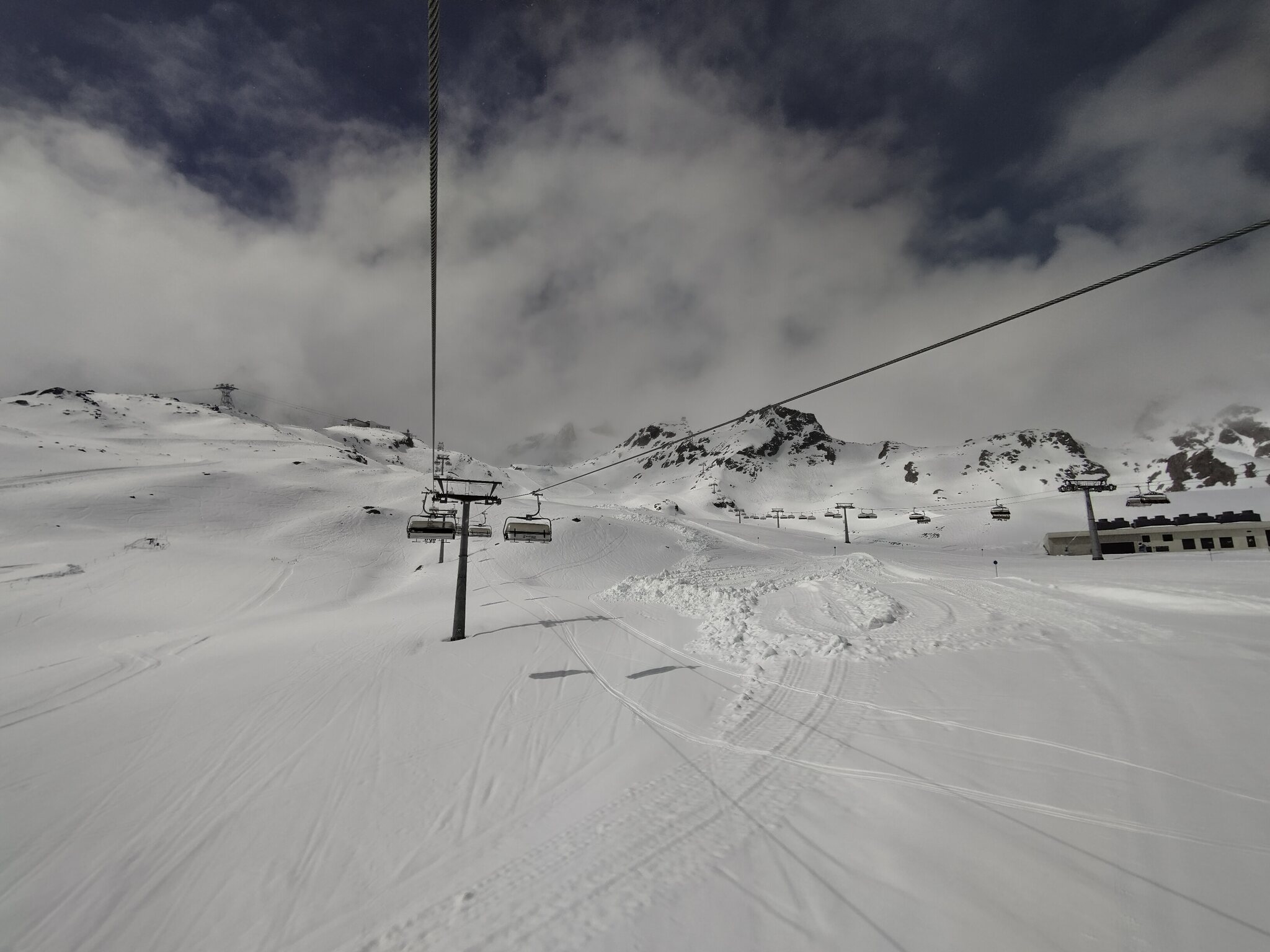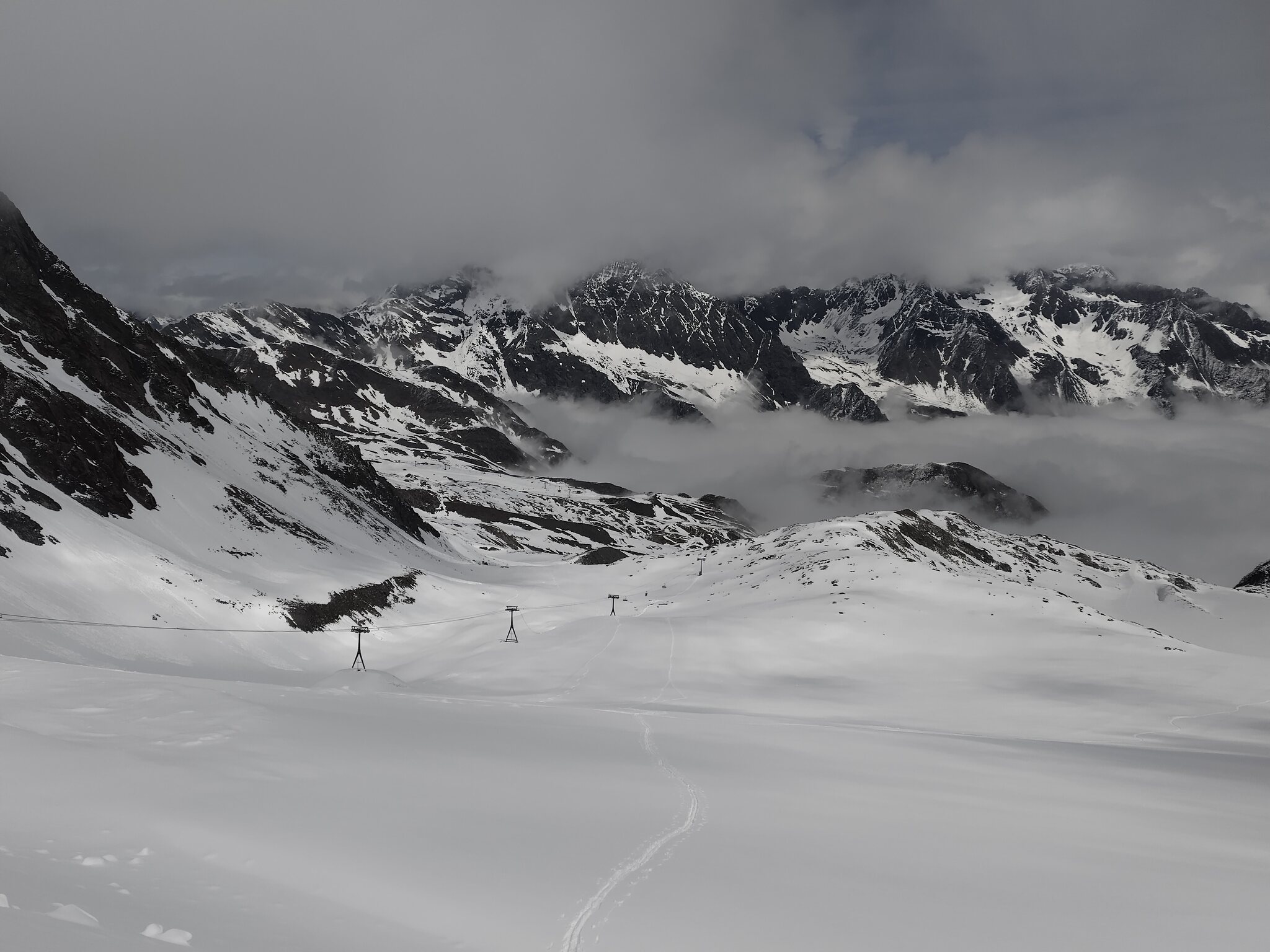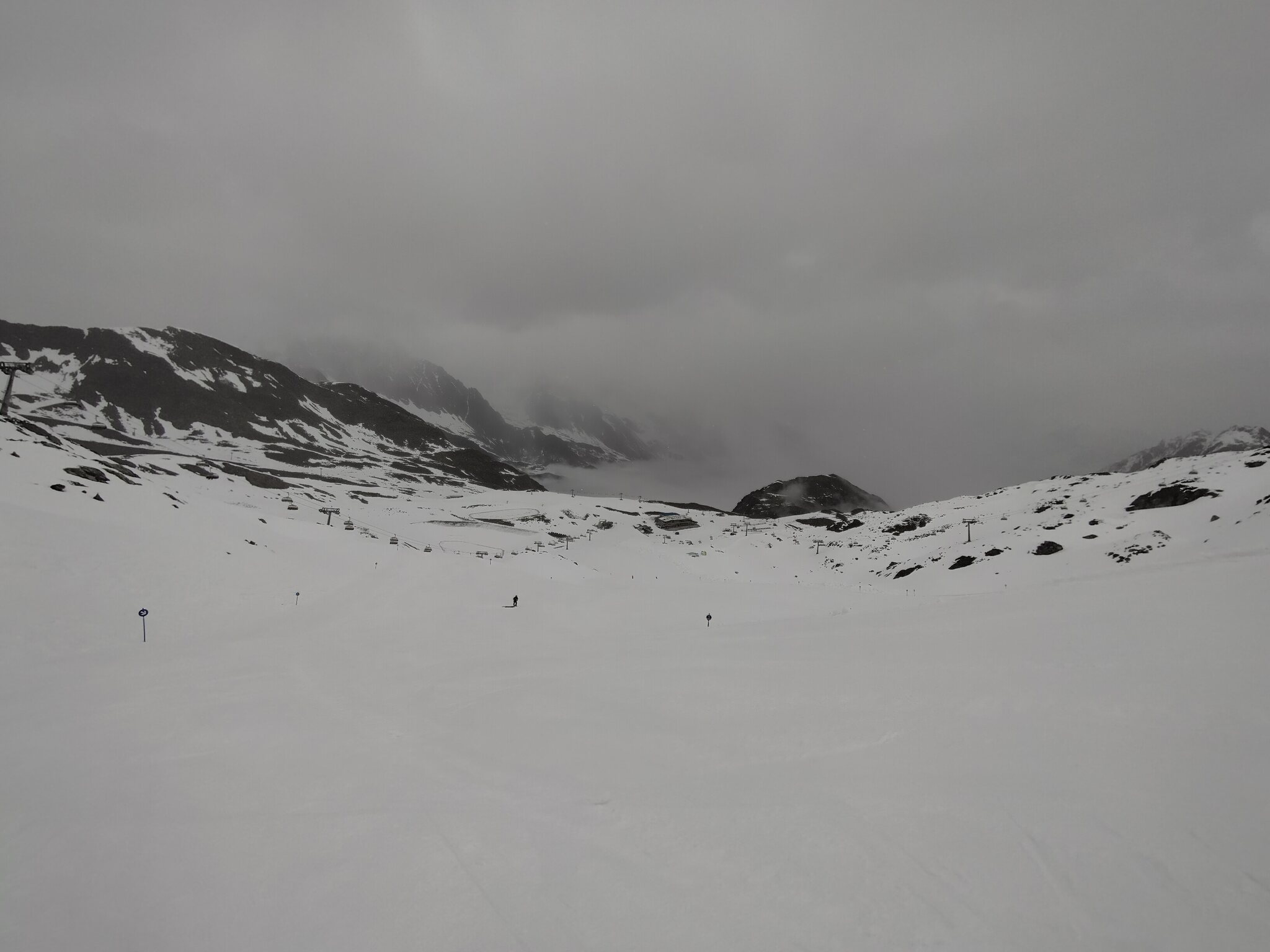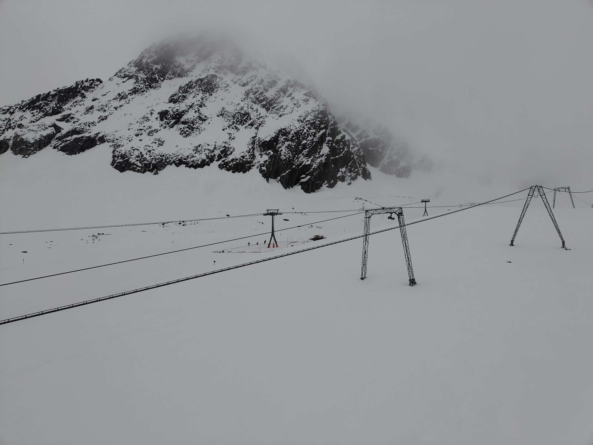 Zum Abschluss gaben die Wolken auch noch den Blick auf die Wildspitz-Talstation samt Schneedepot frei.