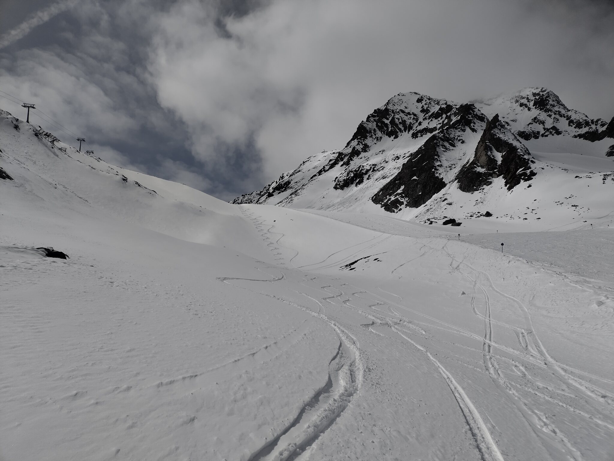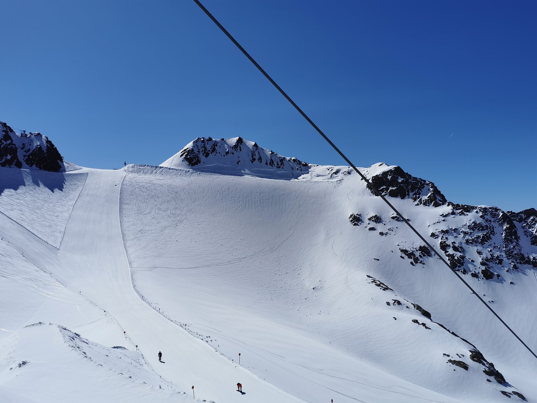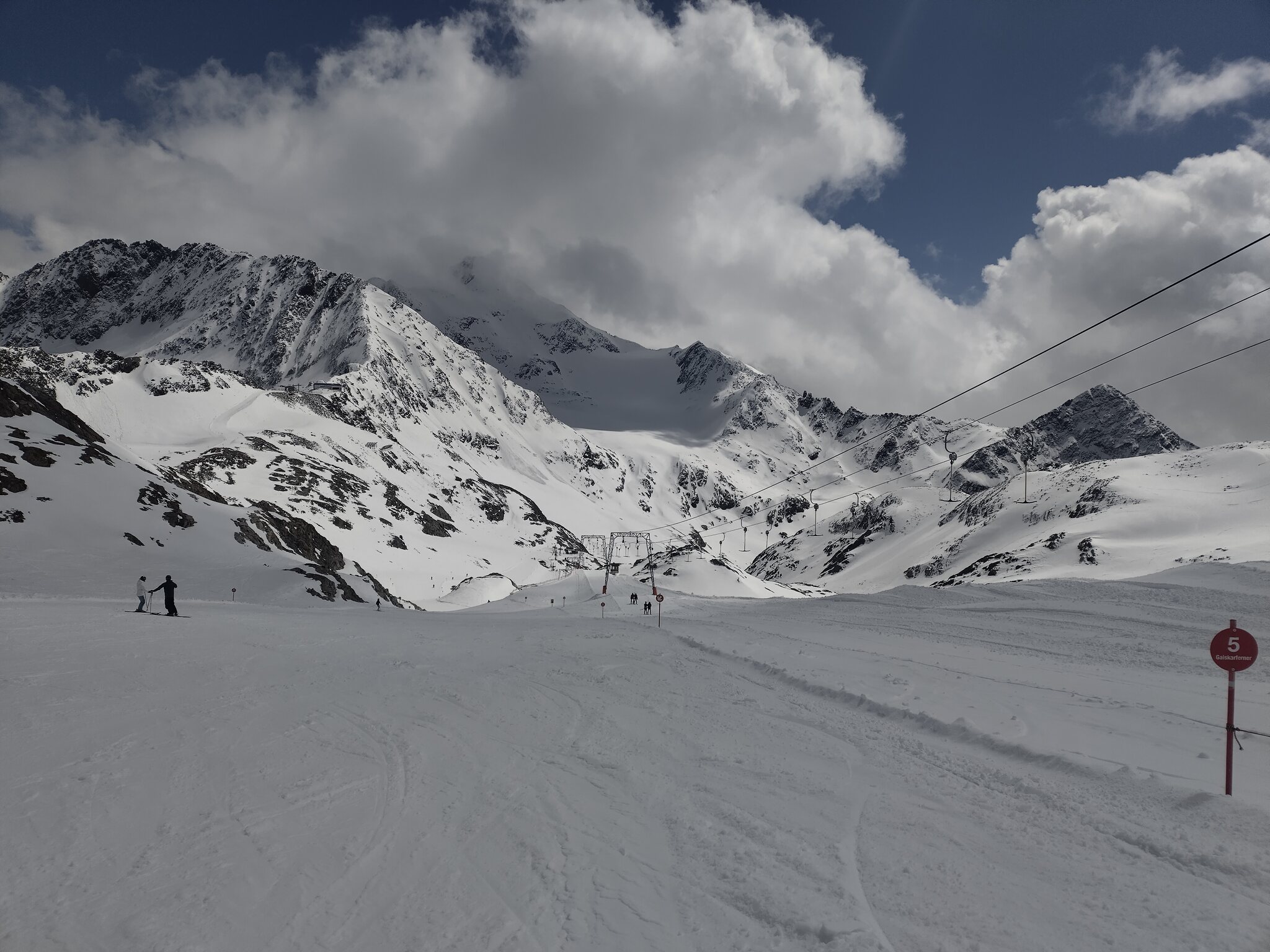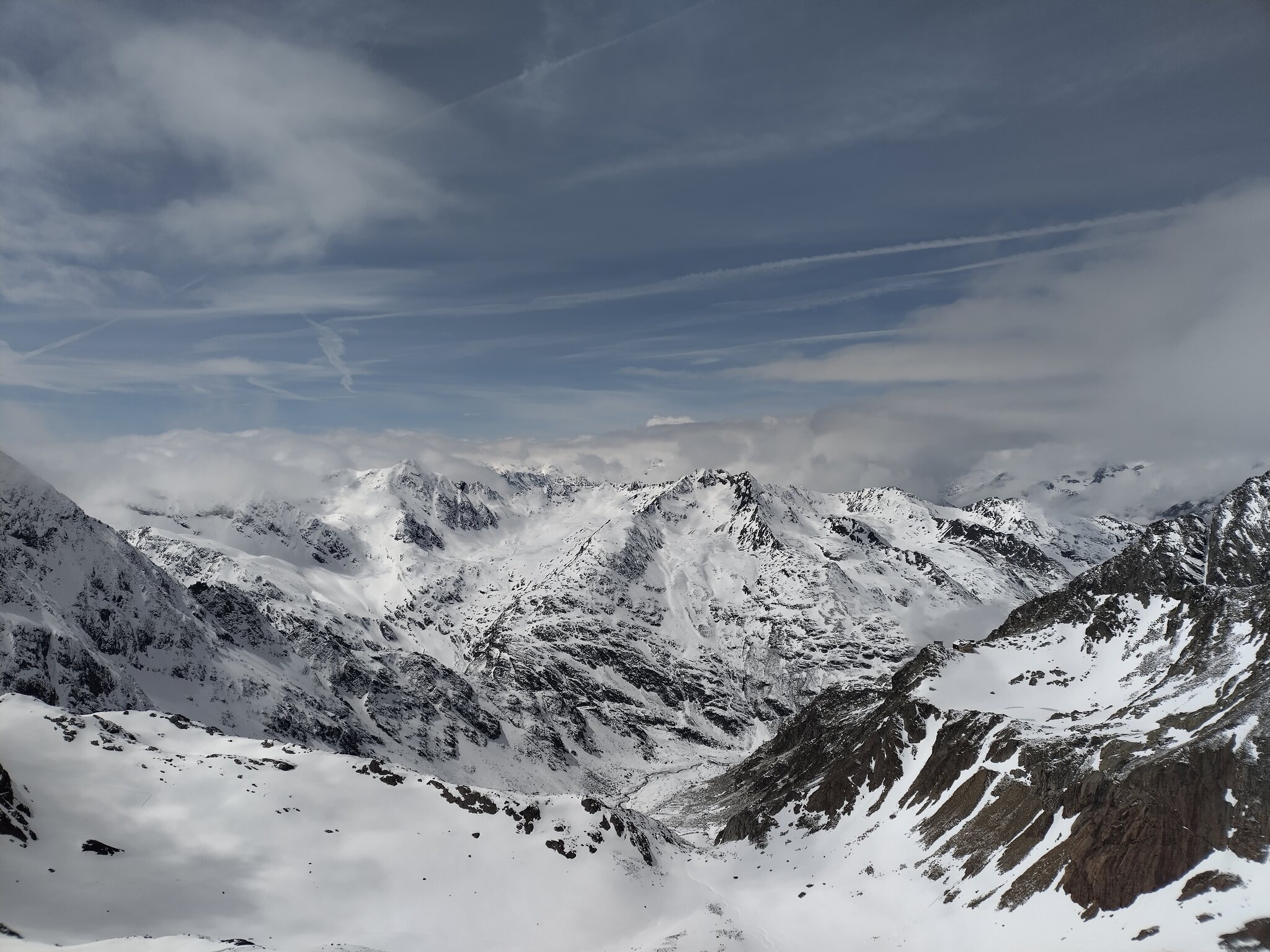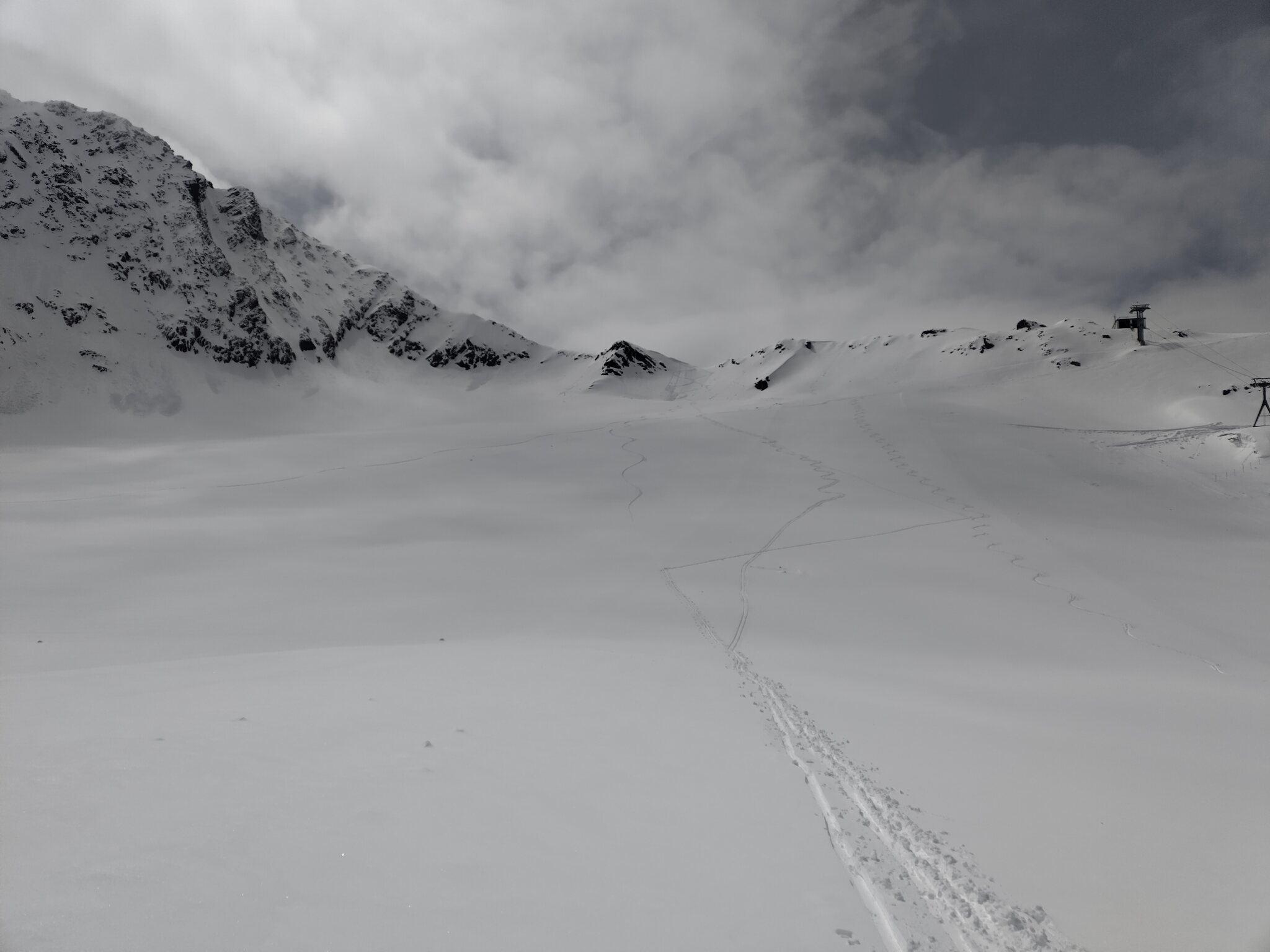 Zum Abschluss gaben die Wolken auch noch den Blick auf die Wildspitz-Talstation samt Schneedepot frei.