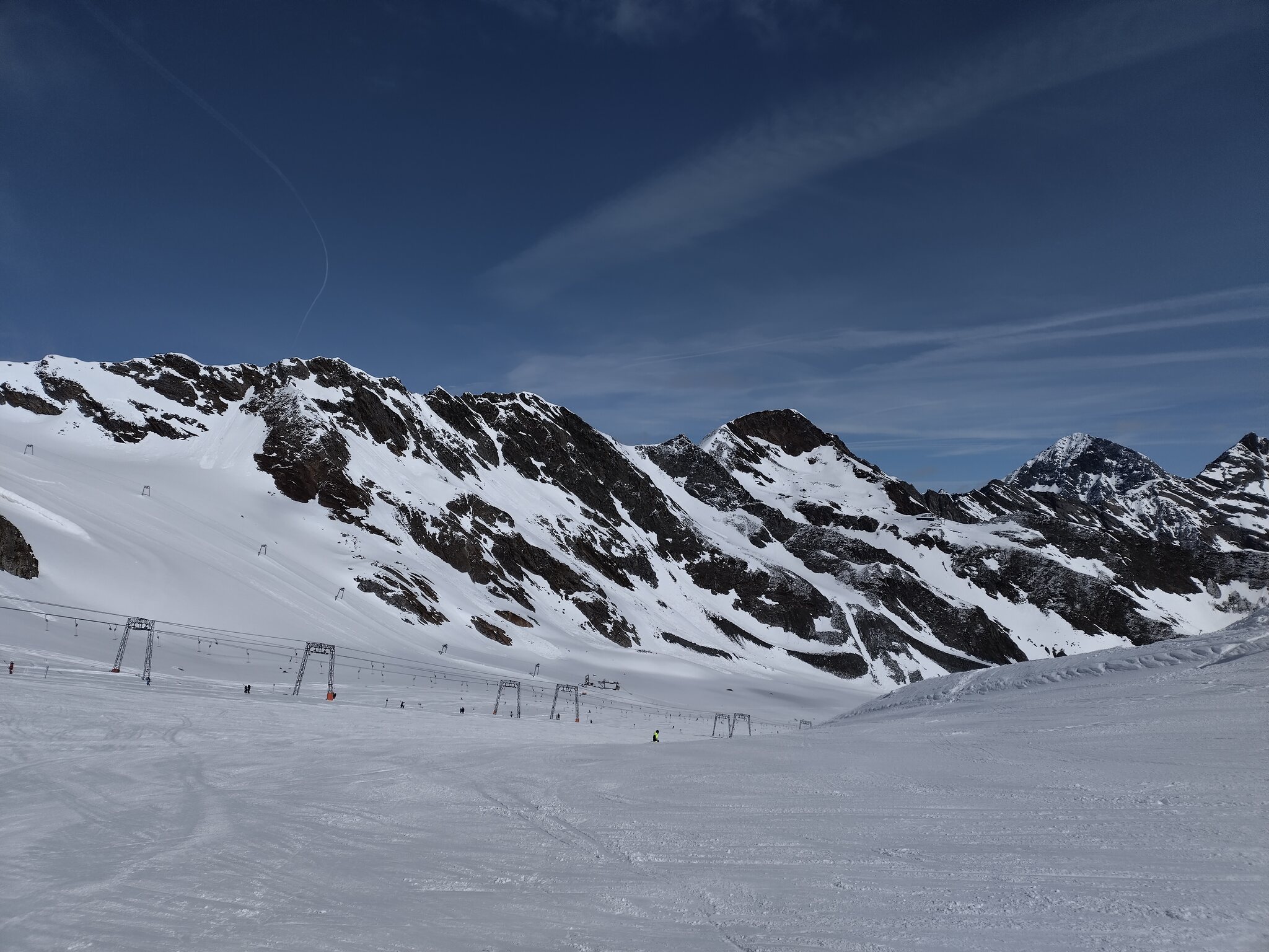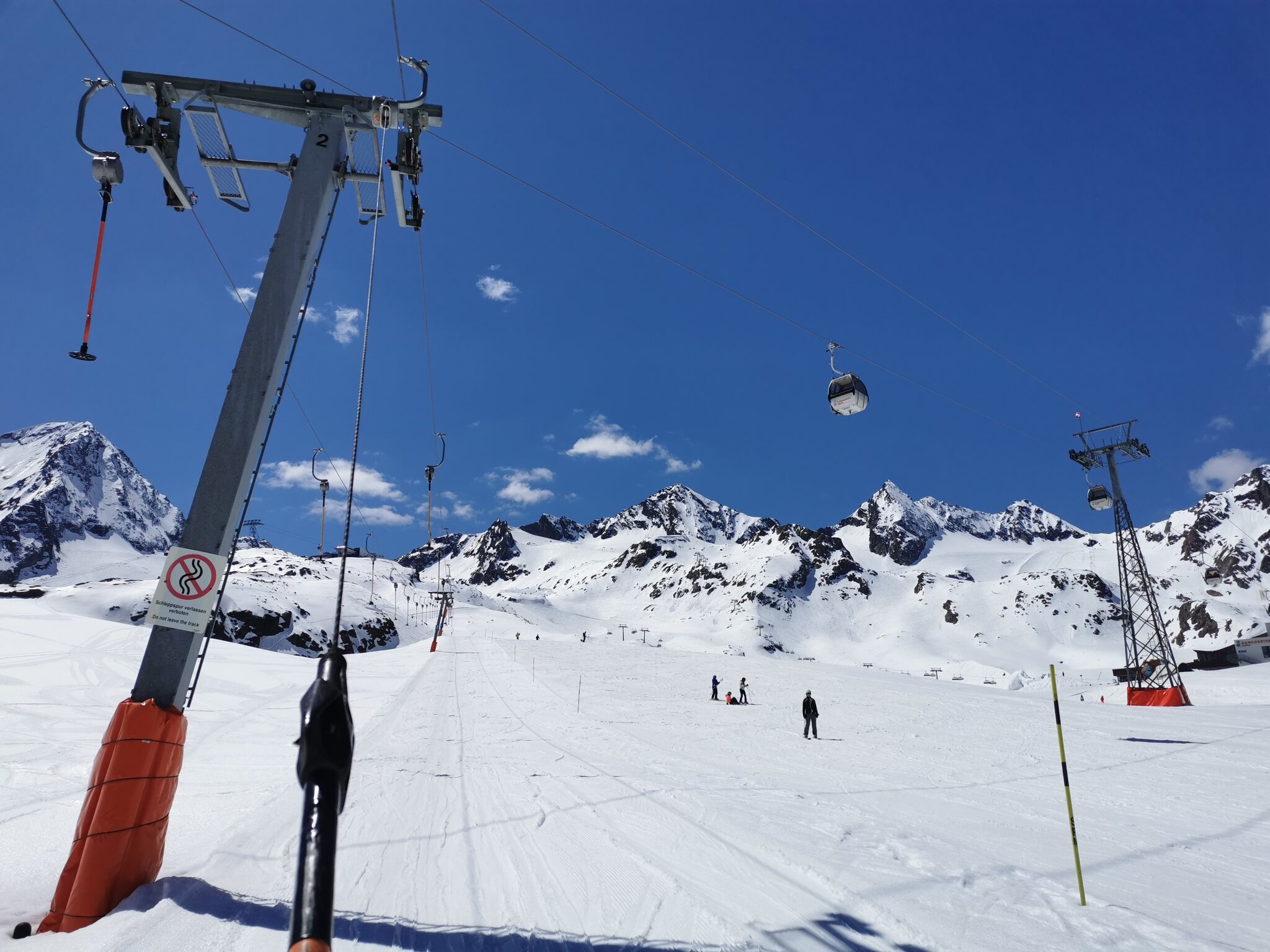 Die Pisten sind in gutem Zustand und fast alle Anlagen in Betrieb (es fehlt die Daunjochbahn):