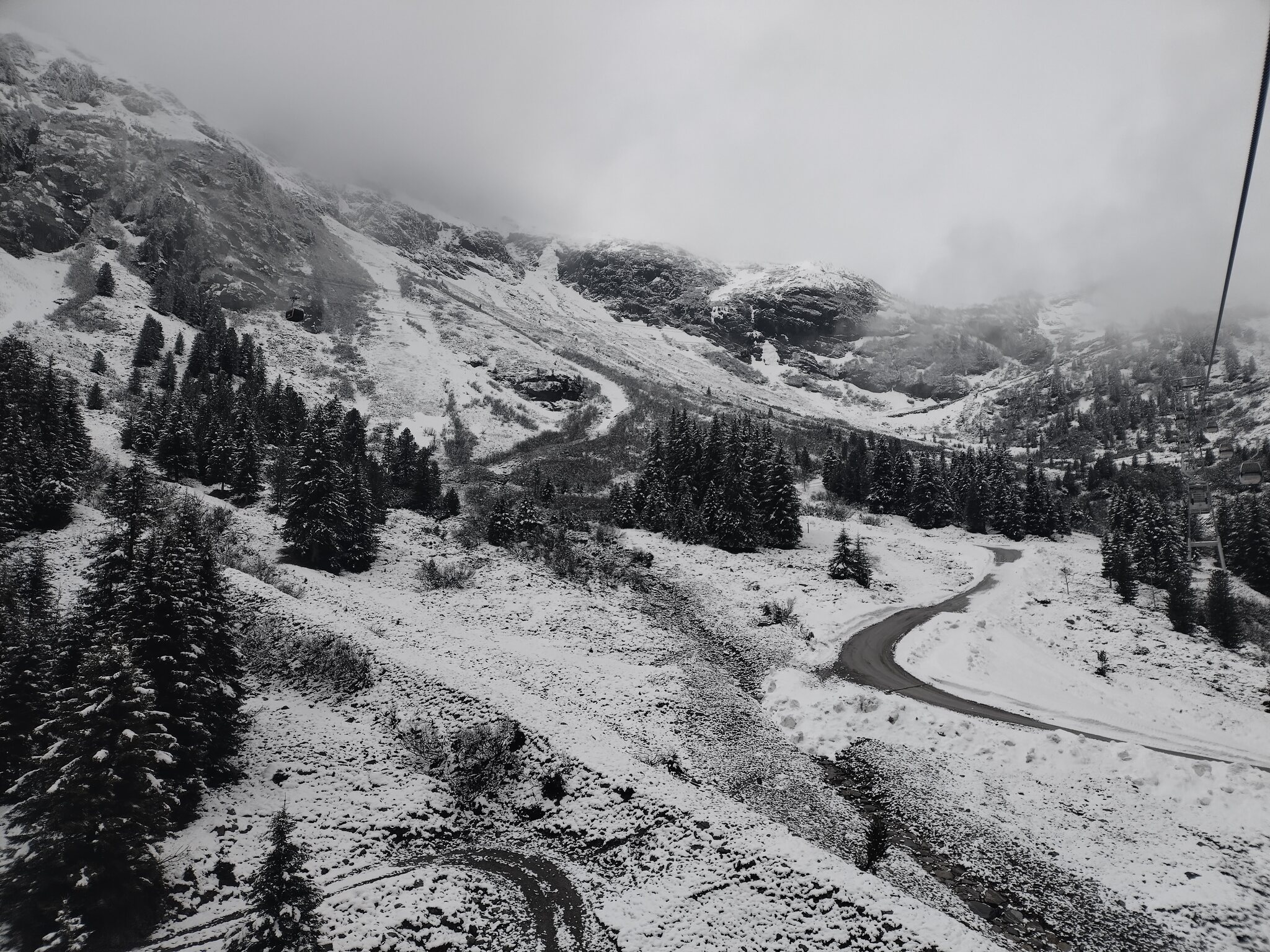 Die Schneefallgrenze lag deutlich niedrigen als die letzten Tage, sogar die Talstation hat etwas abbekommen.