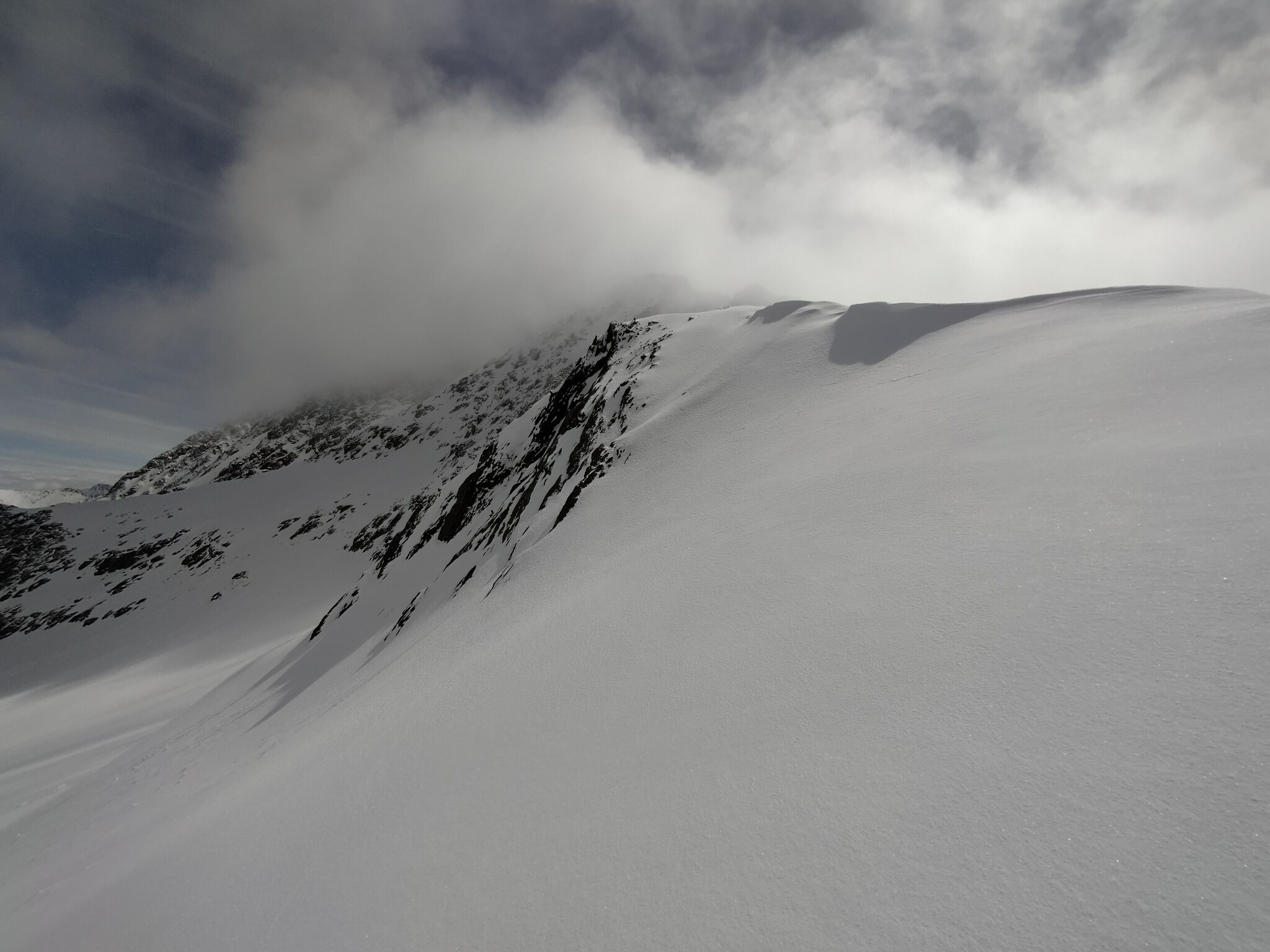 Ab Mittag zieht es dann mehr zur, wobei sich im oberen Eisgratbereich die Sonne und Sicht recht gut hält.