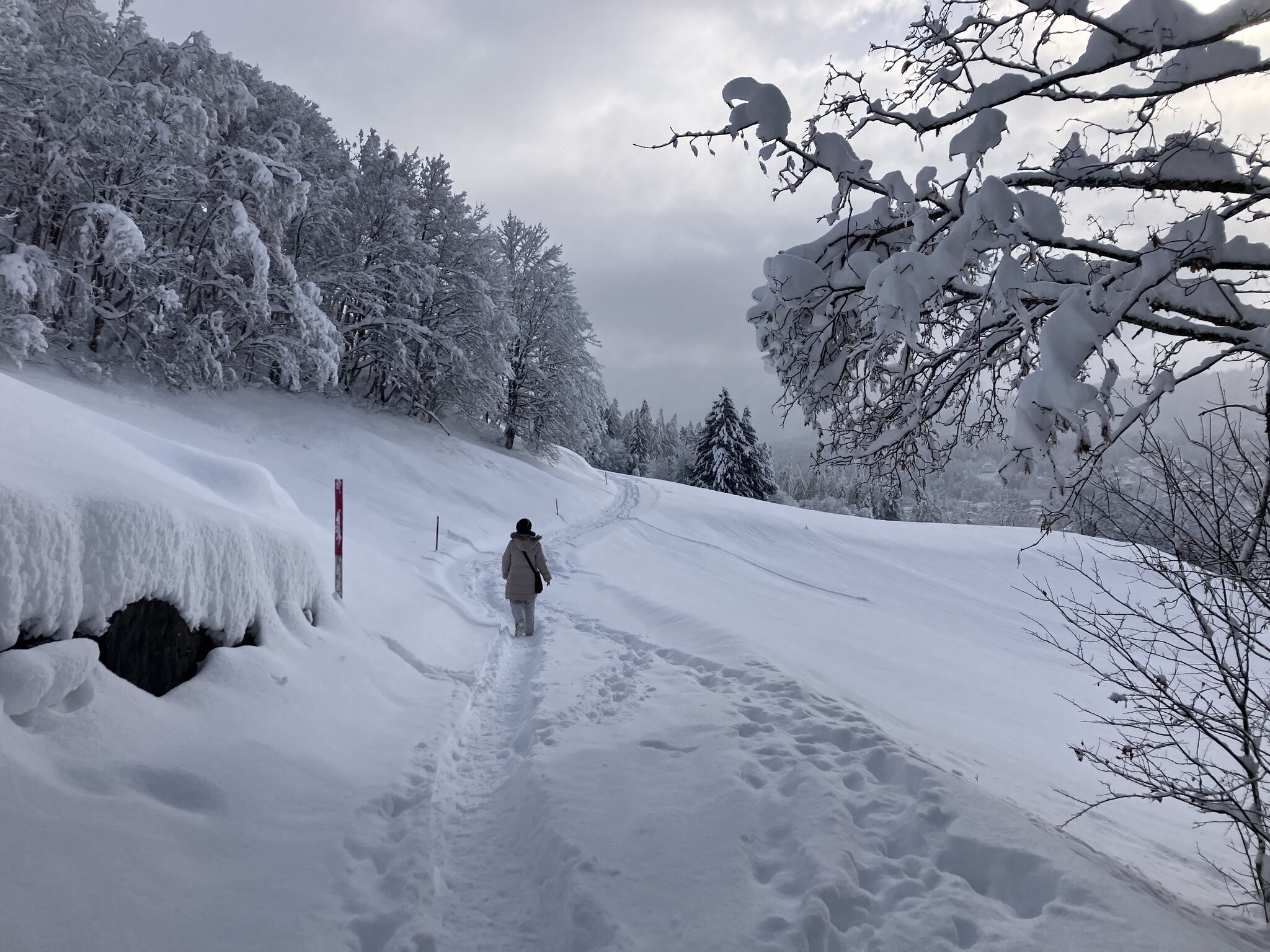 Genialer Morgen! Windstill, extrem kalt und tief verschneit. Jetzt schönste Sonne.