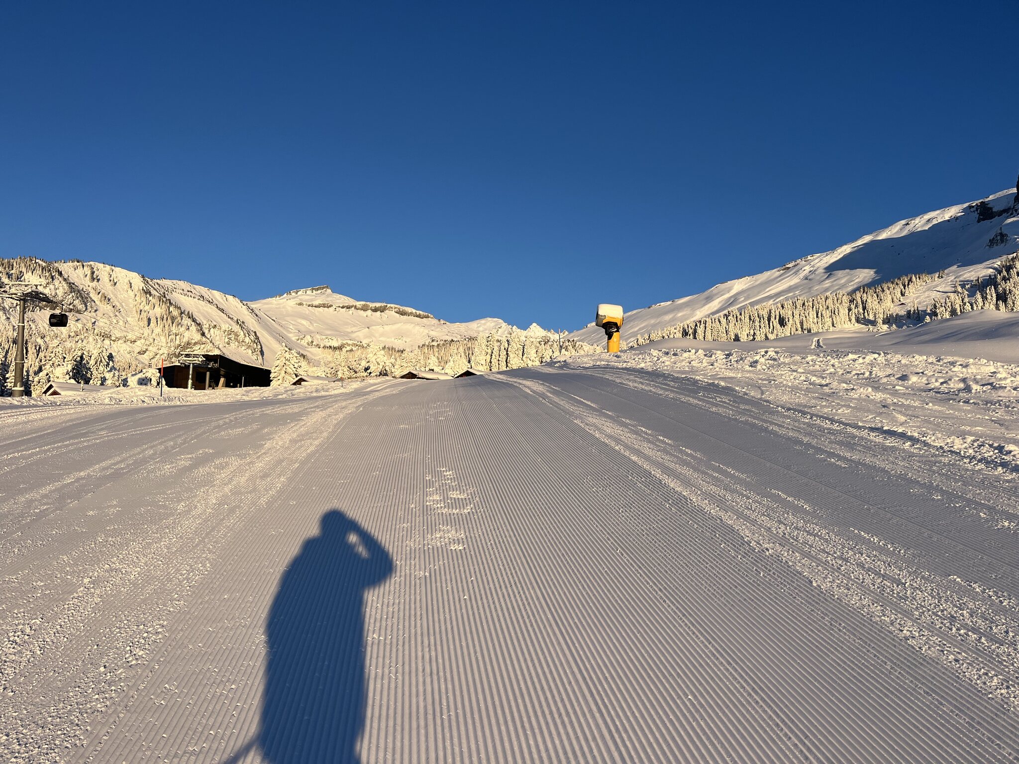 Fahren gerade das 2. Mal FlemXpress, der flutscht heute richtig gut. Schöne weihnachtliche Stimmung auf der Piste