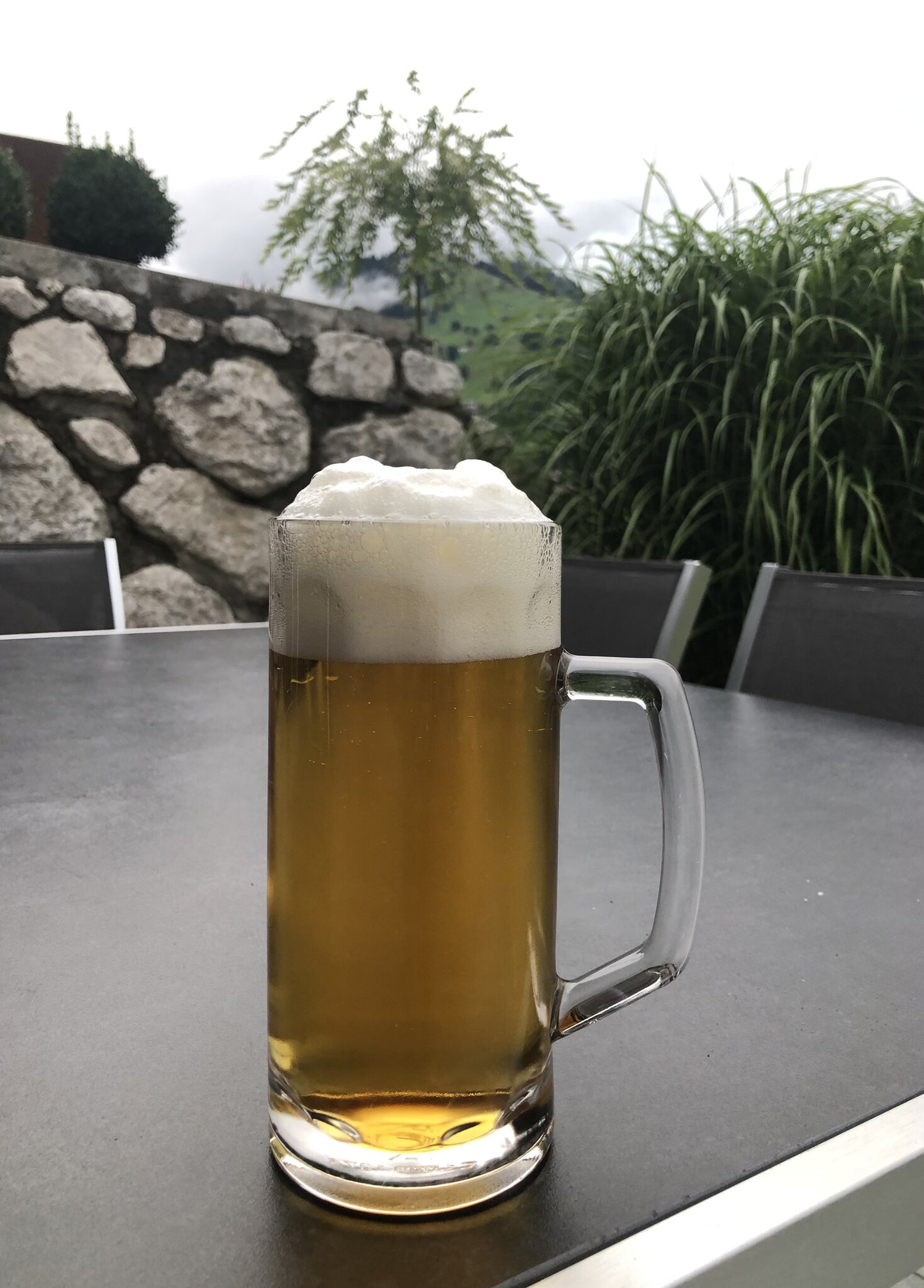 Bevor der Regen kam. Noch schnell 2 Dosen auf der Terrasse mit dem Glas veredelt.