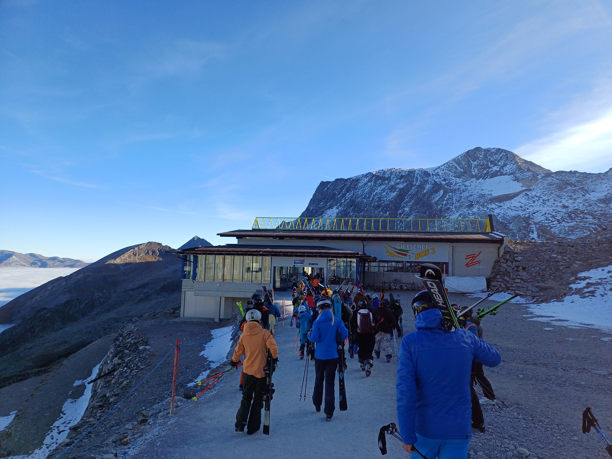 Obwohl ich schon viel negatives gehört habe und auch nicht immer Einkehre, wollte ich mal zur Gletscherhütte schauen. Das Snowboardfahren ist heute einfach Nebensache.