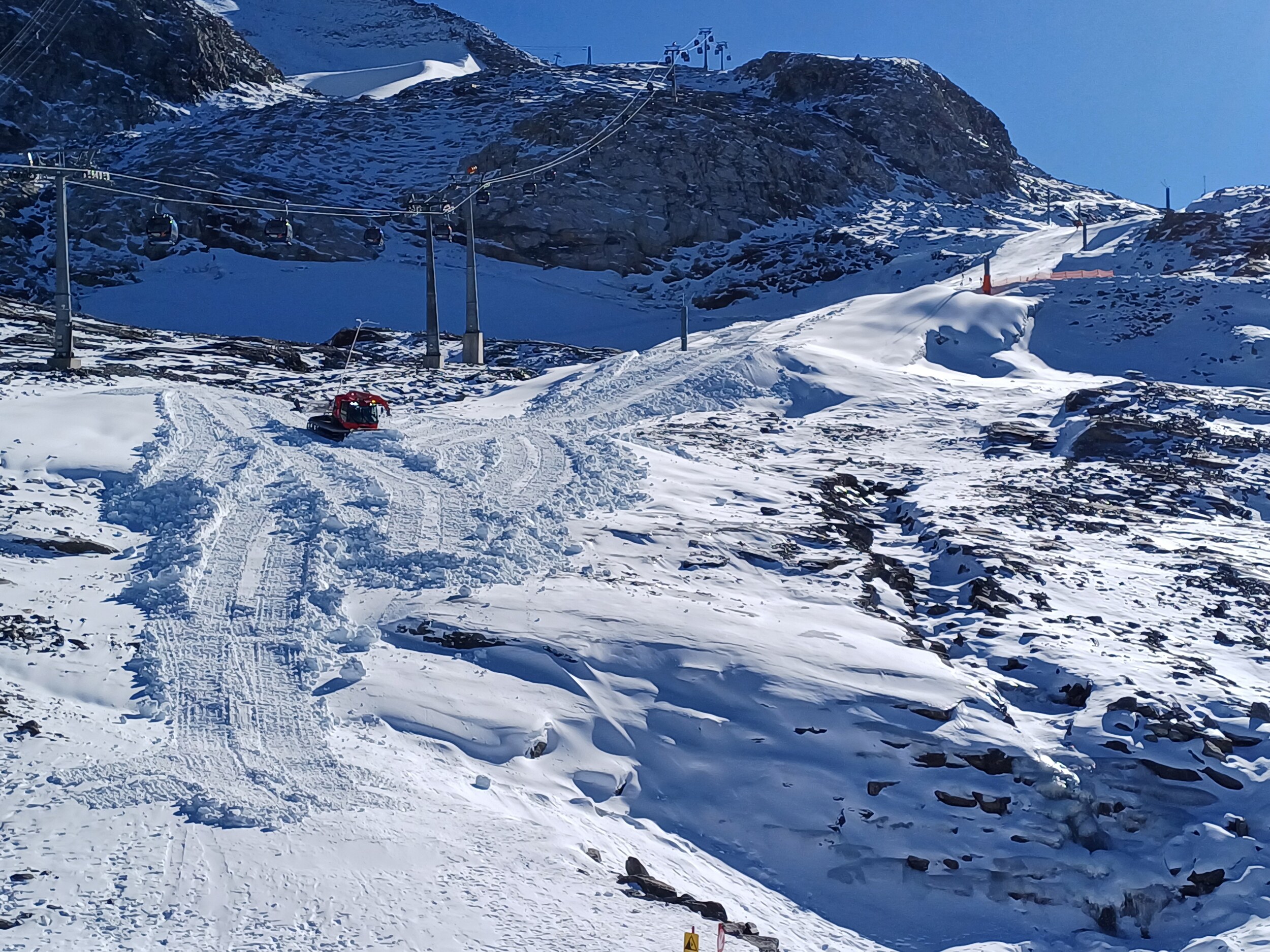 Pisten werden trotz weniger Schnee eher besser. Viel Eis wurde überdeckt, ruhig präpariert.