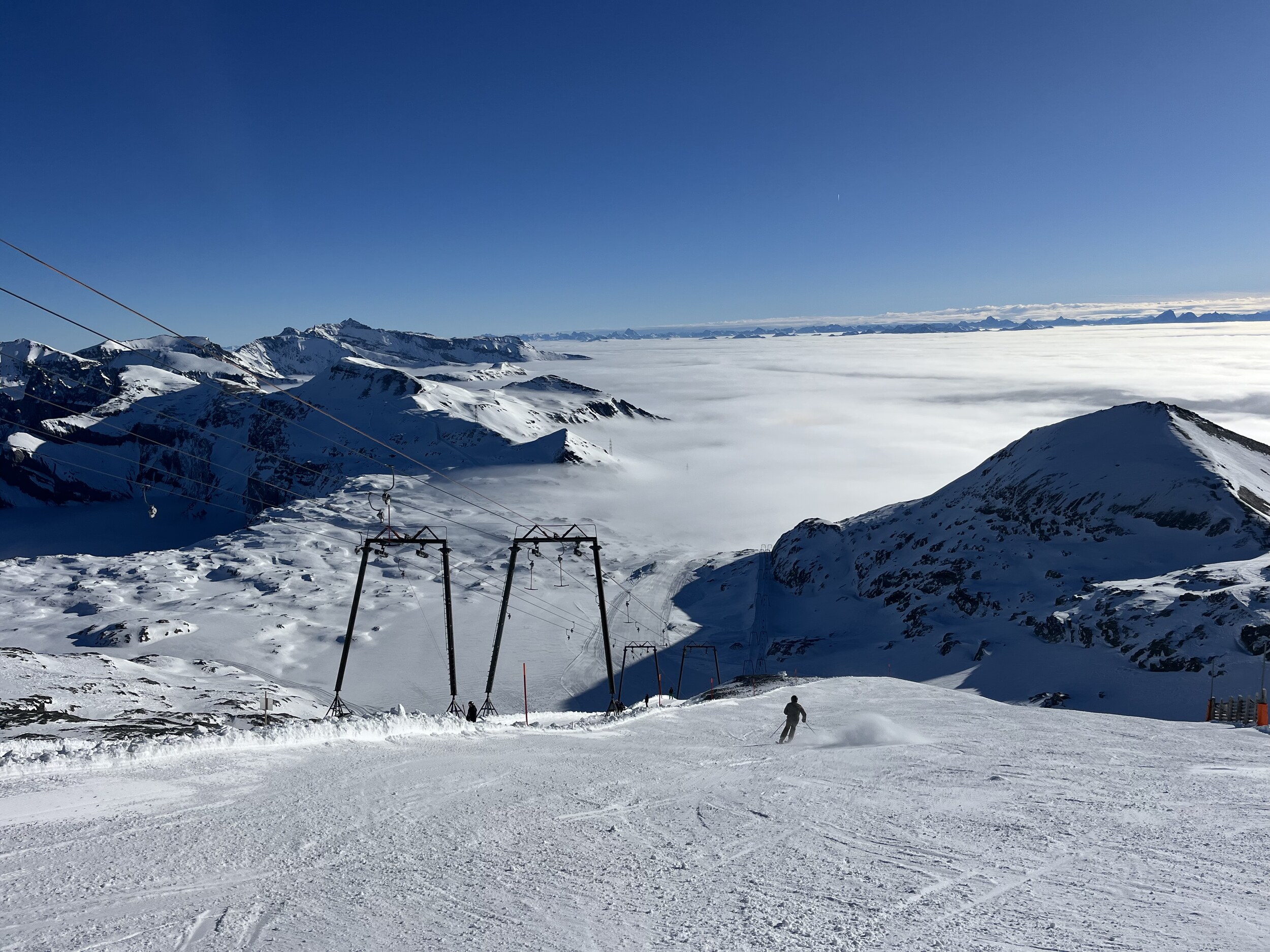 Da die PB Masegn noch nicht offen ist, fahren wir zuerst mal die 66. Naja, oben kaum Sicht, unten unangenehme Nachbeschneiung (natürlich verständlich).
