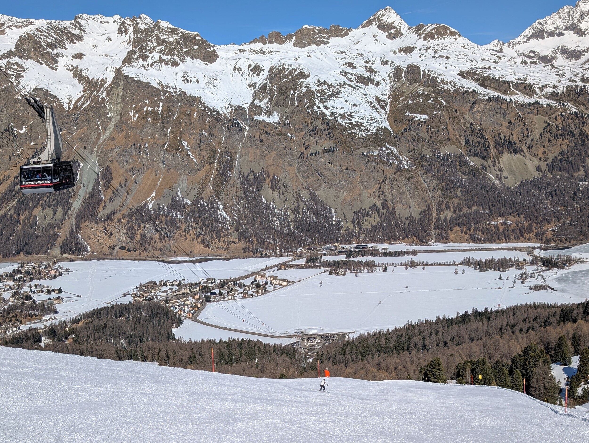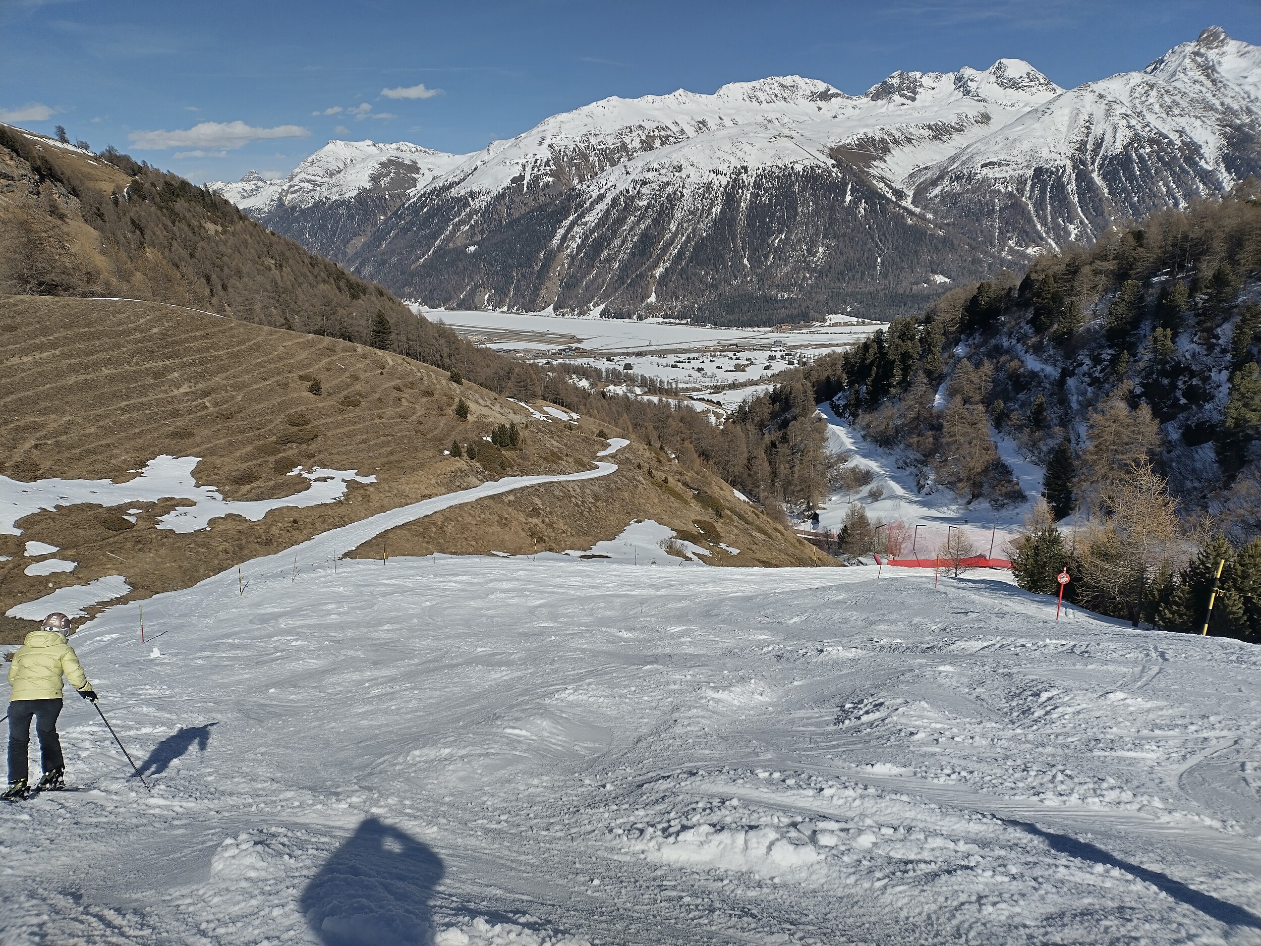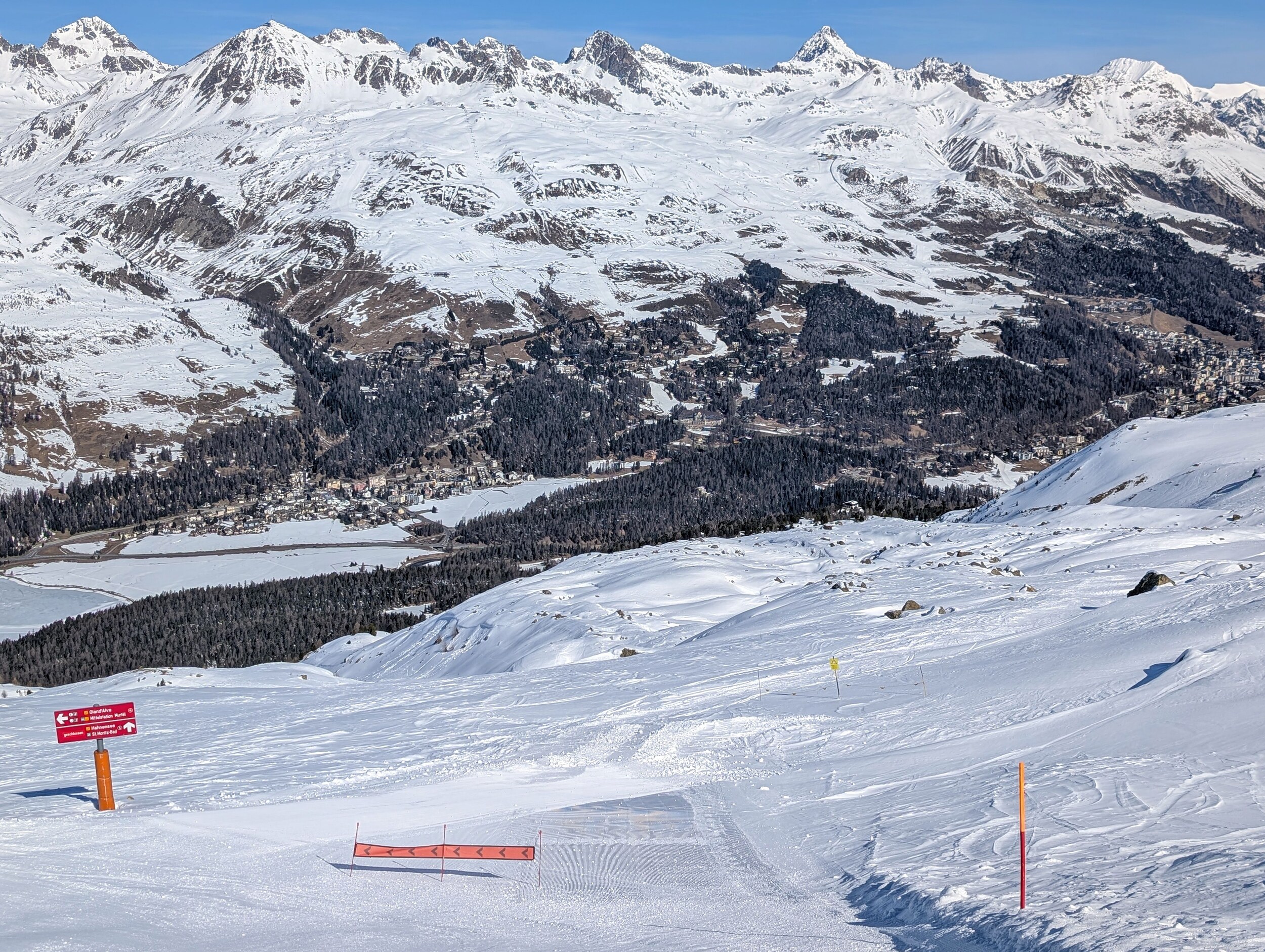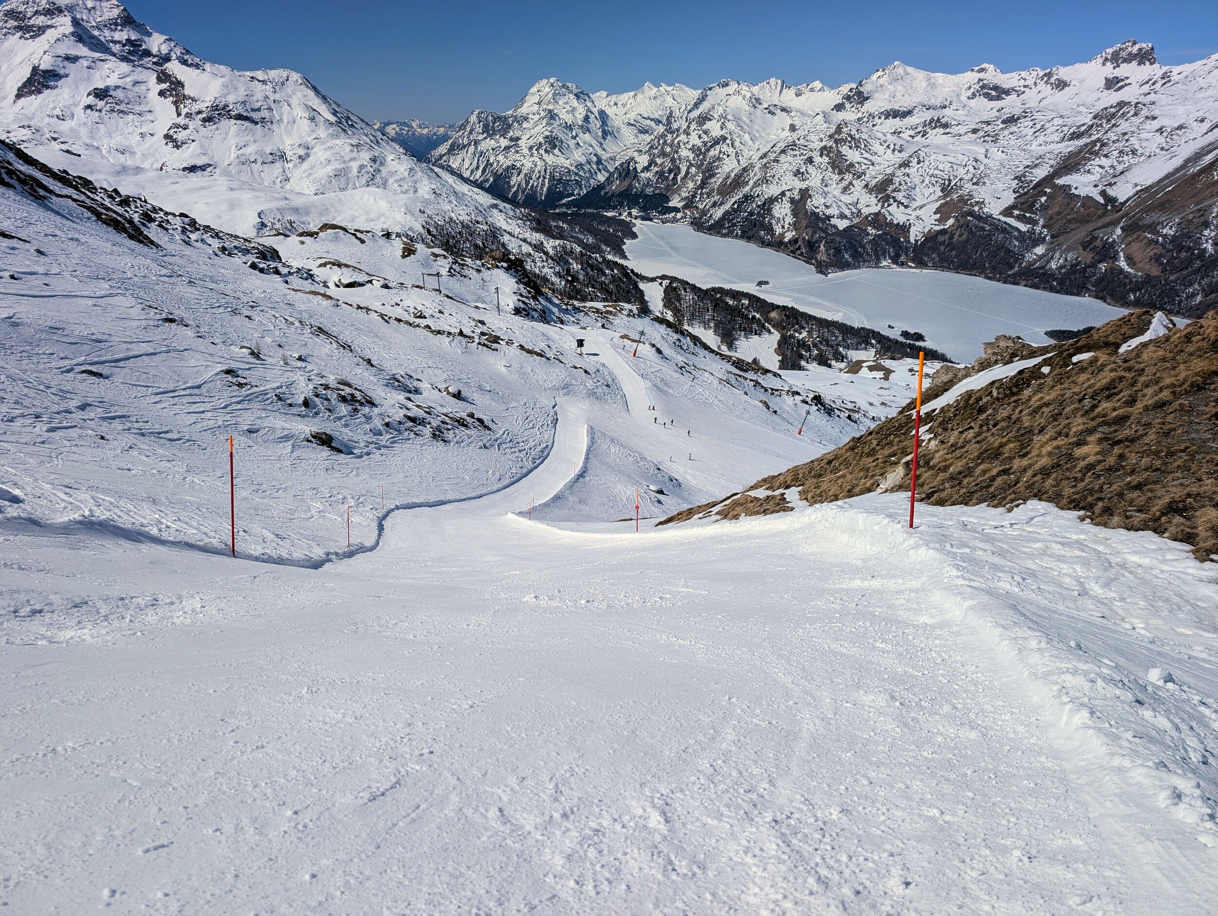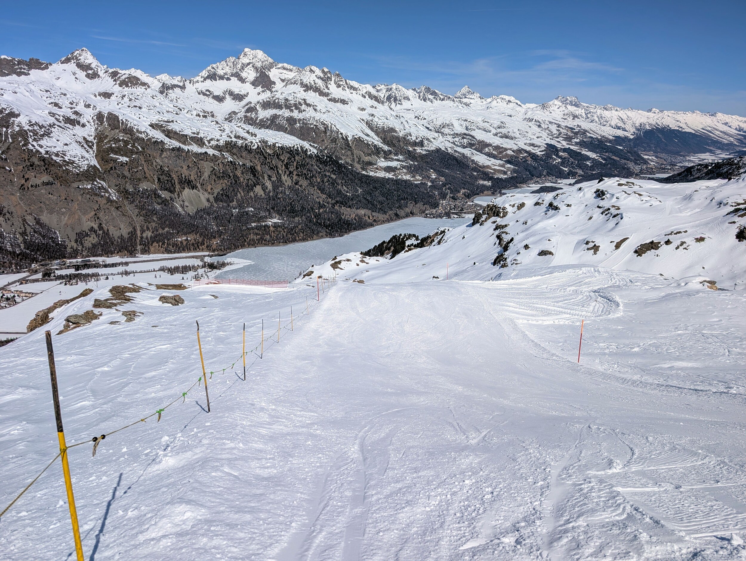 Am späteren Nachmittag habe ich dann noch zur Corviglia gewechselt. Die seeseitigen Pisten waren da wohl auch wegen der Tageszeit schon sehr weich und abgefahren.