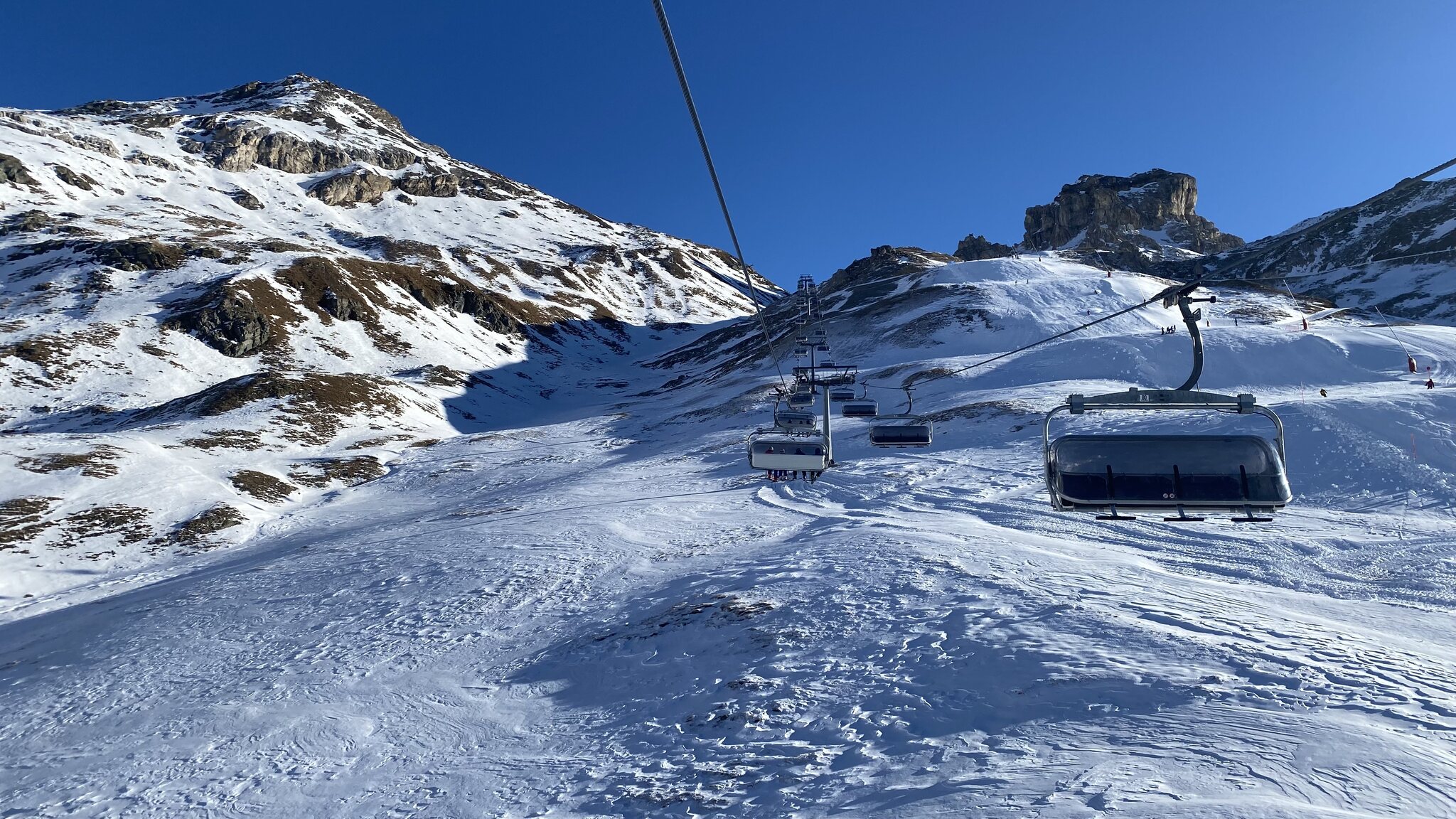 Premiere für mich an der neuen und 'goilen' KSB Goillet heute, super für die diversen netten Pisten dort. Und scheinbar wie die baugleiche(?) KSB Sometta erstaunlich windresistent, denn dort oben und generell windet es ziemlich heftig.