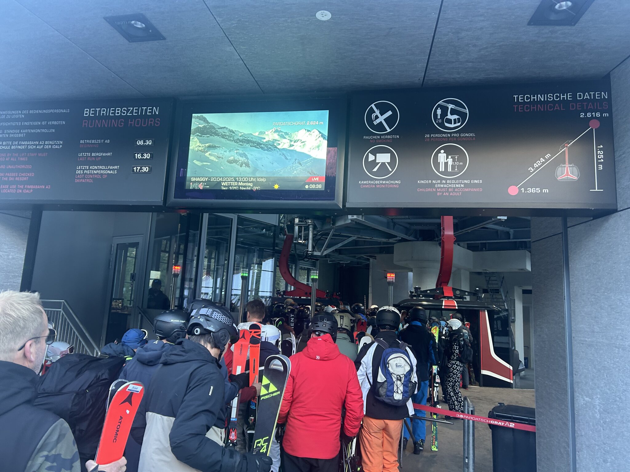 Keinerlei Wartezeiten, saß praktisch jeden Tag alleine im Lift - lediglich am Freitag war es merkbar voller. Morgens um 08:30 Uhr an der Pardatschgrat einfach durchgehen in die Gondel - das kenne ich so selten von Ischgl.