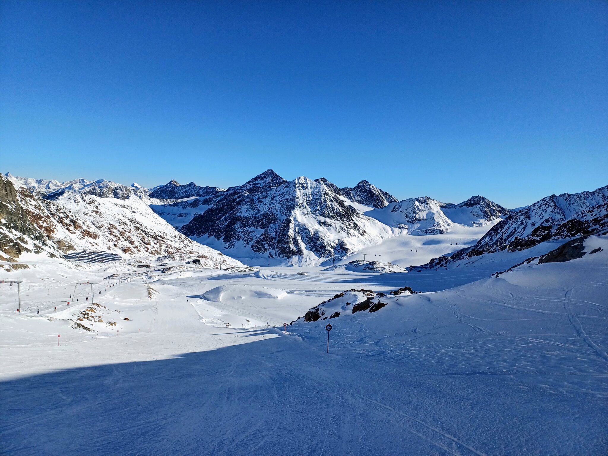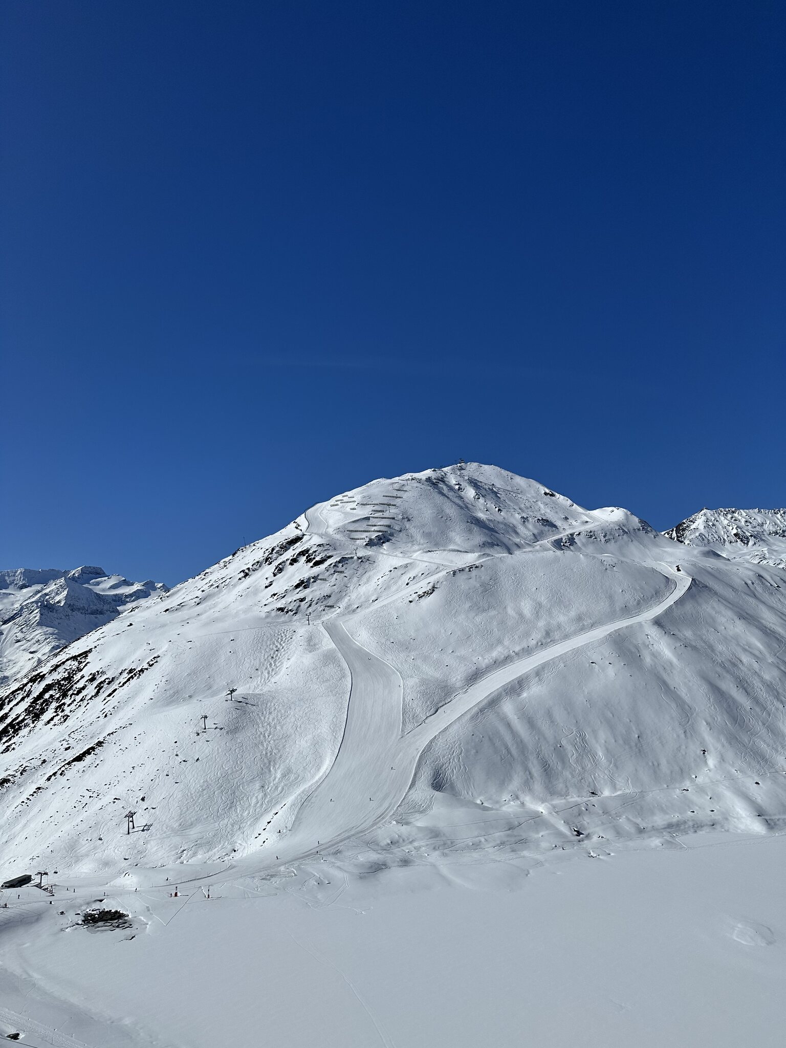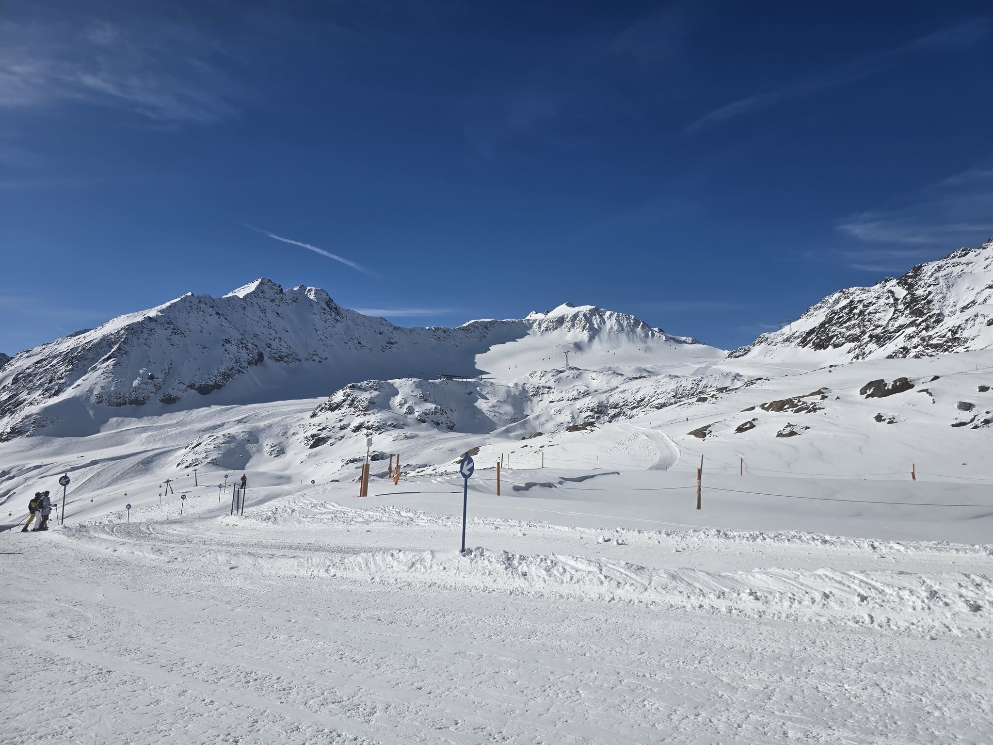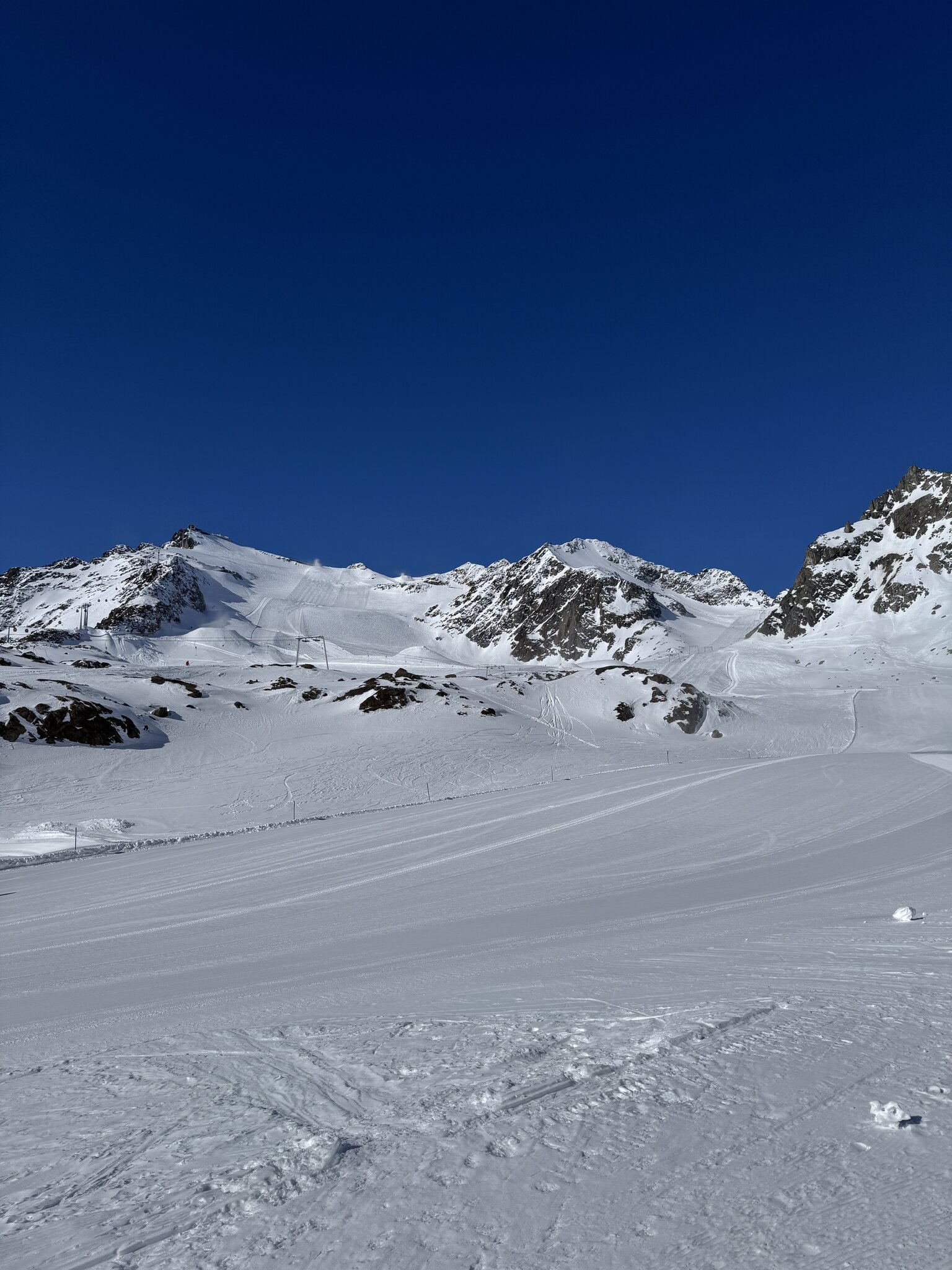Erster Skiurlaubstag heute am Rifflsee. Pisten sind am Morgen relativ hart und gegen den Mittag werden sie langsam sulzig. Eher April Verhältnisse momentan. Schnee hat es ausreichend, ab und zu ein paar Steine. Die Talabfahrt geht noch gut zu fahren, der Mittelteil wo es steiler ist war am Nachmittag sehr sulzig. Morgen geht es dann Richtung Gletscher.
