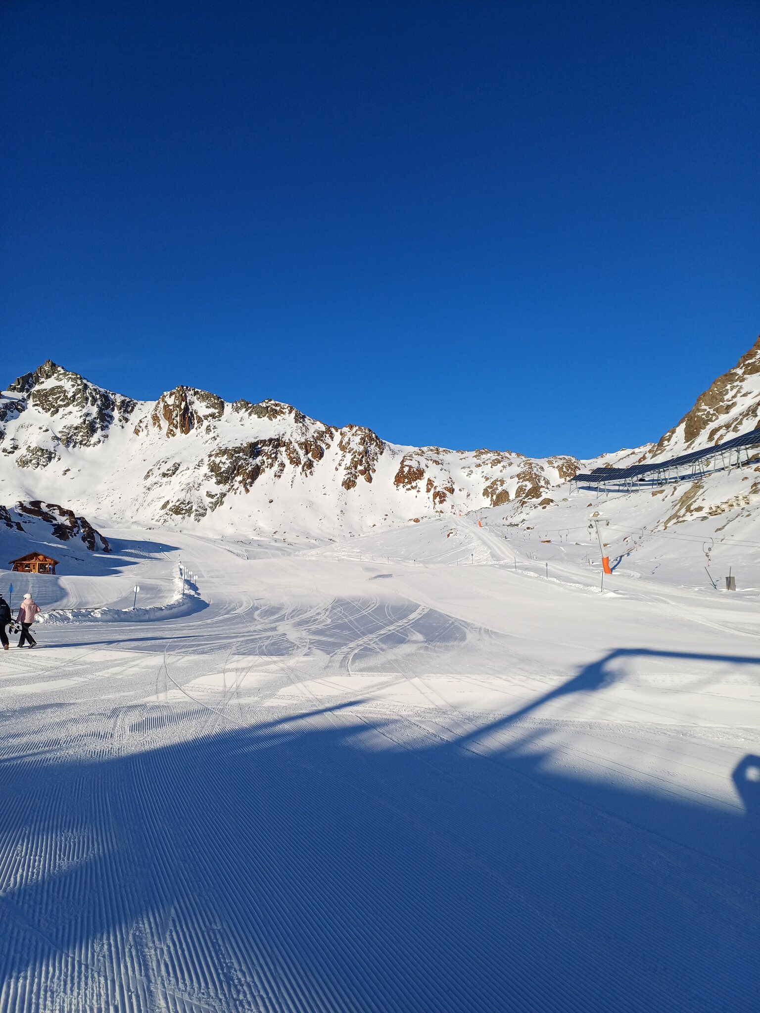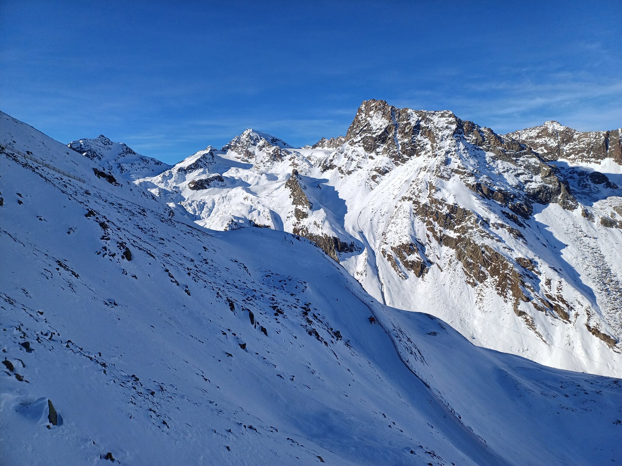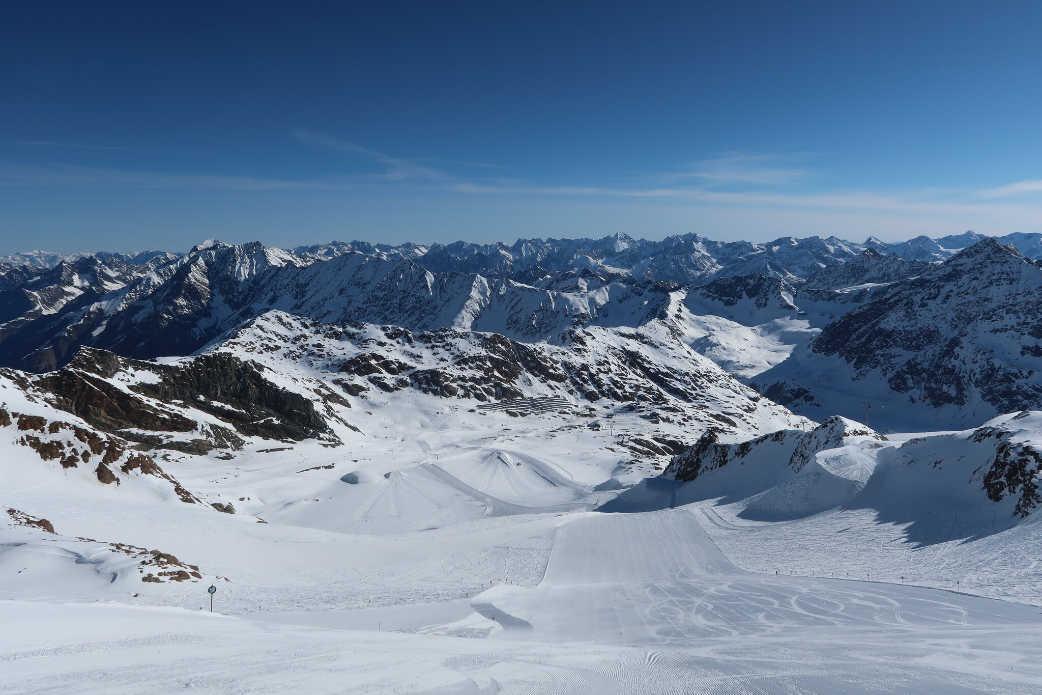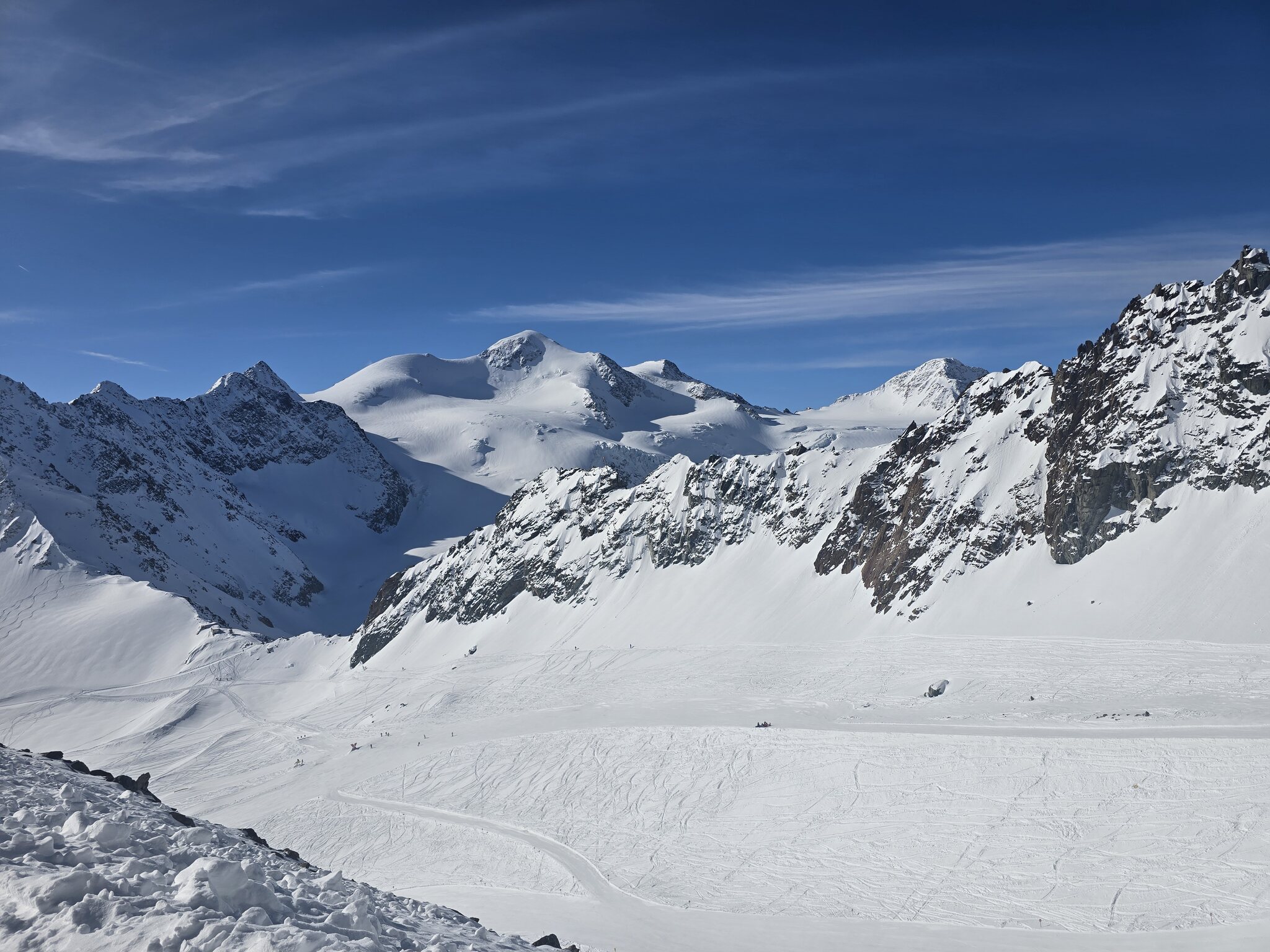 Erster Skiurlaubstag heute am Rifflsee. Pisten sind am Morgen relativ hart und gegen den Mittag werden sie langsam sulzig. Eher April Verhältnisse momentan. Schnee hat es ausreichend, ab und zu ein paar Steine. Die Talabfahrt geht noch gut zu fahren, der Mittelteil wo es steiler ist war am Nachmittag sehr sulzig. Morgen geht es dann Richtung Gletscher.