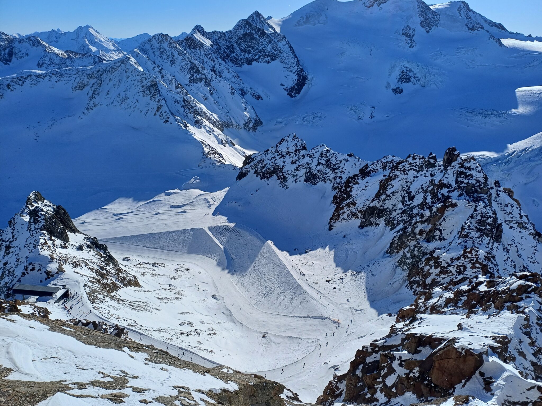 Weiterhin viel los am Samstag am Pitztaler. Aber Ziel war die Wildspitze und da am Schlusshang auf dem Grat ging es zu wie am mount Everest bei Schönwetter. Ich schätze da sind heute gut 300-400 Leute rauf. Die meisten in Gruppen mit Bergführer..