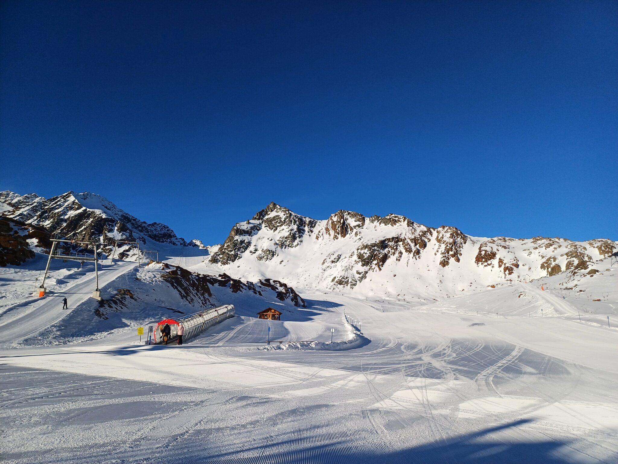 Gut, falsch eingeschätzt die Schlange. Aber voll genug war es dennoch und 10min später angestanden wäre es sicherlich nochmals deutlich länger gewesen. Evtl habe ich die Schlange direkt bevor die Tür öffnete gesehen und nahm an Tür ist schon offen und Warteraum innen für Bahn ebenso. So ist es ja im Herbst wenn man ankommt. Bei Mittelberg immer 3-4fbm am Nachmittag angestanden allerdings meist nur 6 statt 8 per Gondel auch da selten jemand in Mitte zustieg. Habe es wenn Rifflsee voll offen noch nie so voll erlebt, im Februar ist es (meist deutlich) leerer hier. Von der Geister Saison hier 2017/18?? Als die eine Bahn am Gletscher nicht fuhr ganz zu schweigen