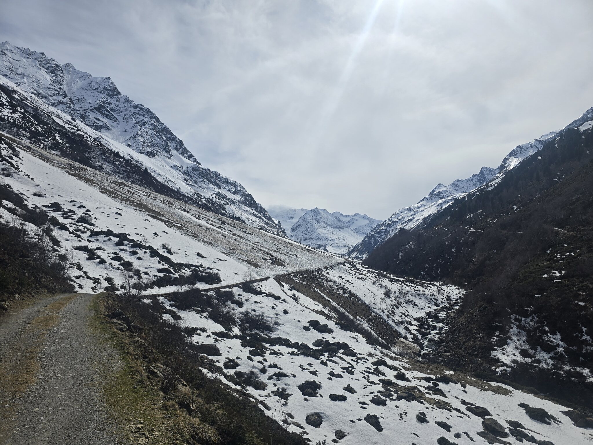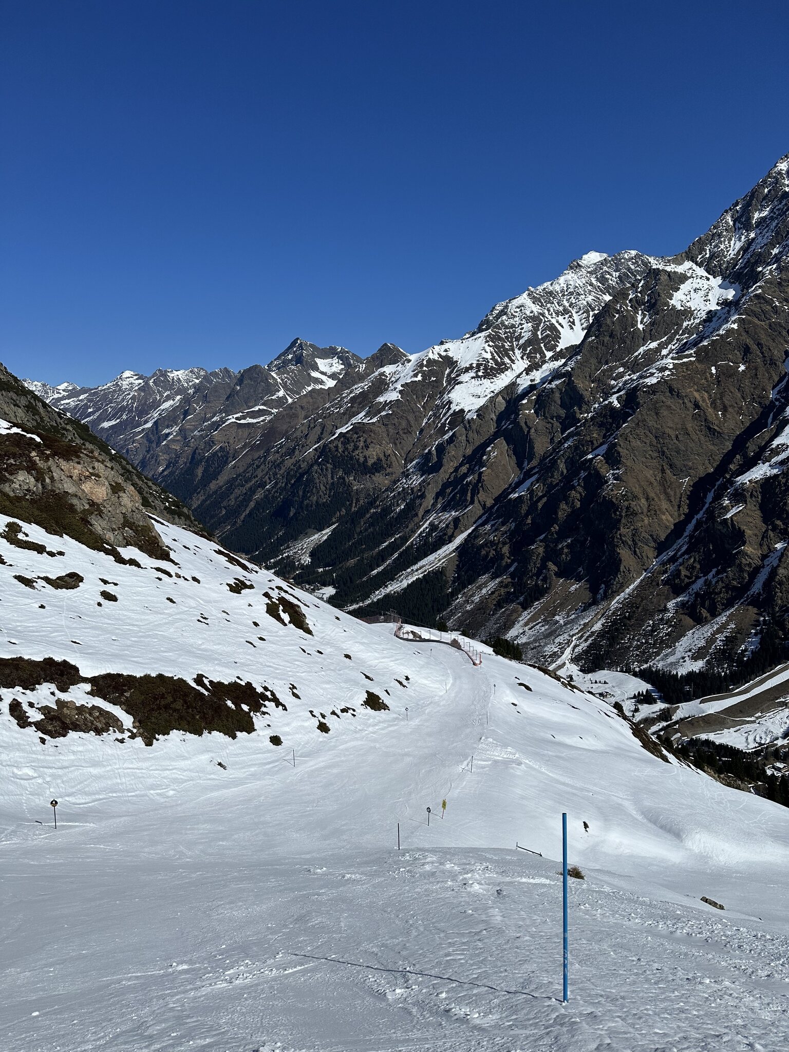 Ich wollte eigentlich nochmal via mittagskogel ins Tal aber das sah teils auch schon etwas aper aus. Dazu hatte mein Freund mit dem ich unterwegs war mit dem Schnee zu kämpfen und mittagskogel ist halt doch nicht gerade flach. Also wurde es taschachtal mit gut 3.5km aper. Gestern wäre es sicherlich noch deutlich besser unten raus gewesen und morgen wird's locker noch Mal 2km mehr Fußweg Rifflsee hat einfach keinen Schnee mehr. Denke da hätte man nicht Mal grubenkar mehr vernünftig laufen lassen können. Alles andere sowieso nicht.