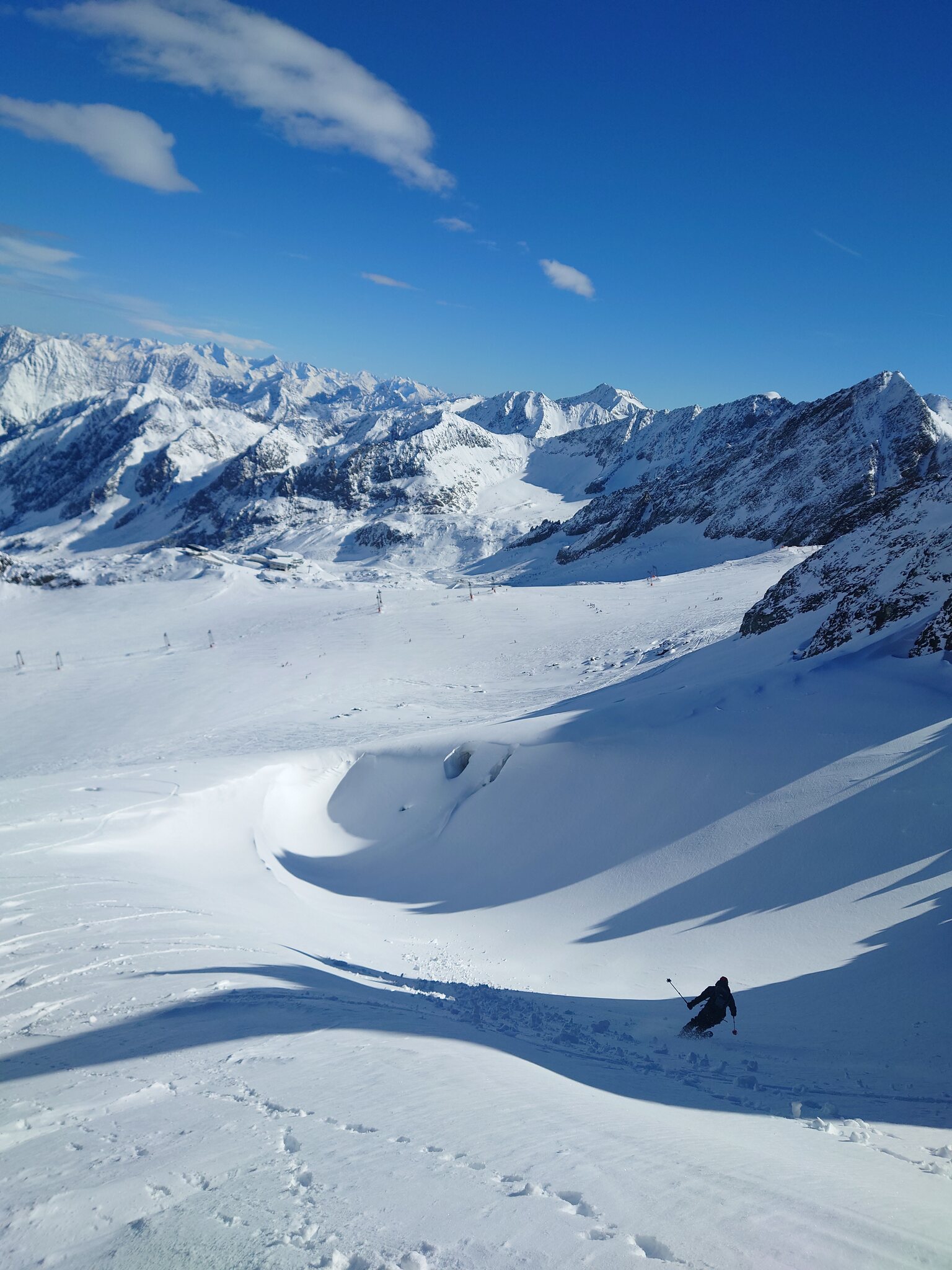 So gute Verhältnisse hatte ich am Stubaier im Oktober noch nie. Am Morgen sehr sehr cool. Später dann etwas zerfahren, aber für Stubaier Verhältnisse war es nicht überfüllt.
